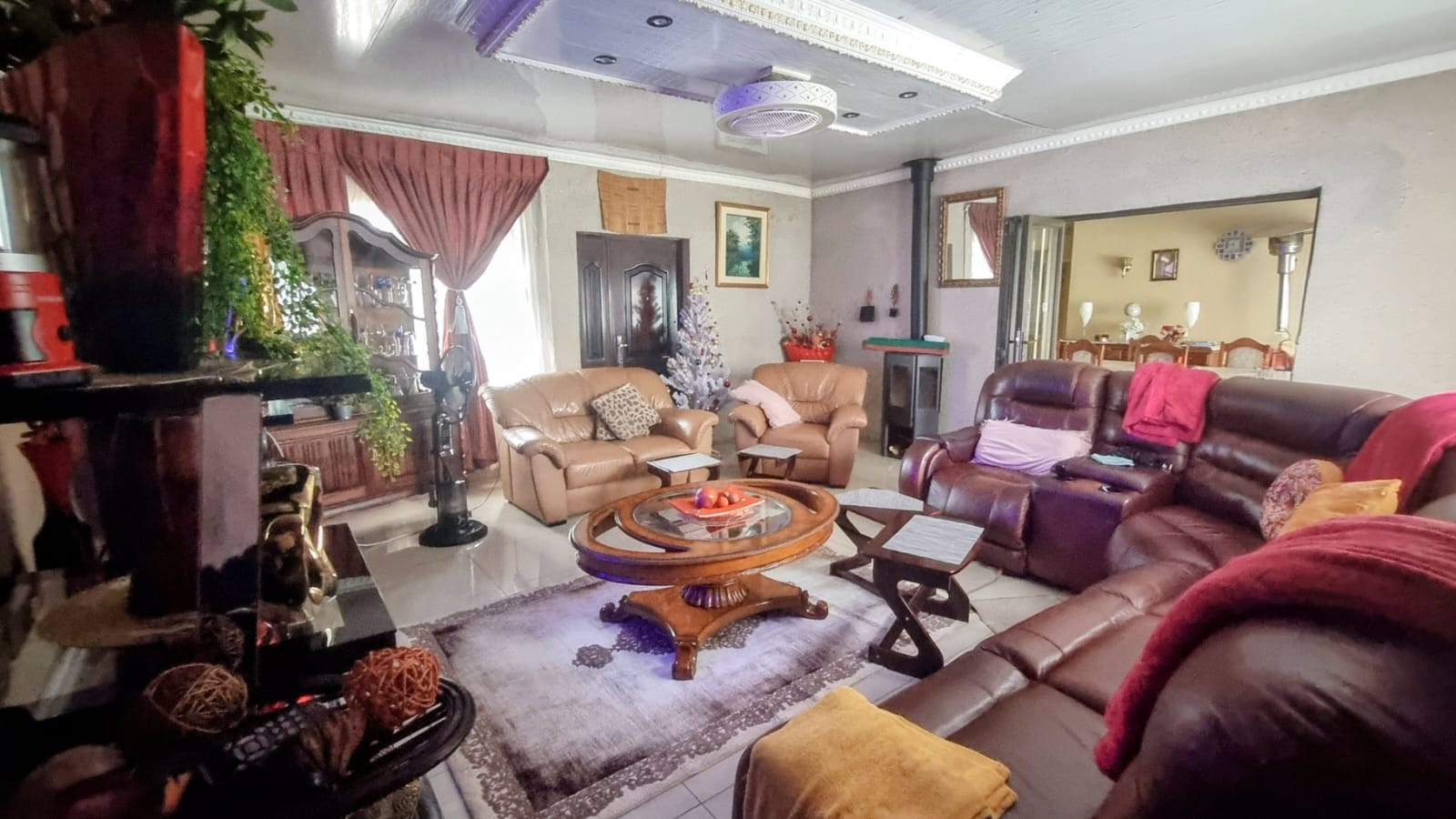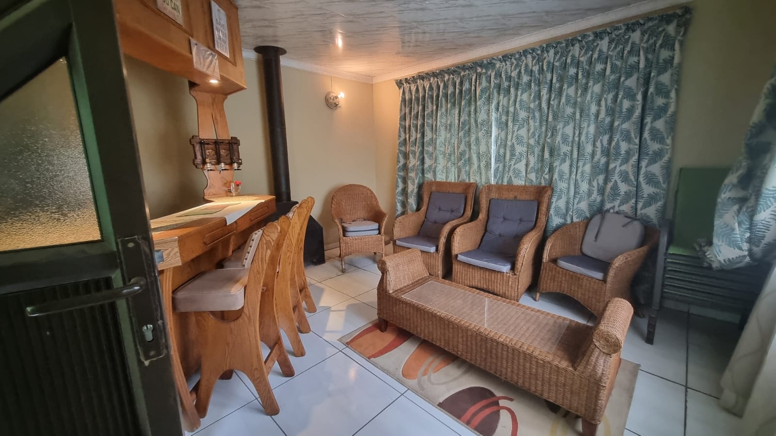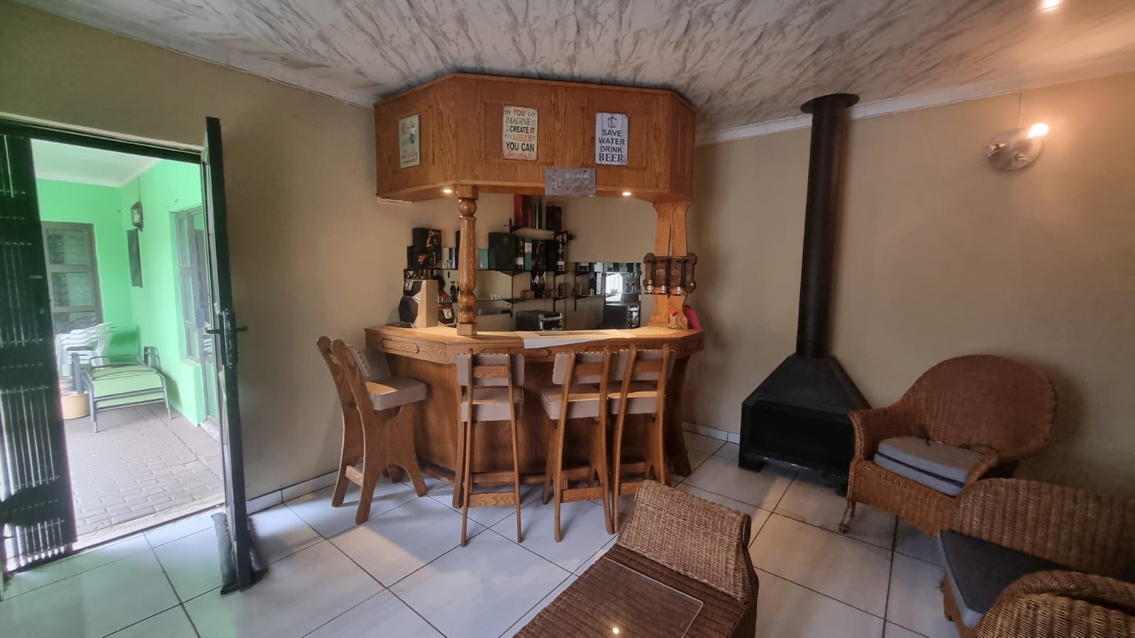 The property also boasts a large, well-maintained front yard with lush plants and irrigation, ensuring a picturesque setting. With two double garages, parking for four cars, and an outbuilding with an outside toilet, convenience is key. Additional features include a borehole, 10,000l water tank, and pump, ensuring a reliable water supply.