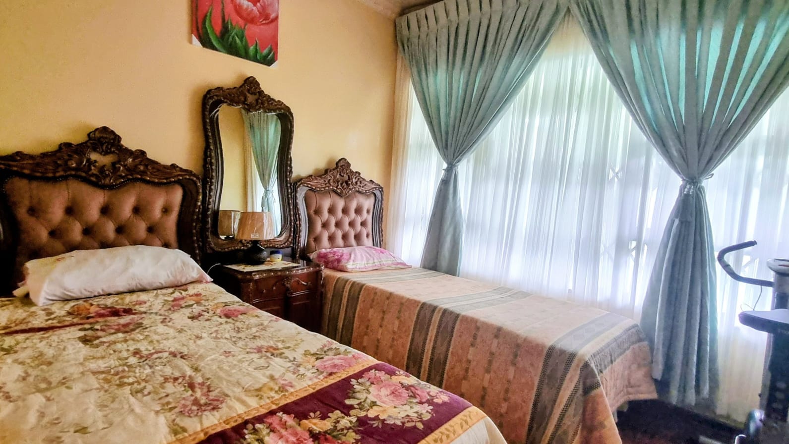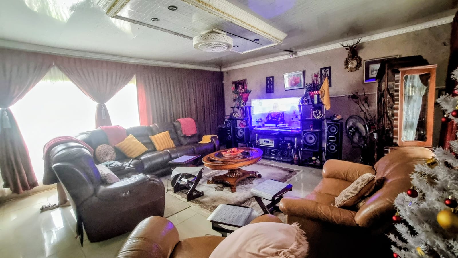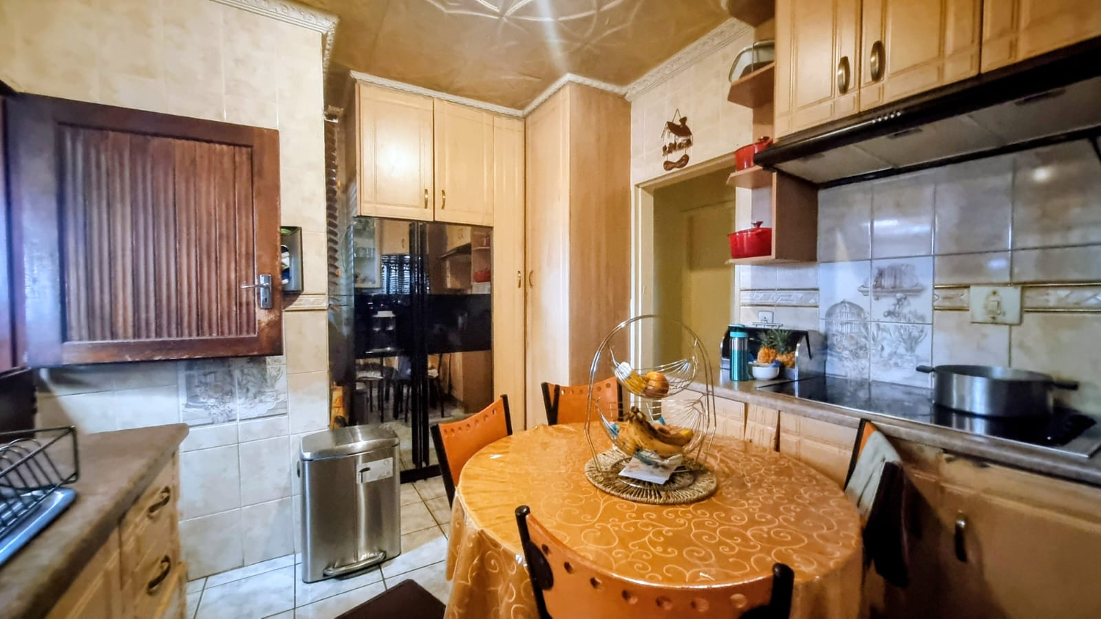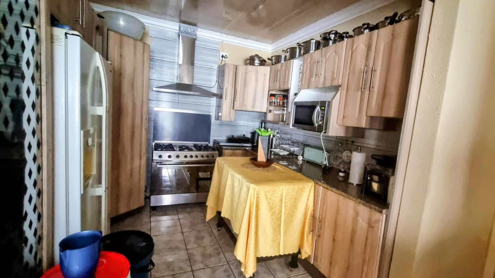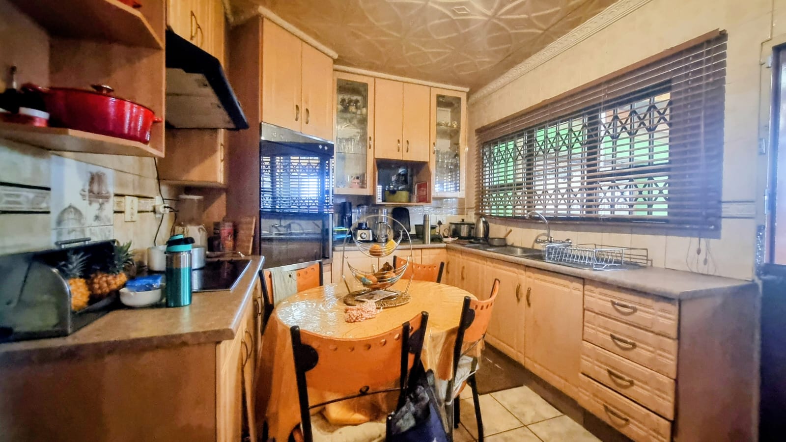 The large TV/family room is perfect for relaxation, with two large windows letting in plenty of light. You'll also enjoy the comfort of a cozy lounge, perfect for unwinding. A storage room that can be used as a study, provides a quiet space for work or learning. The cozy dining room is adjacent to the kitchen, which is equipped with built-in cupboards, a gas stove, and oven with an extractor fan. A second kitchen offers even more culinary possibilities, with modern built-in cupboards, ample counter space, a double basin, glass hob, and double eye-level oven.