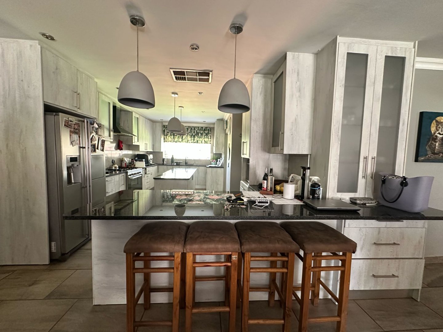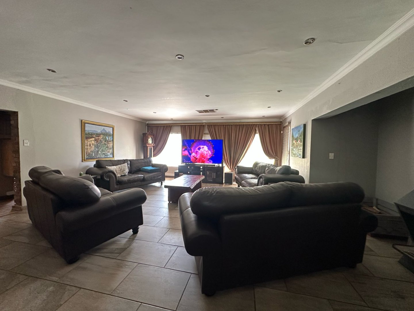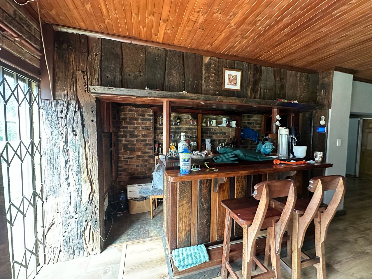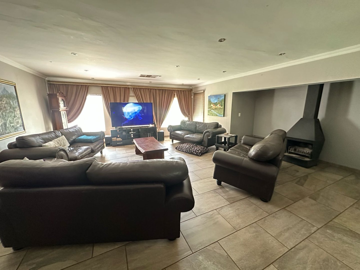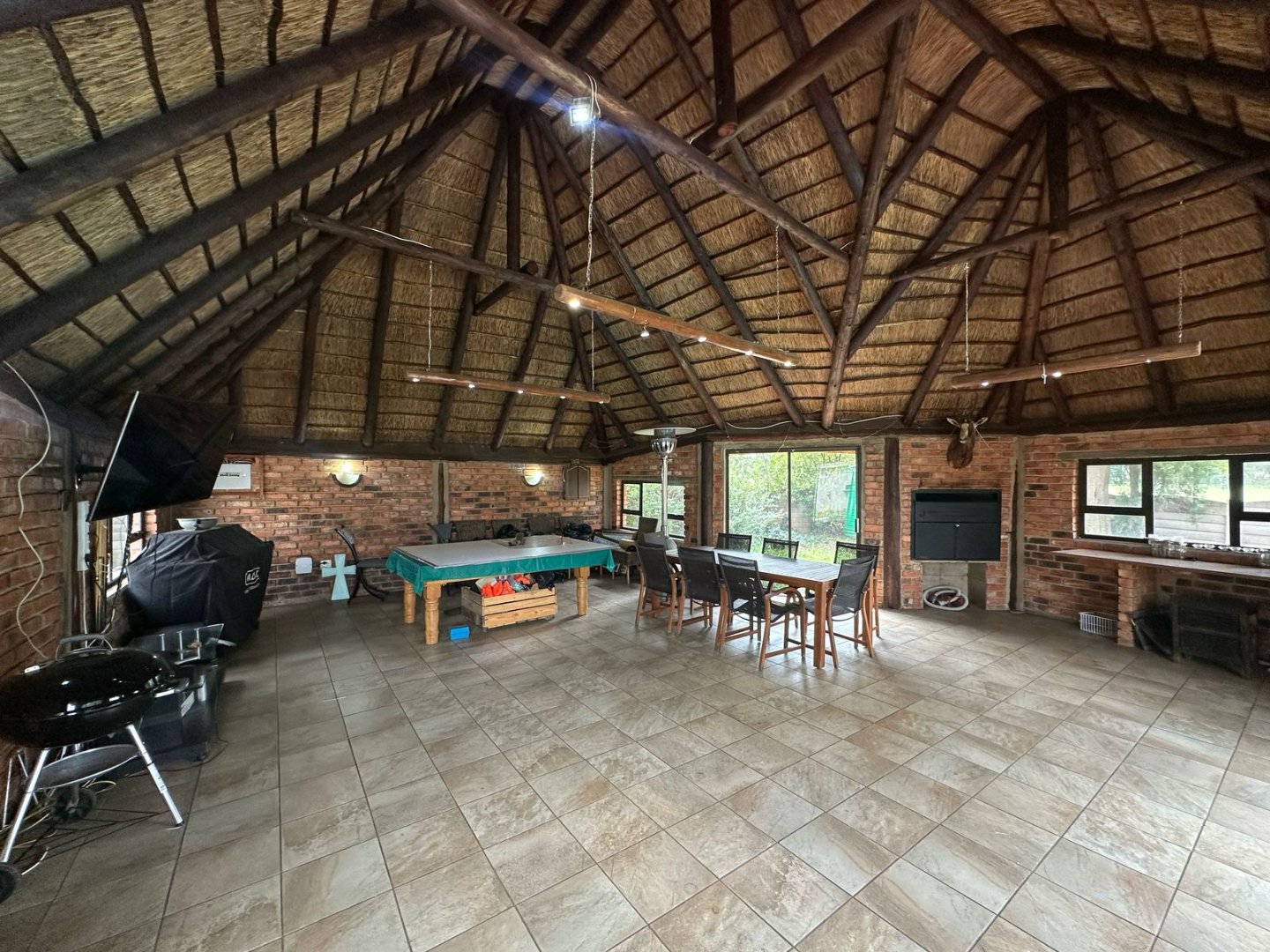 Open plan Kitchen, 3 Bathrooms plus en-suite. A massive lounge and 2 entertainment areas with Bar, built in Braai and Pizza Oven. Property has 2 ha Pecan Farm, Swimming pool, Carport x 8 cars/ 3 Garages parking plus 2 domestic quarters.. A Must View!
