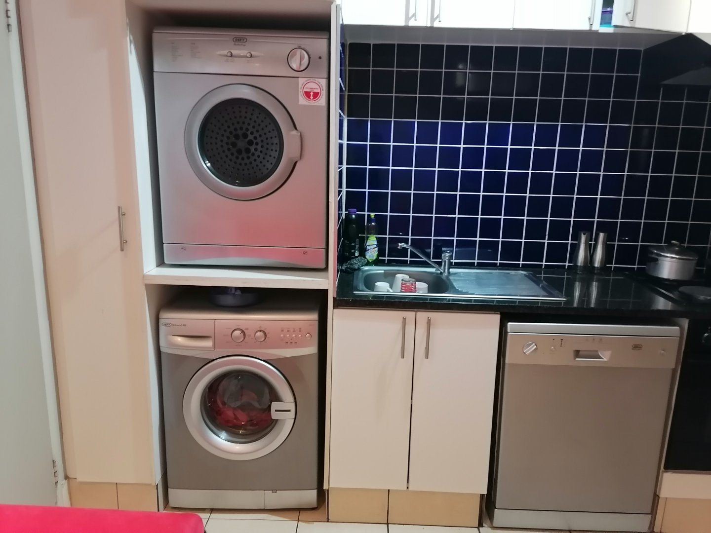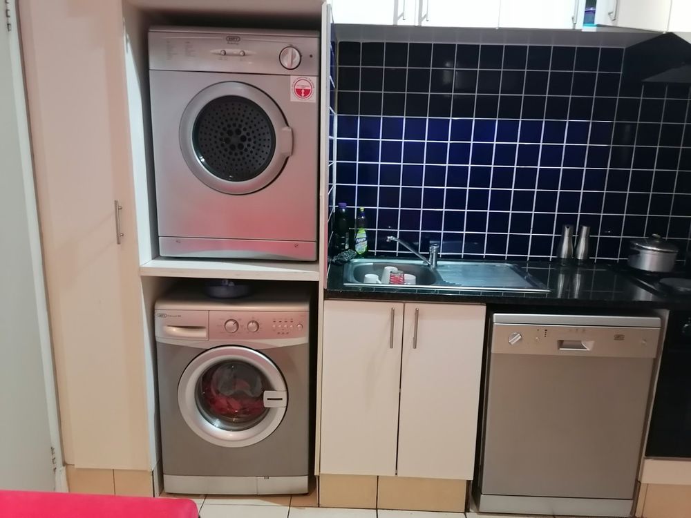 There's an open plan kitchen with built in under counter oven, hob and extractor fan, built ins, space for washing machine and connection. Open plan Lounge with a study nook for 2 students to study.