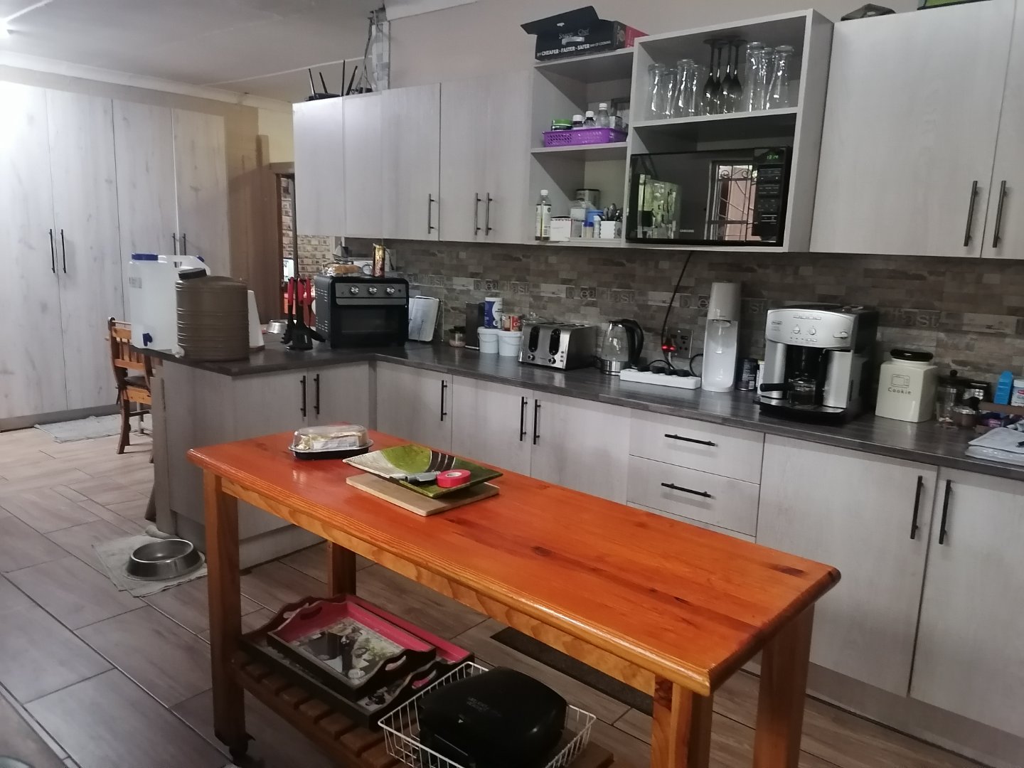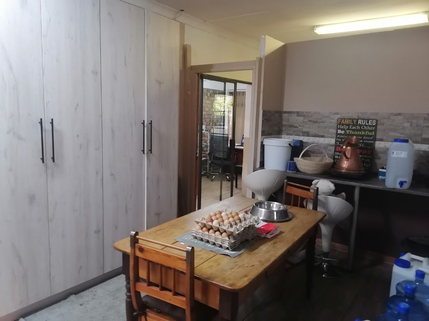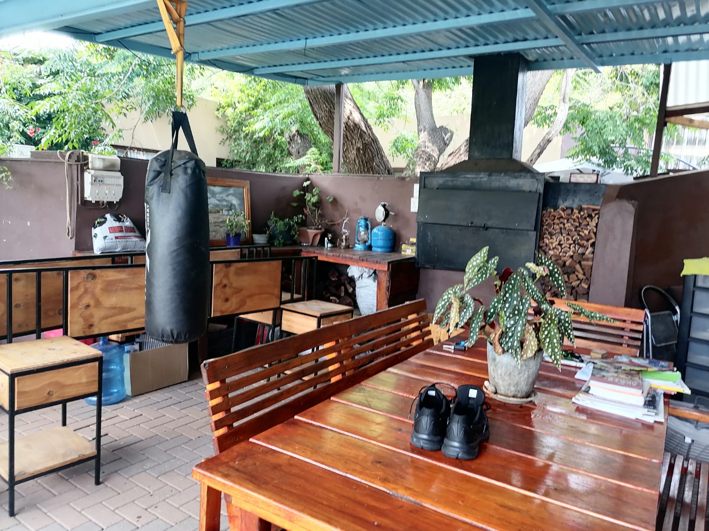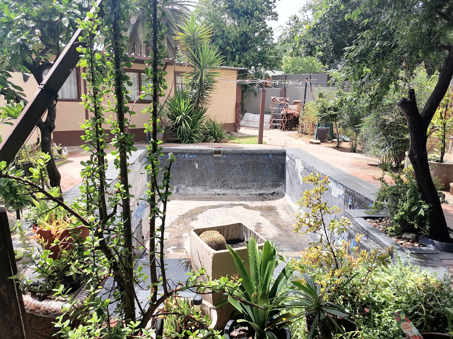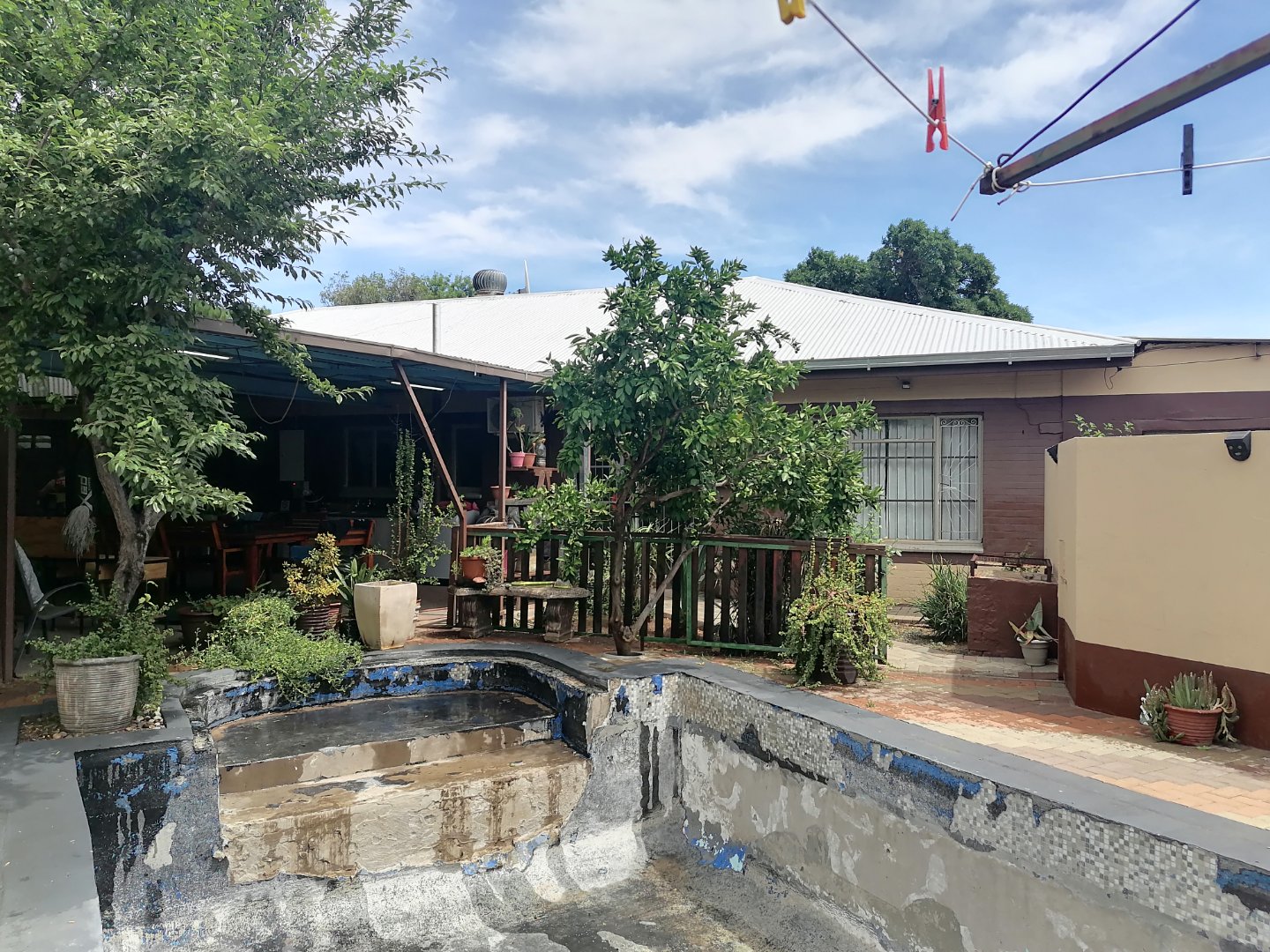 There's 2 covered entertainment areas, a pool room with a built in braai area, ideal to entertain family and friends. There is an equipped borehole, solar geyser and Jo-Jo tanks for water supply. The swimming pool needs attention. This house is walking distance to the University, Shopping Centers and Tjokkies Primary School.