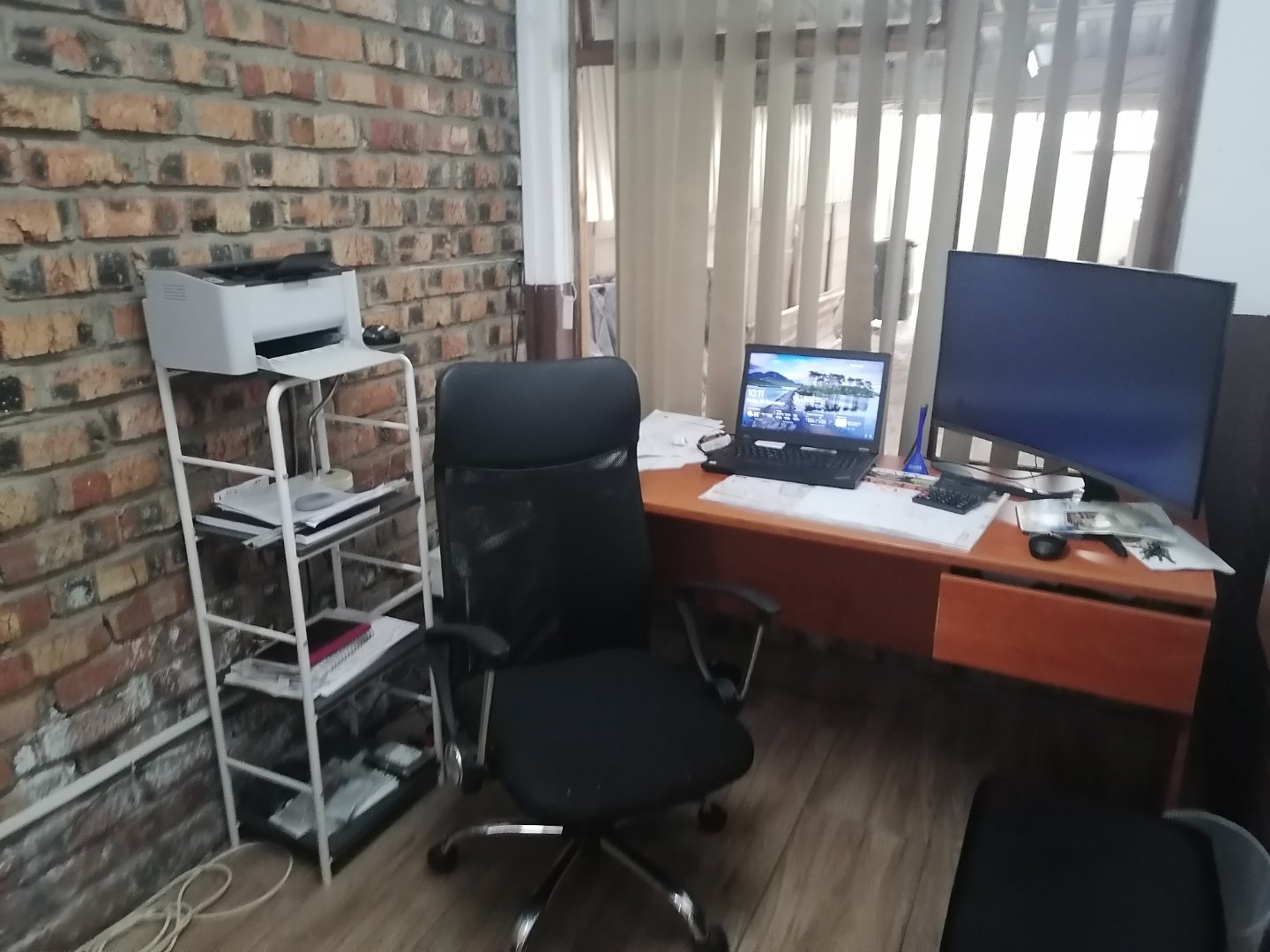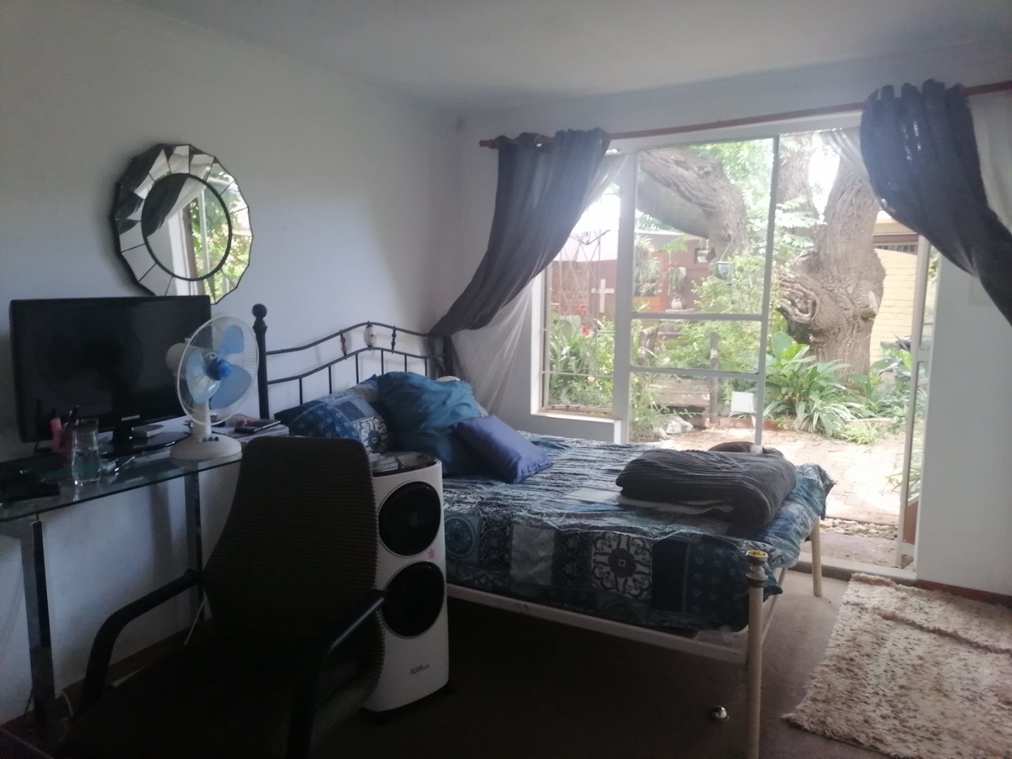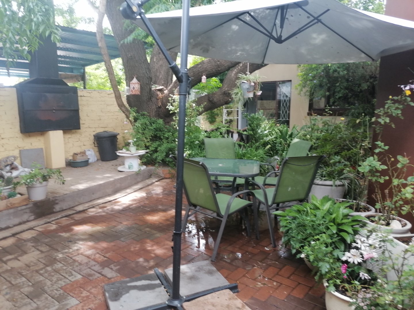 The Main house has 3 spacious bedrooms and two and a half bathrooms of which one is main en suit. The spacious kitchen have lots of built in cupboards and a separate scullery. The open plan dining room. lounge with fire place and living area have all parquart flooring and an air conditioner. 2 Offices with its own bathroom.