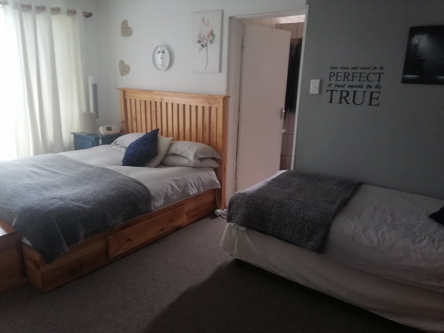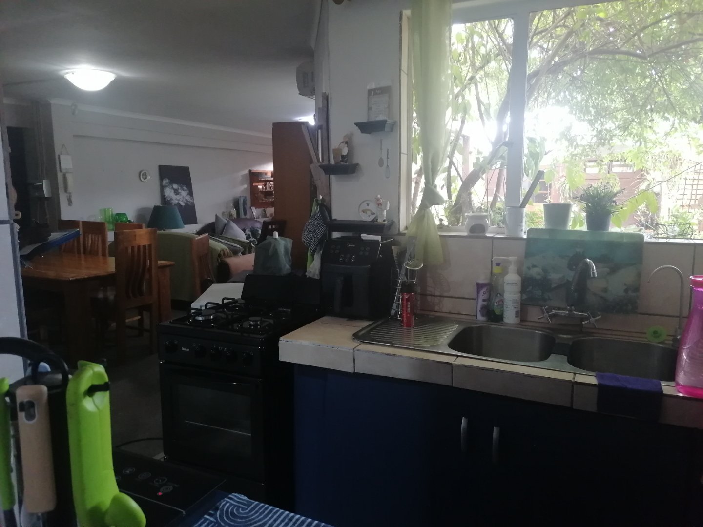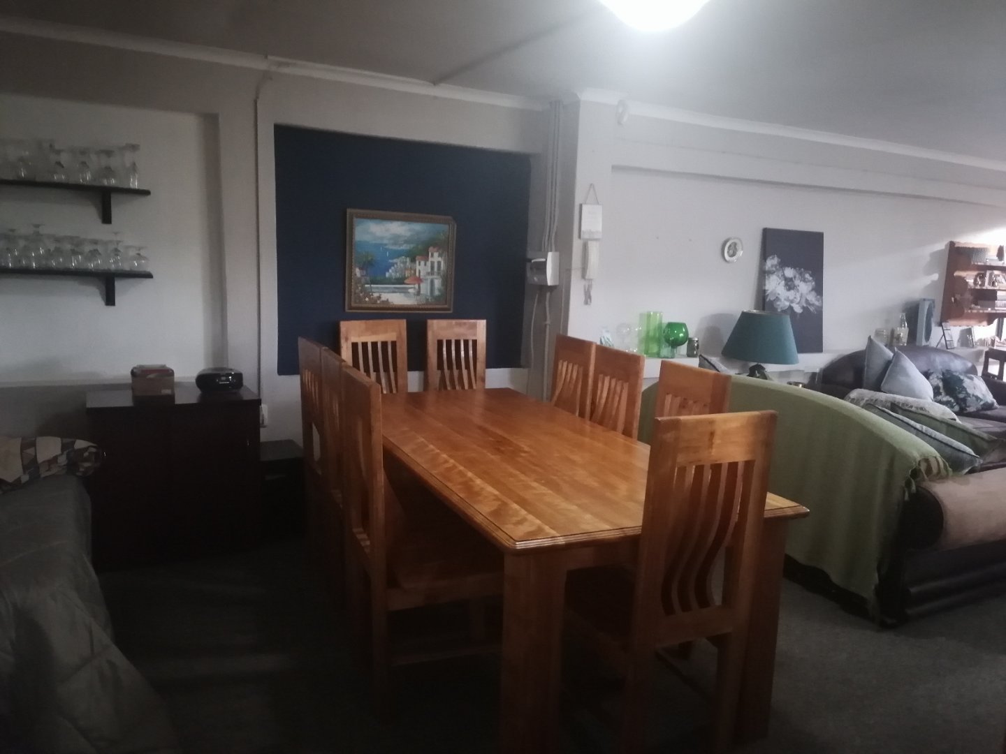 Then there is a 2 bedroom, 2 bathroom flatlet with open plan dining room and lounge, carpet flooring, air cvonditioner and open plan kitchen with laminated flooring.