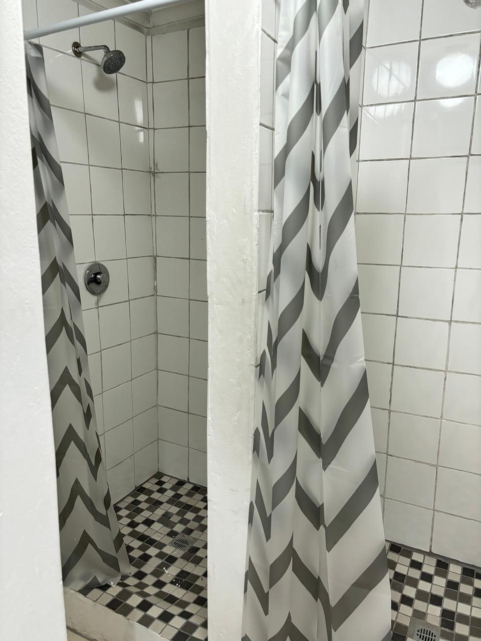 Shared amenities include a spacious kitchen with two stoves, three bathrooms, a laundry room, and an open lounge area (unfurnished).