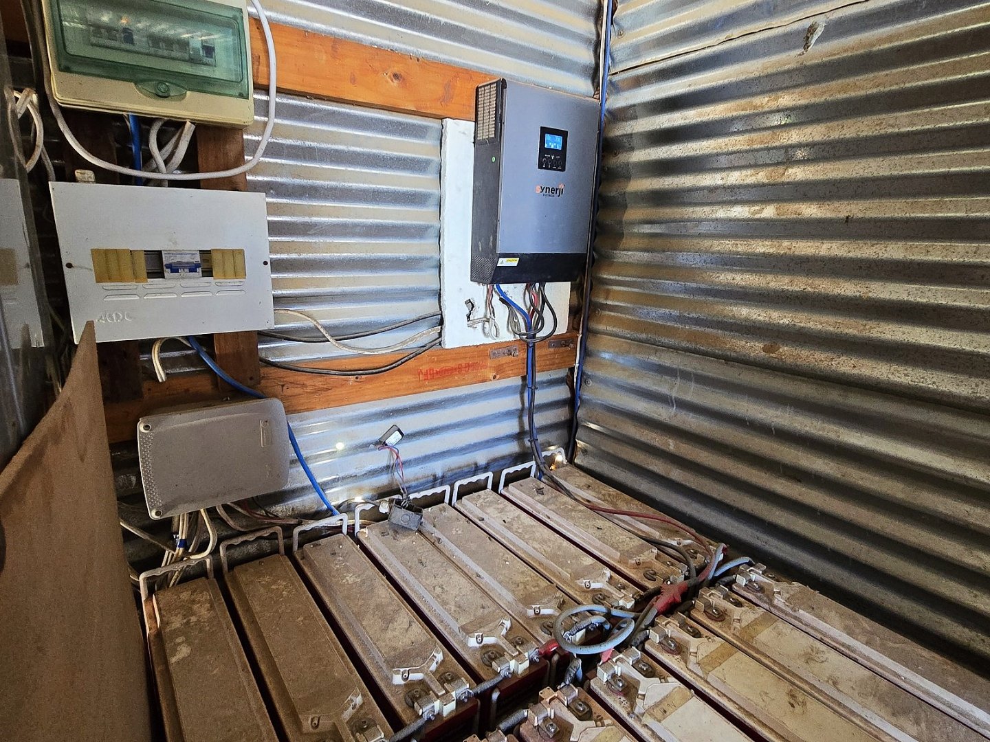 A 5 kW solar system supplies electricity to the house and surrounding lighting. An Eskom connection is also available and currently used for water pump operations.