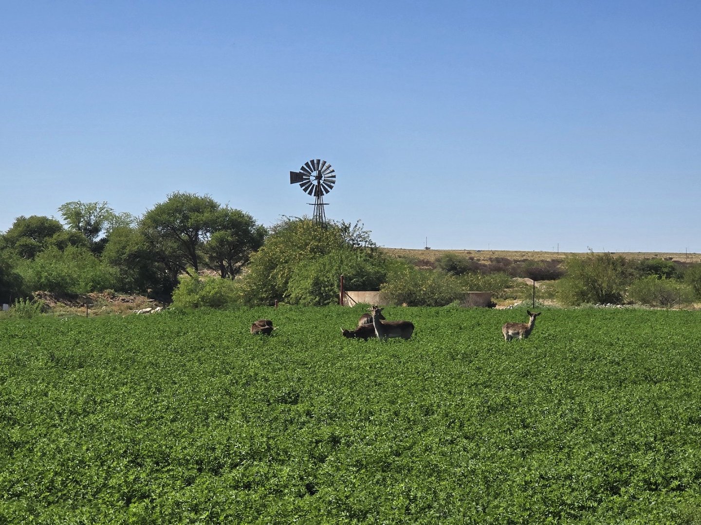 The smallholding comprises six portions, sold as one unit measuring 5.8512 hectares. It includes 3.5 hectares of domestic and agricultural water rights, supplied via the canal system and stored in a large reservoir dam. Approximately 2 hectares are planted with lucerne (established in 2022) and are flood irrigated at very low cost. An additional 2 hectares of pasture are irrigated by sprinkler systems. Together, these cultivated areas provide excellent grazing and feed capacity, supporting up to 150 sheep.