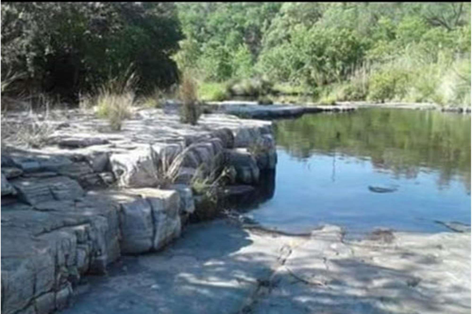 River running from a fountain with natural pools throughout the Estate