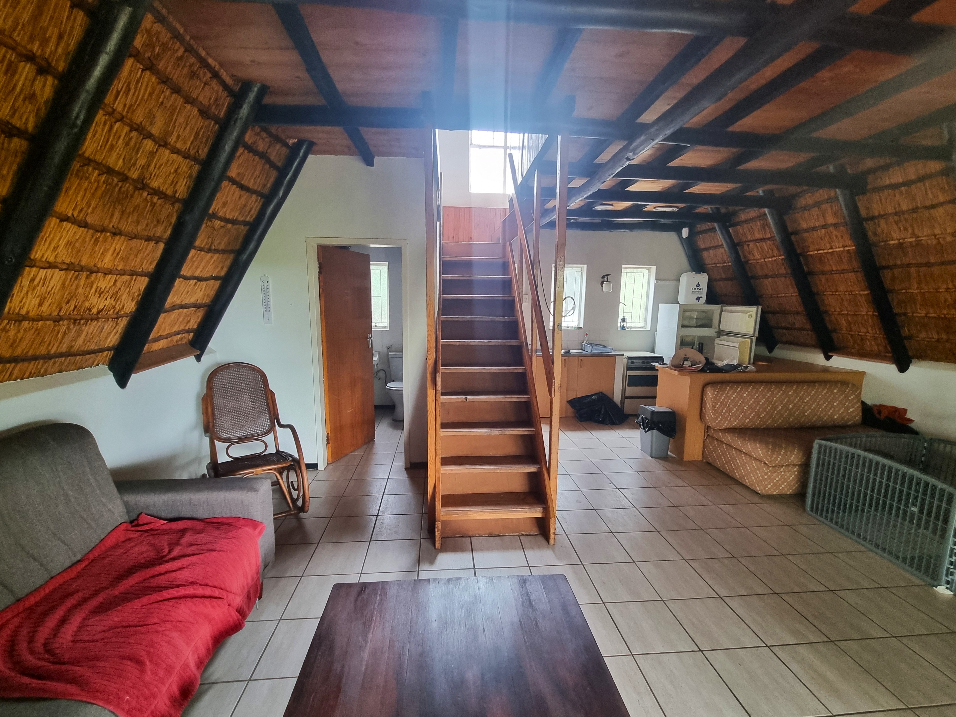 Nestled in the heart of the highly sought-after Utopia Nature Reserve, this charming two-story thatched-roof home offers breathtaking views of Buffelspoort Dam and the Magalies Mountains.