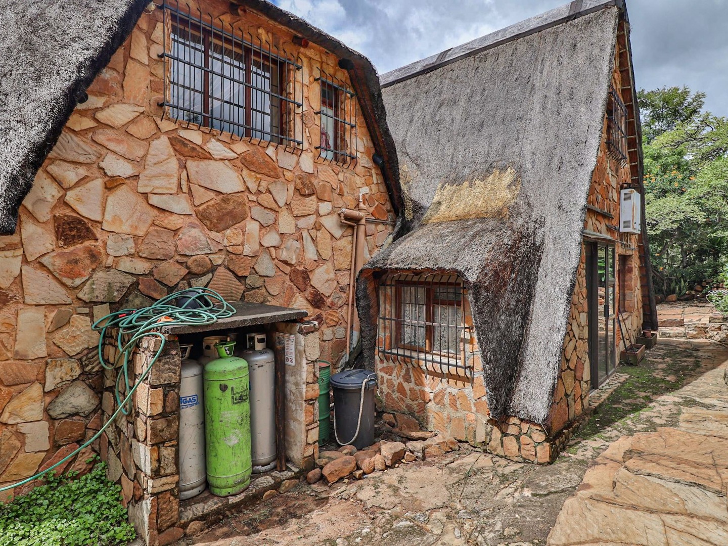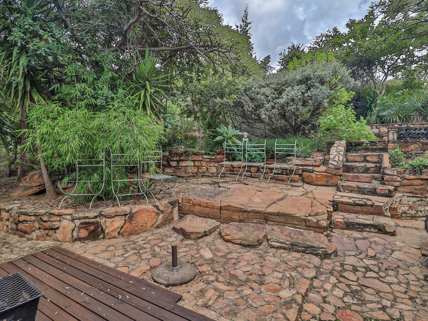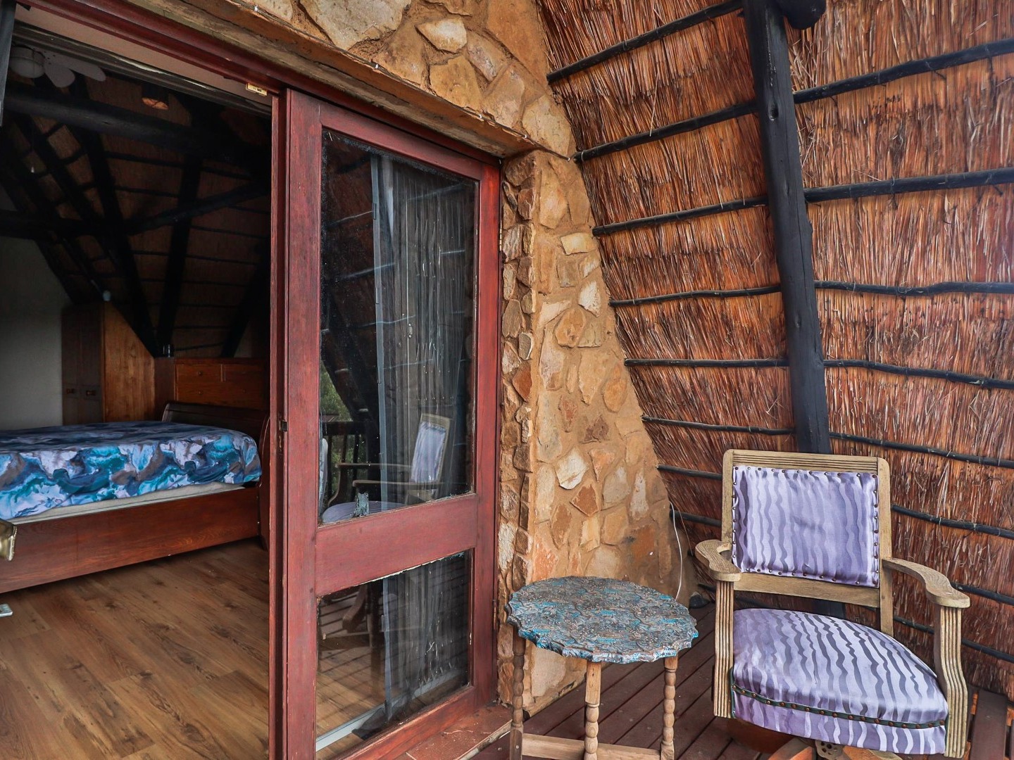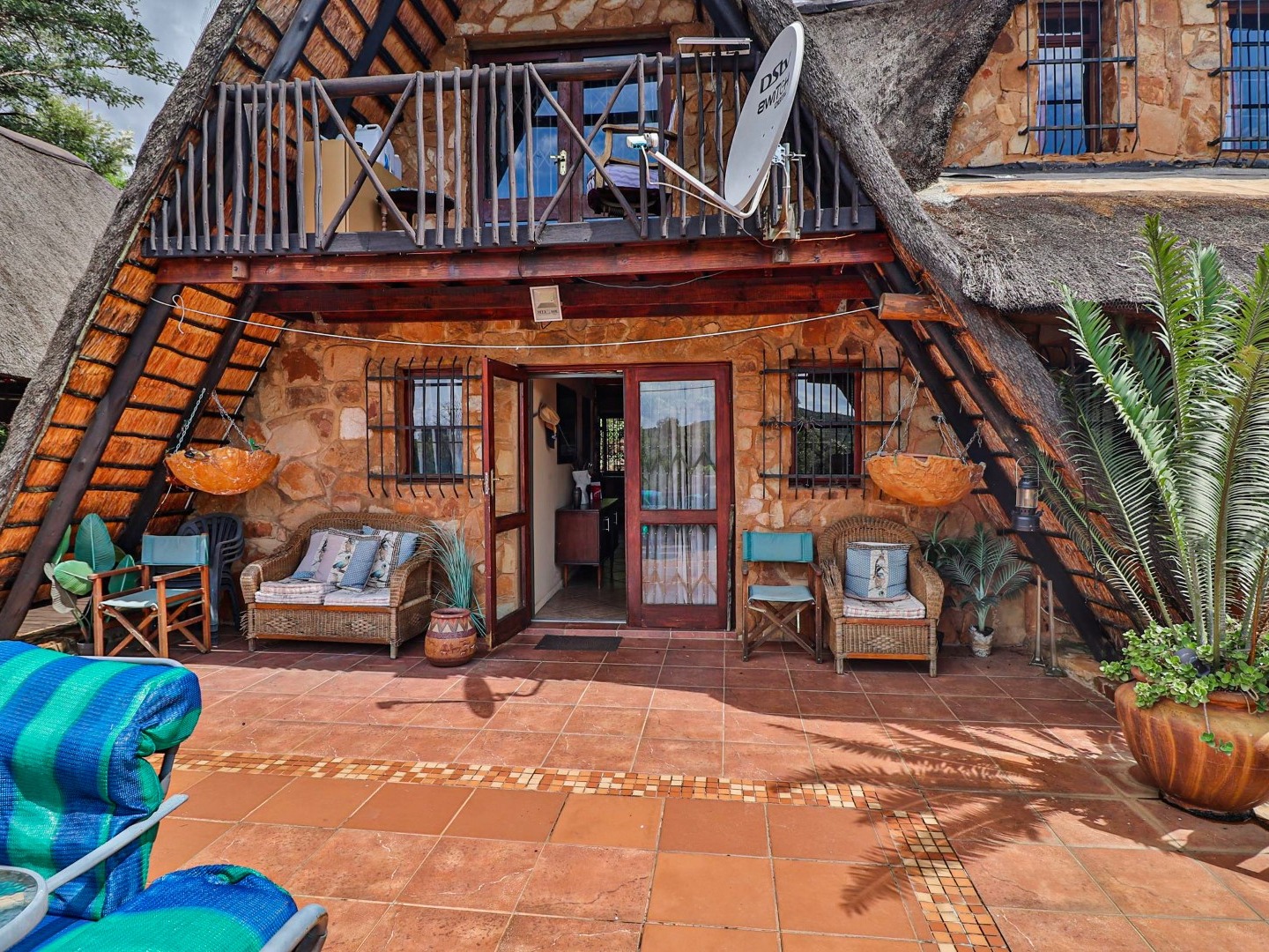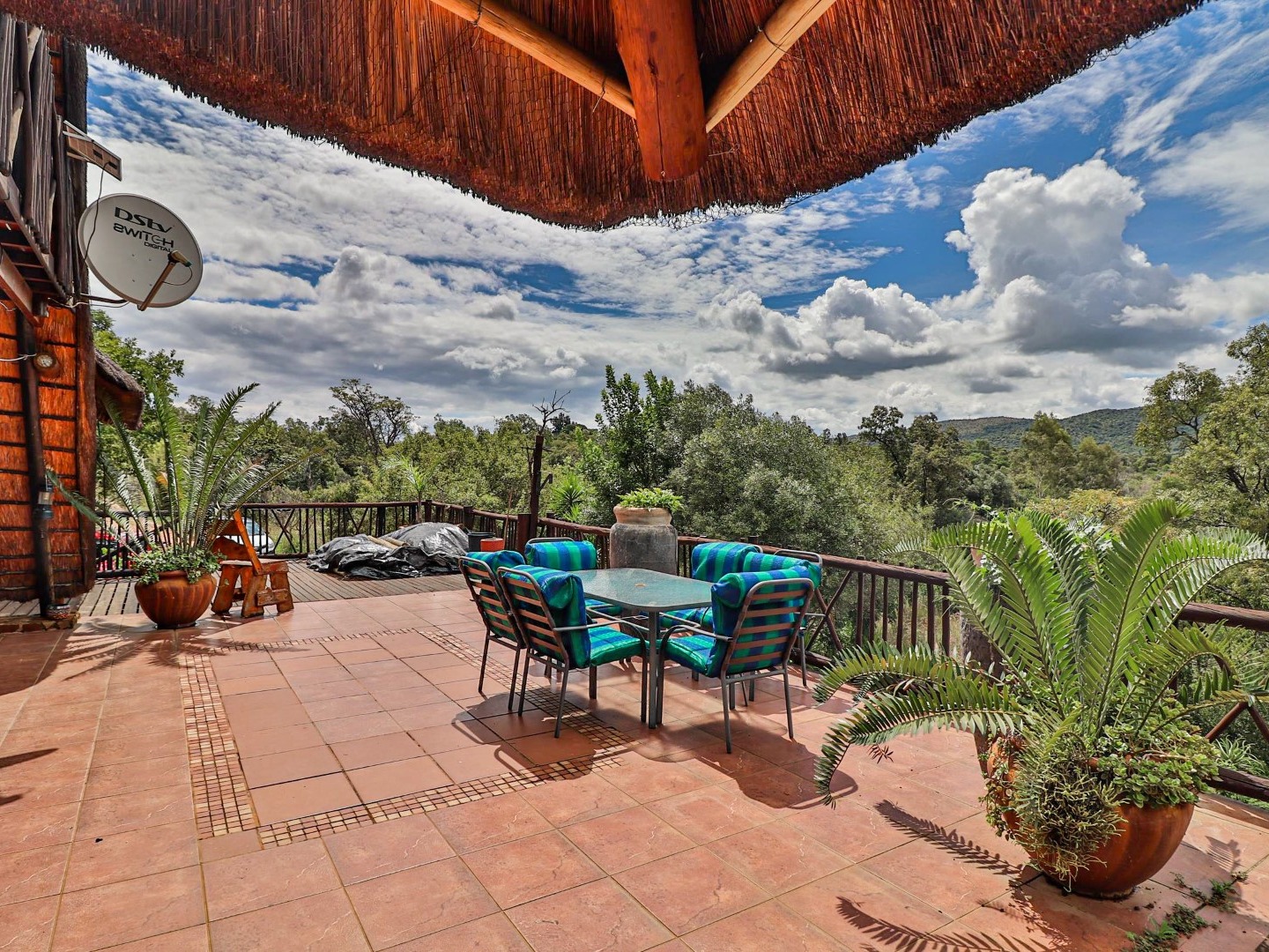 Entertainment Area: Relax in the large lapa/entertainment area with a solid wood bar counter and chairs. The stone-built double braai blends seamlessly with the natural surroundings.