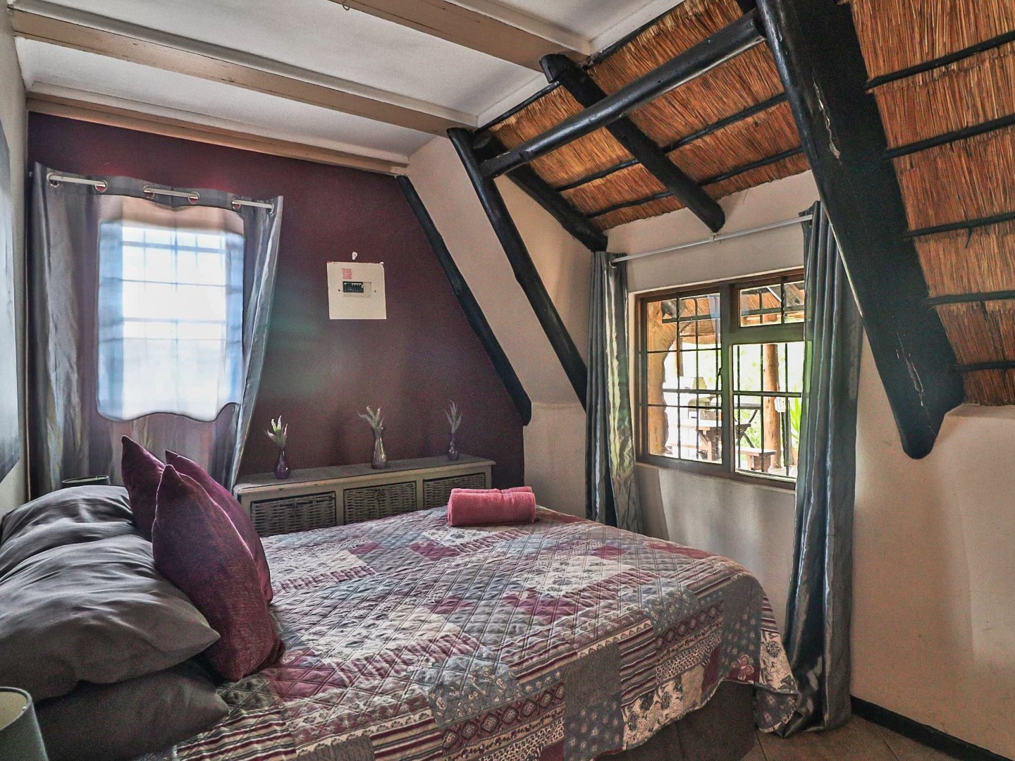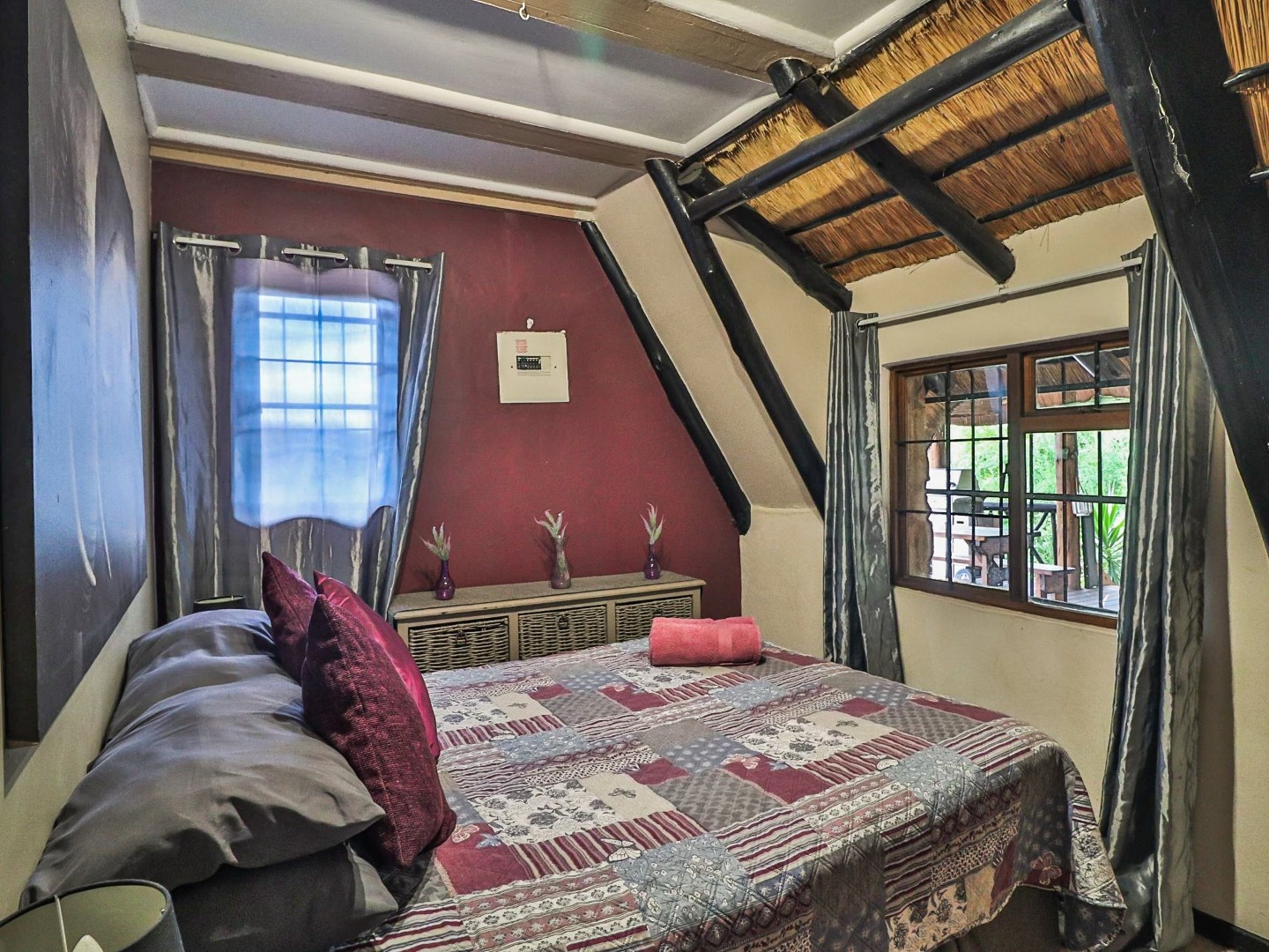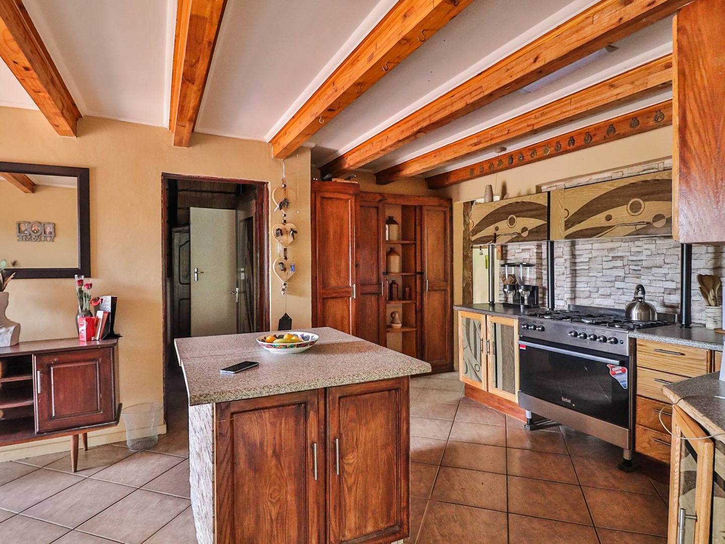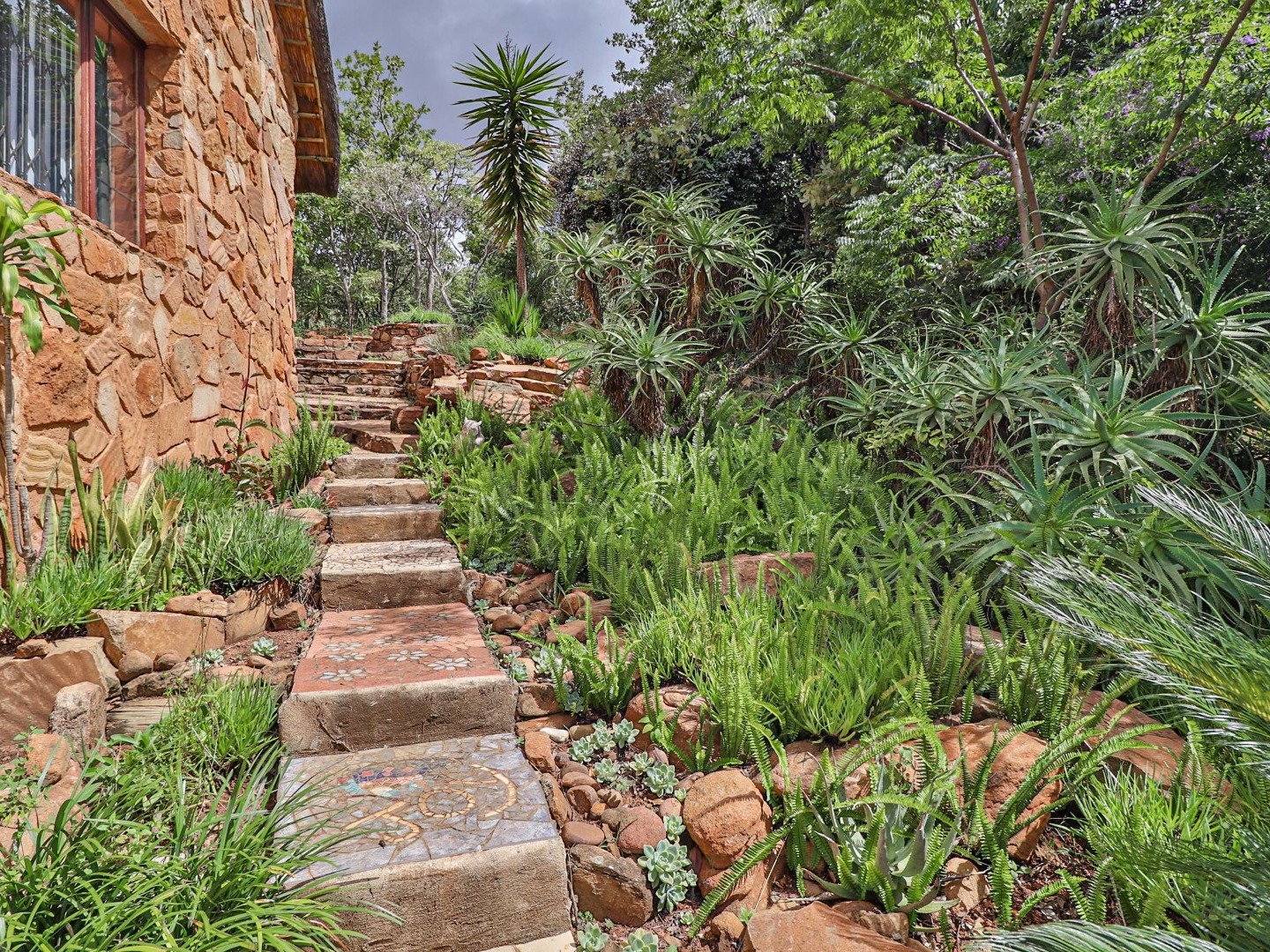 Entertainment Area: Relax in the large lapa/entertainment area with a solid wood bar counter and chairs. The stone-built double braai blends seamlessly with the natural surroundings.