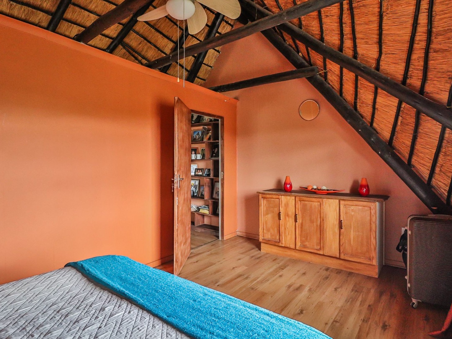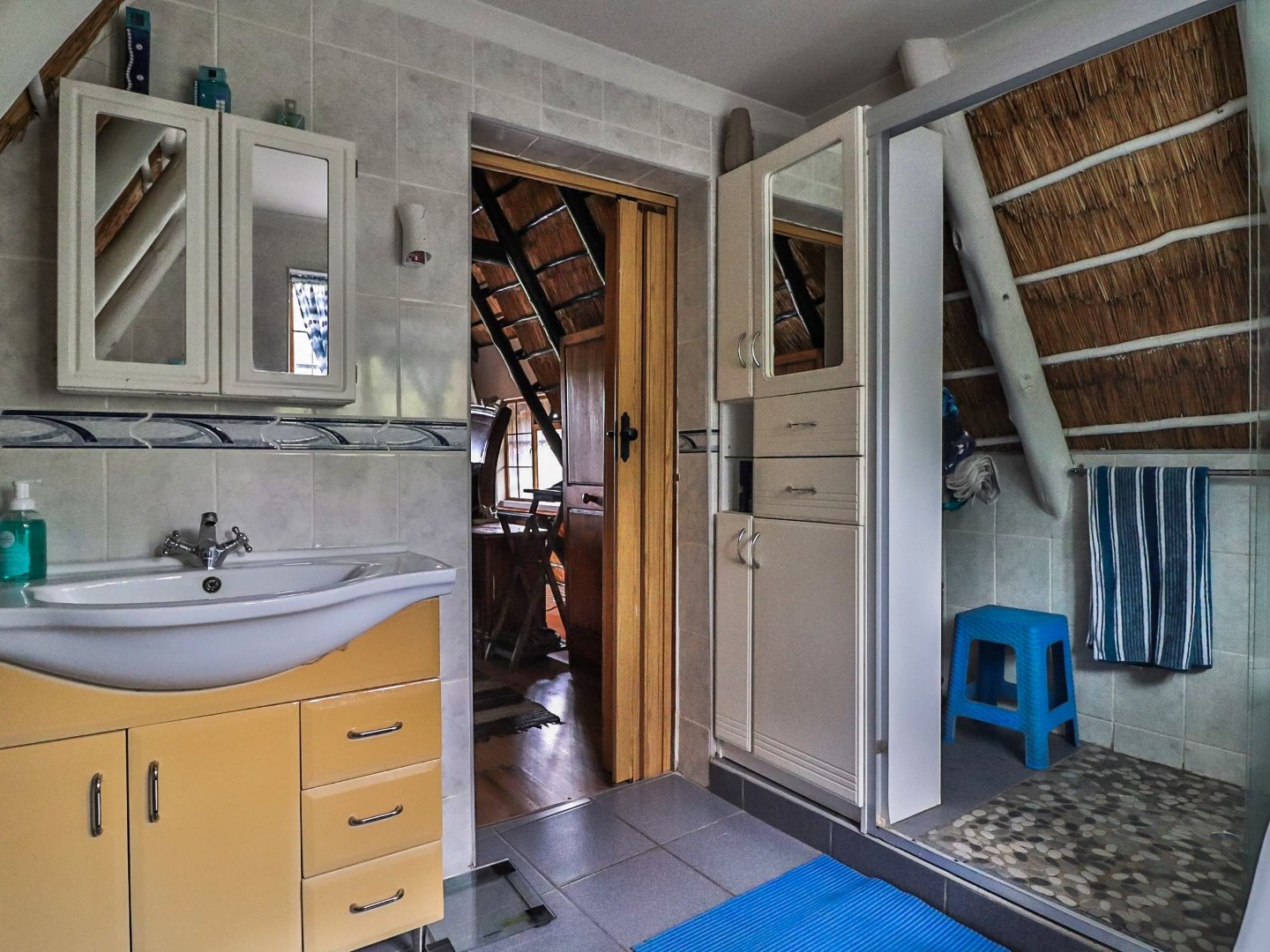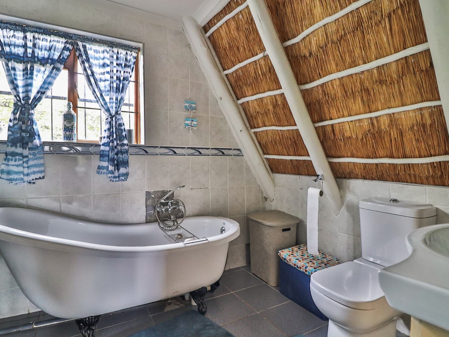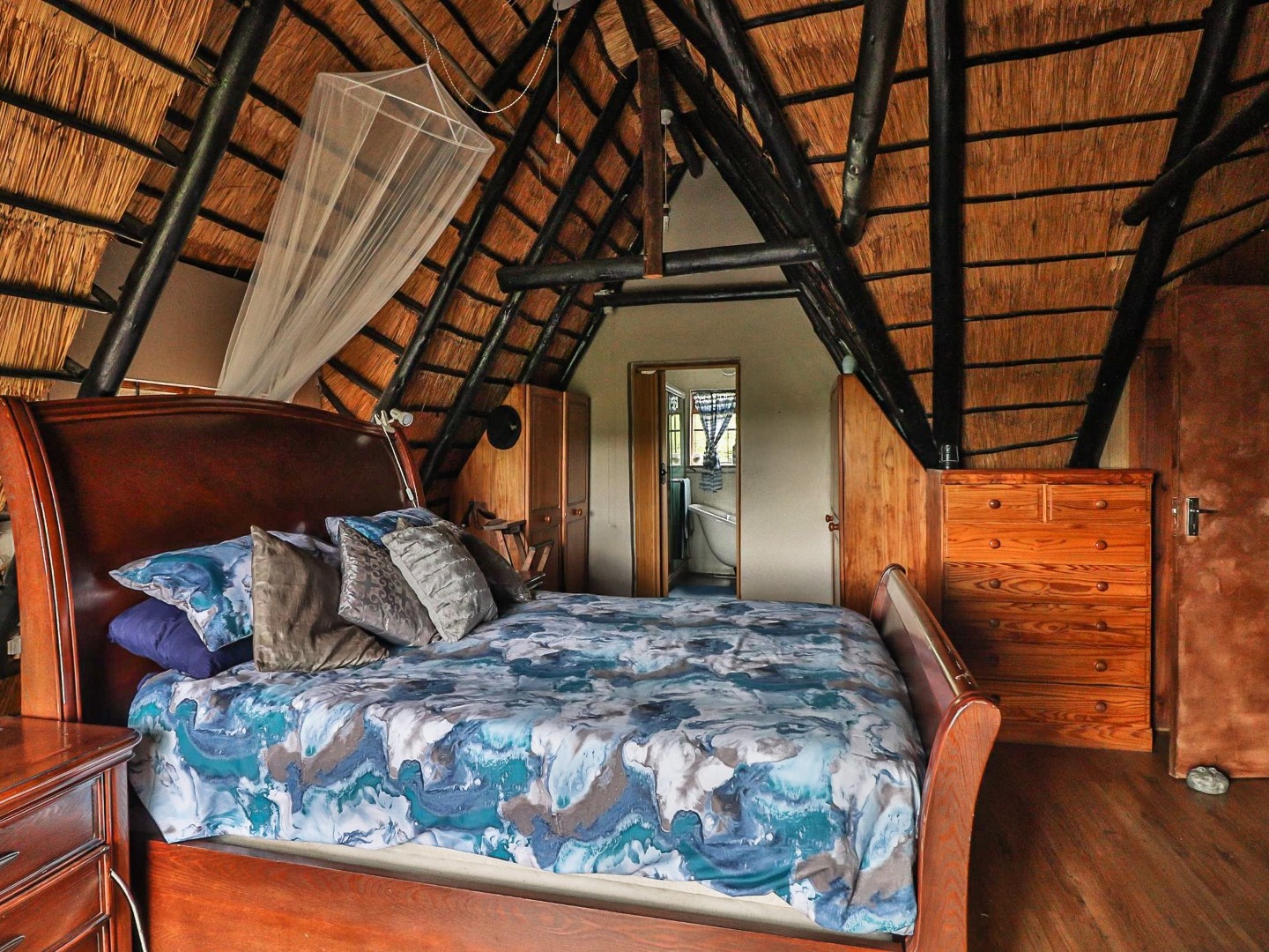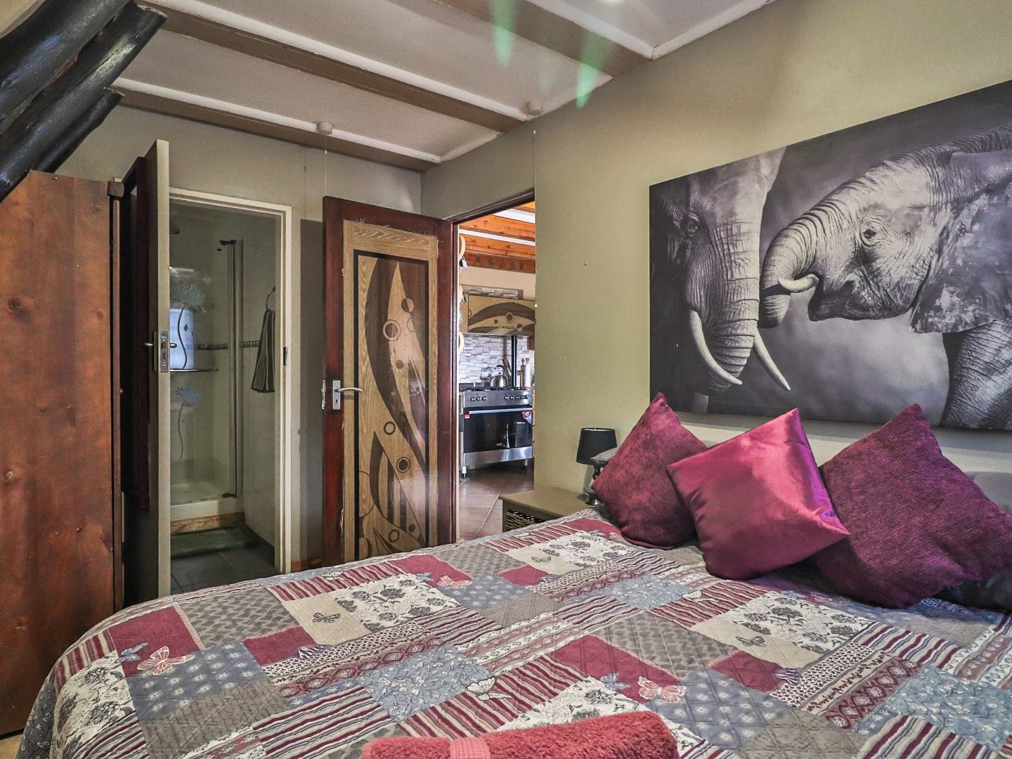 Entertainment Area: Relax in the large lapa/entertainment area with a solid wood bar counter and chairs. The stone-built double braai blends seamlessly with the natural surroundings.