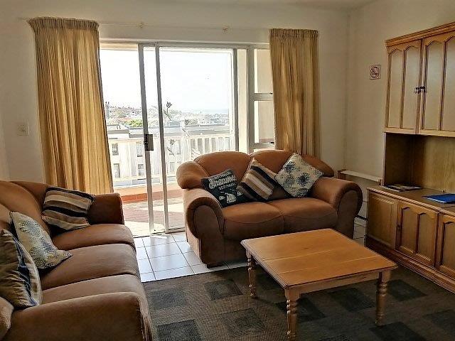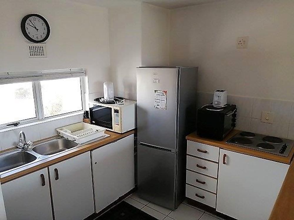 The unit boasts an open plan kitchen and lounge area that leads onto a balcony with lovely sea-views.