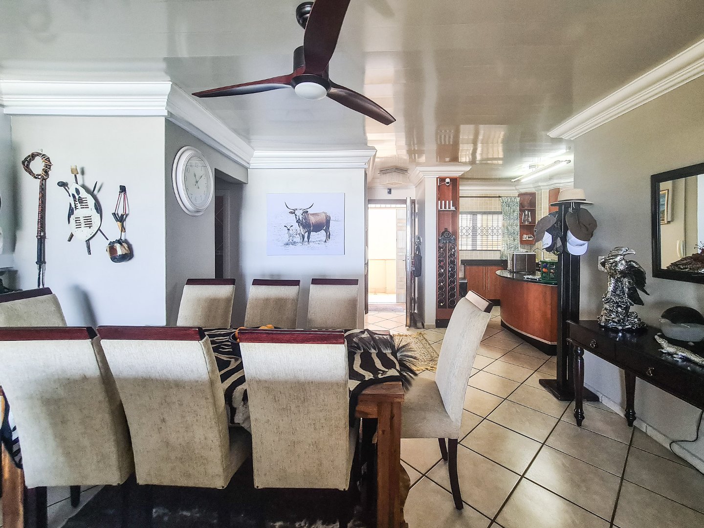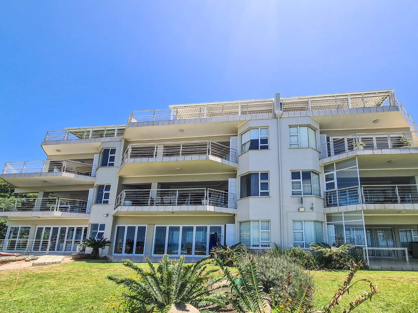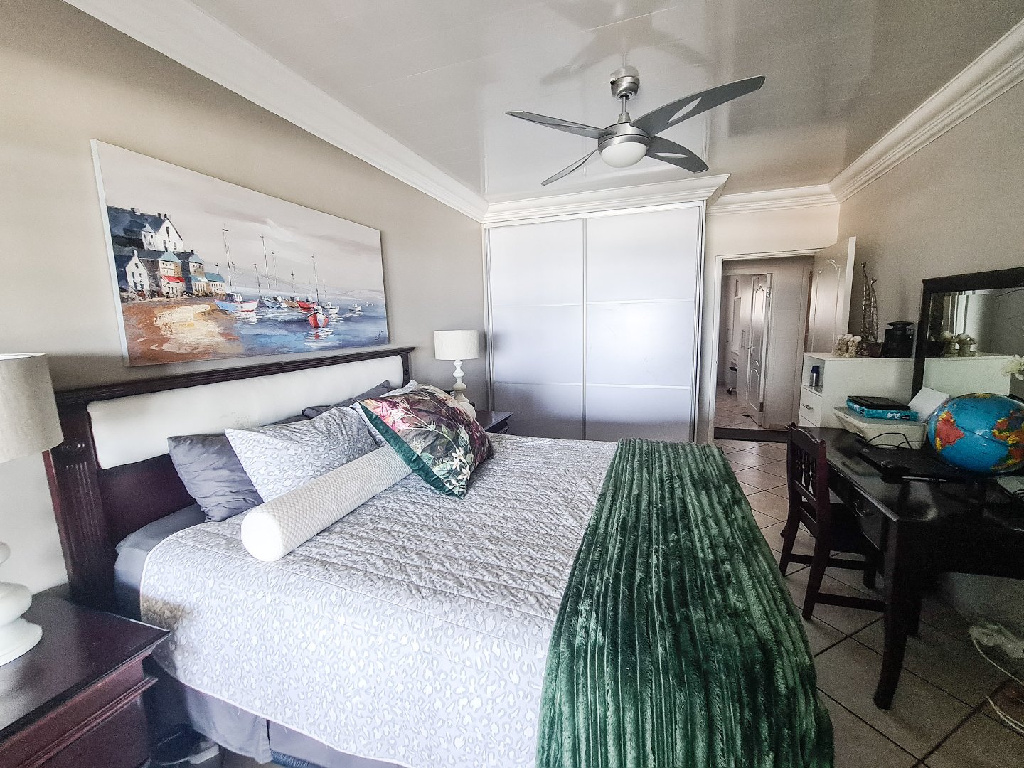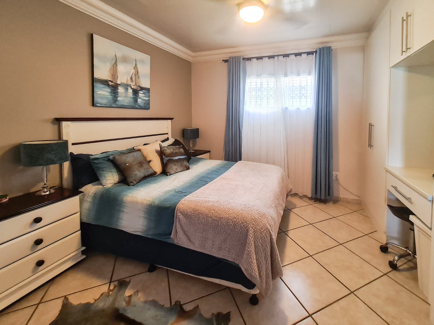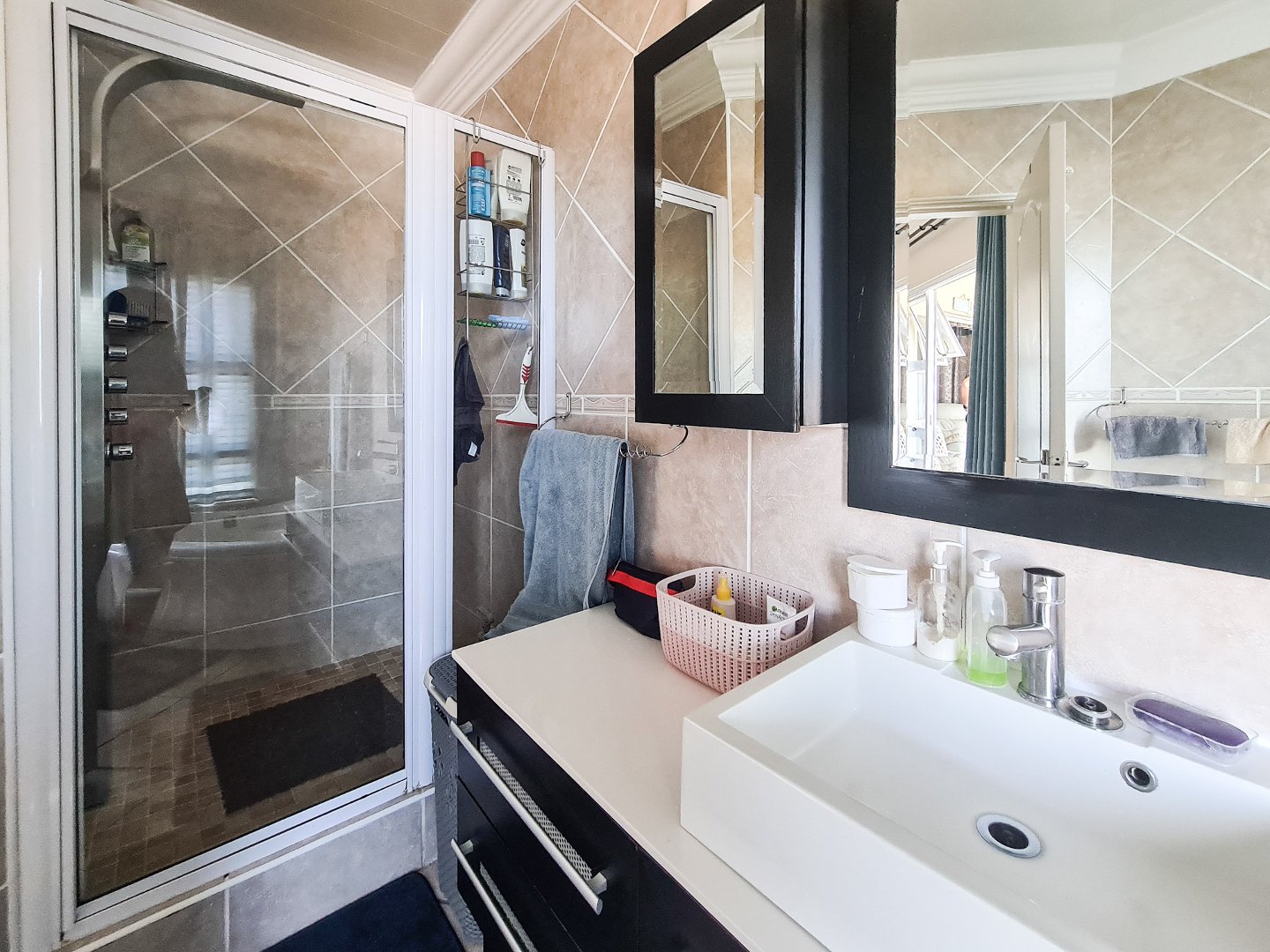 There are three well sized bedrooms, two of which open onto the balcony, and all have built-in cupboards. Embrace sustainable living with solar panels and an inverter, ensuring uninterrupted power.