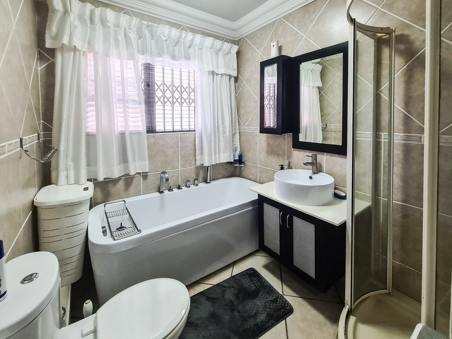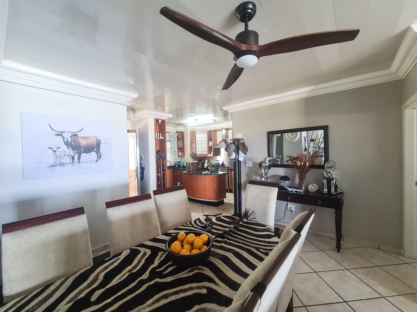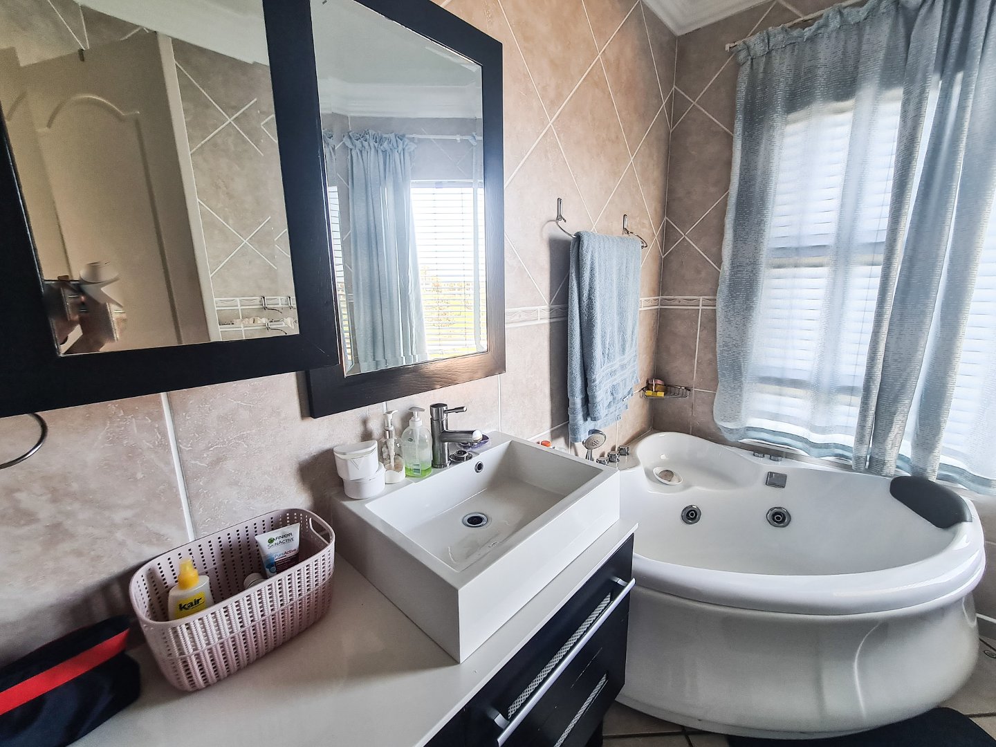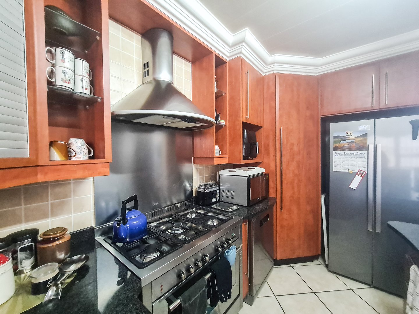 There are three well sized bedrooms, two of which open onto the balcony, and all have built-in cupboards. Embrace sustainable living with solar panels and an inverter, ensuring uninterrupted power.