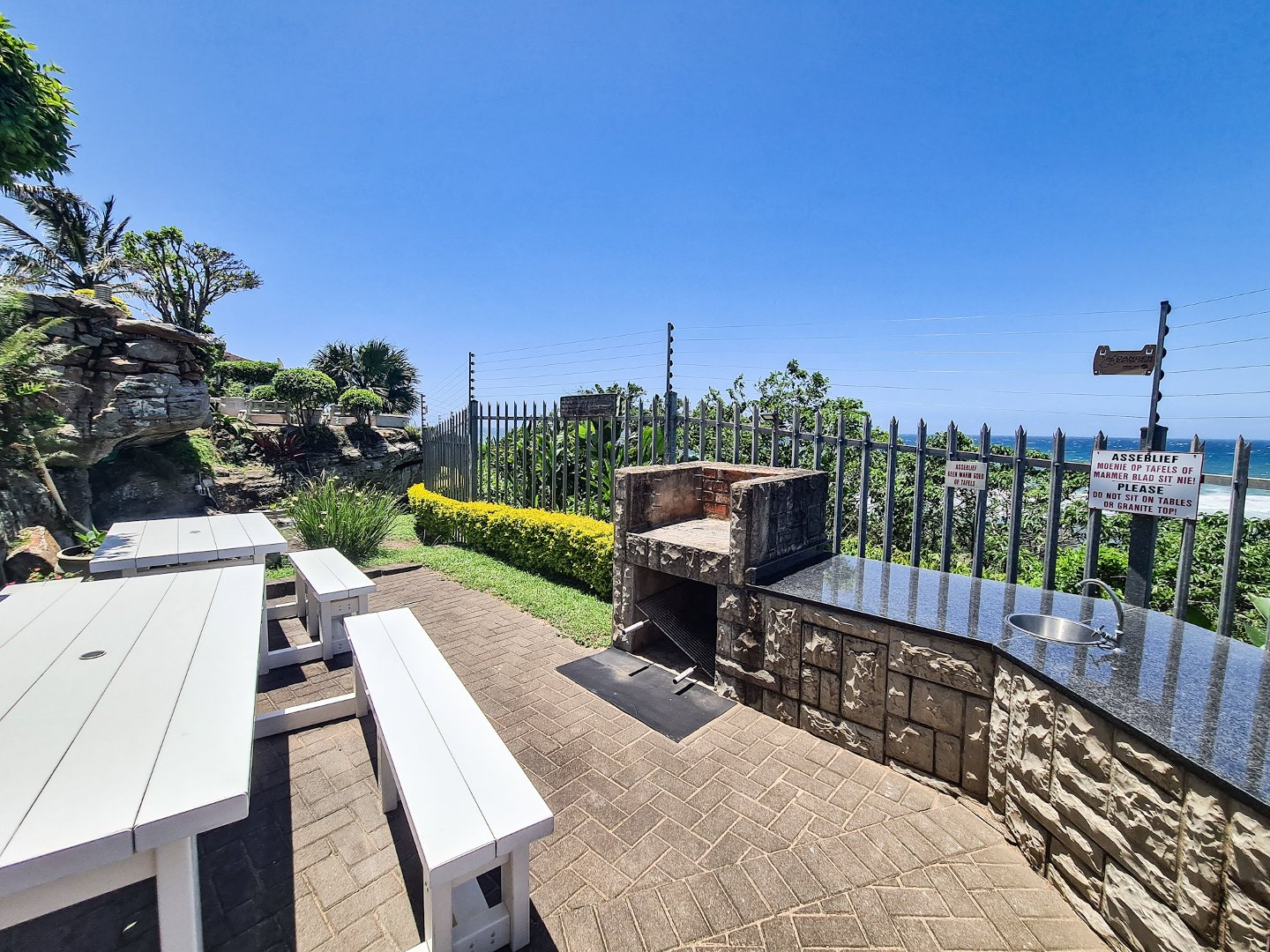 This unit is designed with an open-plan layout. The lounge extends to a spacious balcony, providing an idyllic space to soak in the coastal atmosphere. The kitchen is complete with a central island, granite tops and gas stove.