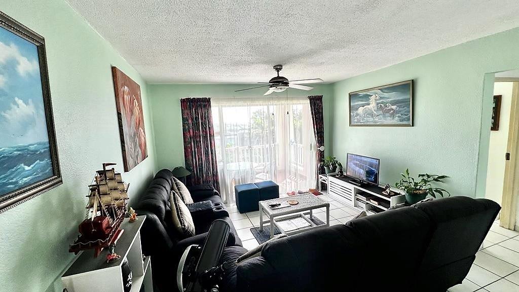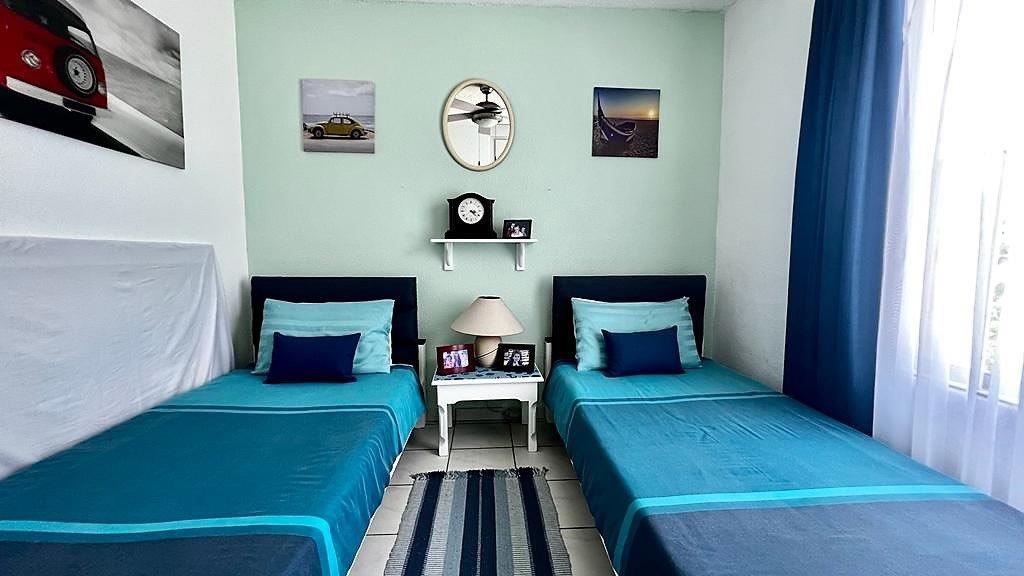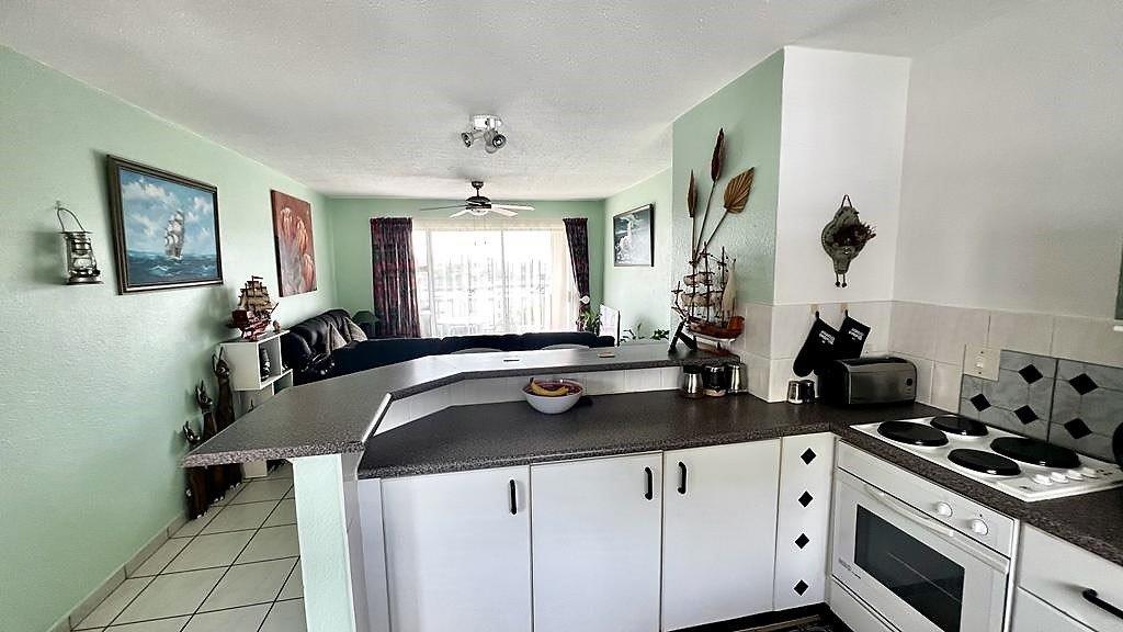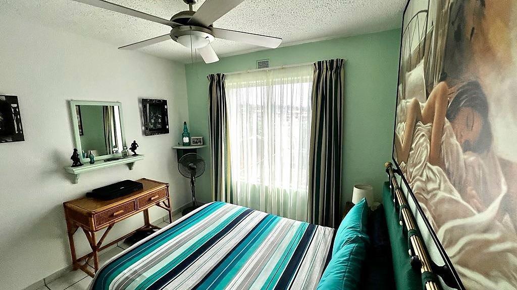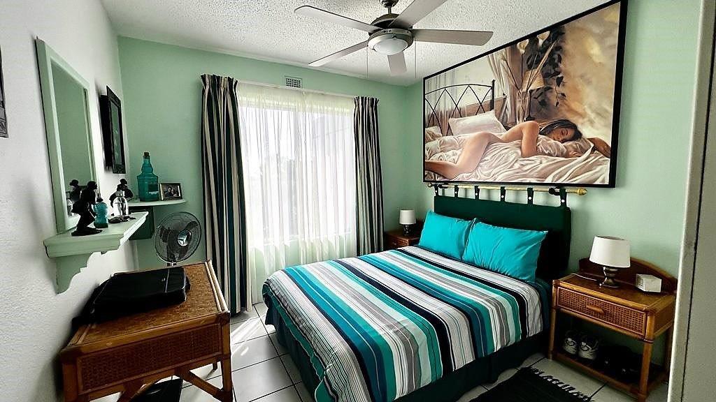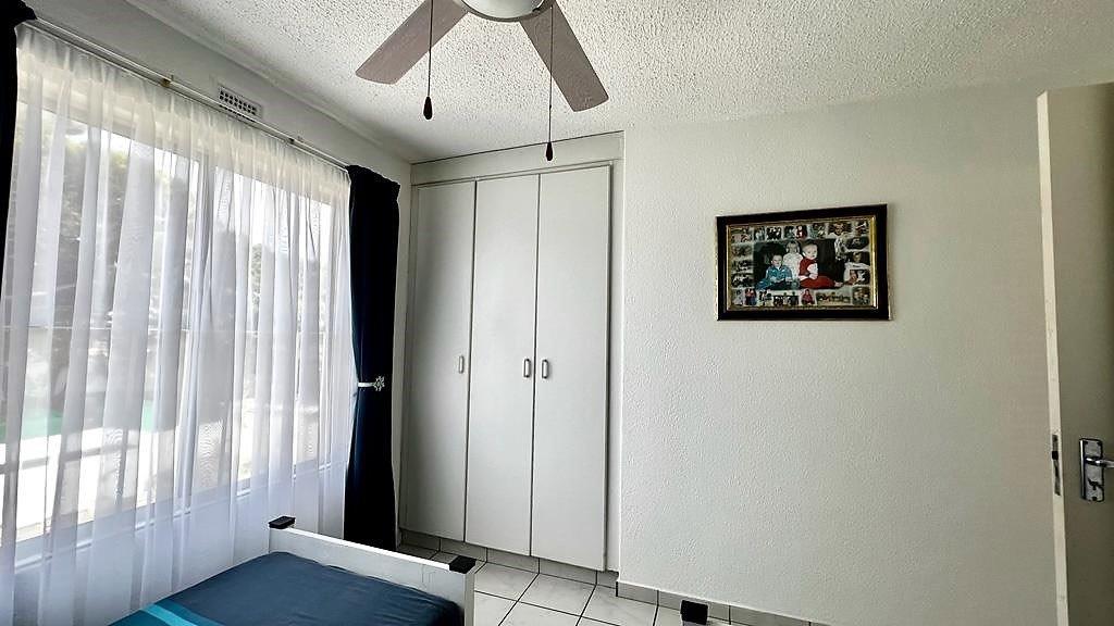 The unit is tiled throughout, and the bedrooms have built in cupboards and are fitted with ceiling fans.