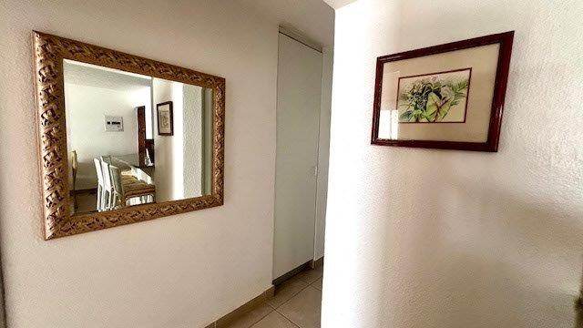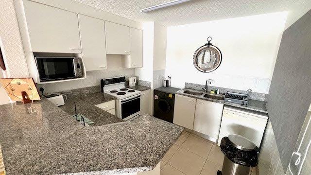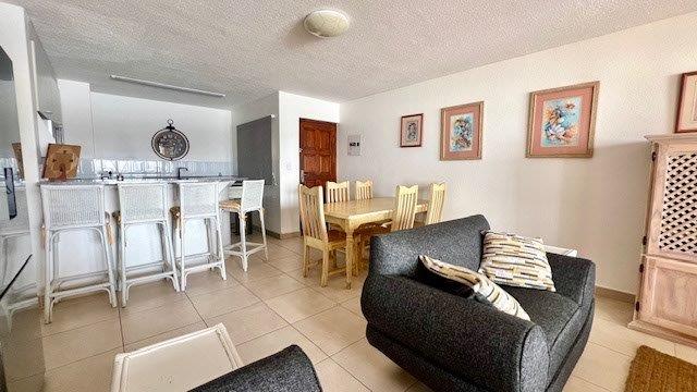 The fully furnished apartment boasts 3 bedrooms, 2 bathrooms (with an en-suite in the main bedroom), the main bedroom has a sliding door leading onto the covered balcony with amazing sea views.