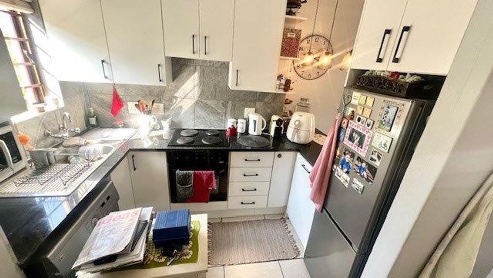 The open plan kitchen fitted with granite tops, breakfast counter and well-designed cupboards leads into the living area, there are doors that open onto a covered balcony where you can enjoy your mornings and evenings unwinding.