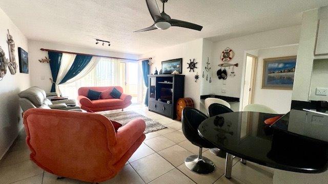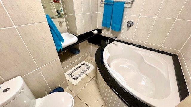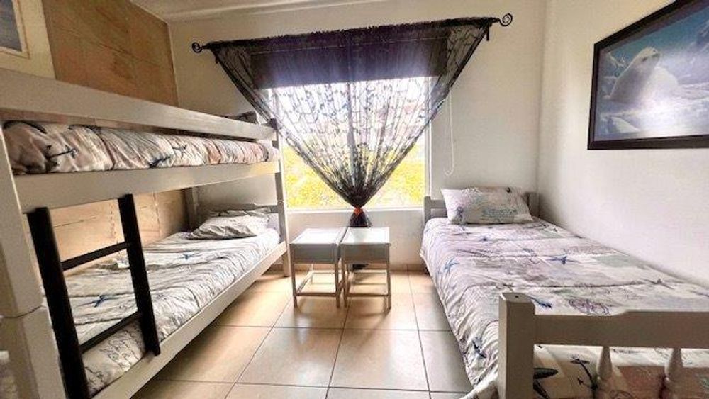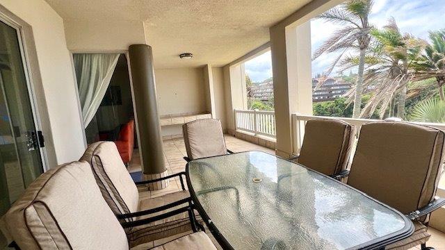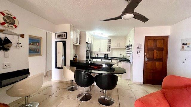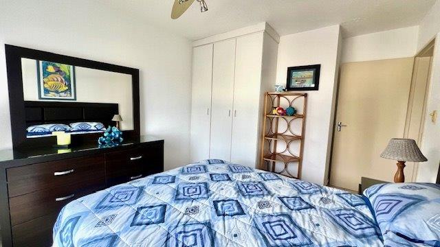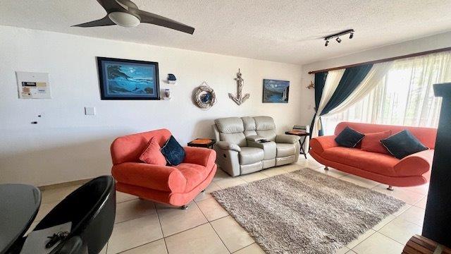 Discover modern coastal living in this elegant three-bedroom, two-bathroom apartment in Uvongo, perfectly designed for those seeking an upscale lifestyle with panoramic sea and lagoon views. Each spacious bedroom is outfitted with ceiling fans and generous storage to enhance both comfort and convenience. The main bedroom opens onto an expansive balcony, creating a seamless flow between indoor and outdoor spaces and offering breathtaking views of the Uvongo lagoon and beach. The unit boasts two beautifully appointed bathrooms, an en-suite with a sleek shower, vanity, and toilet, while the second bathroom offers a bathtub, vanity, and toilet.