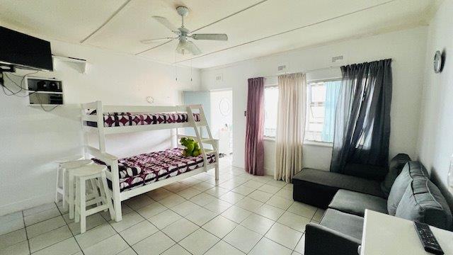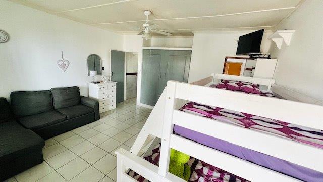 This cozy 1-bedroom apartment is perfectly located just a short stroll from Uvongo Beach. It features a separate lounge and kitchen, along with a bathroom that includes a bath, basin, and toilet.