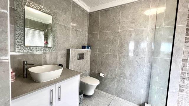 There are 3 bedrooms and 2 bathrooms, the main bedroom has an en-suite bathroom with large walk-in shower, the 2nd bathroom has a shower and bath to serve the other 2 bedrooms.