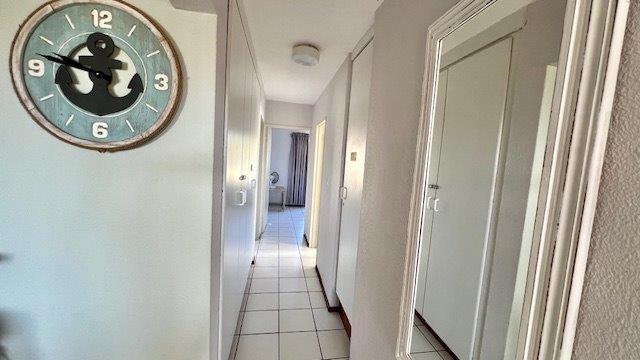 The main bedroom opens directly onto the balcony, providing beautiful sea views. All three bedrooms come with built-in cupboards , two of the bedrooms have ceiling fans for added comfort. There are two bathrooms, with the main bedroom featuring an en-suite.