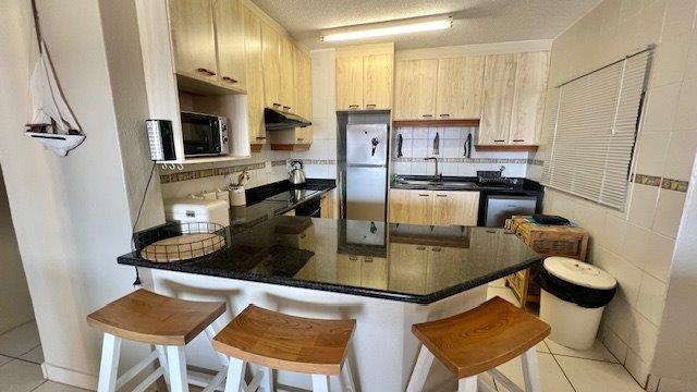 The modern kitchen features granite countertops and quality finishes, creating a practical yet stylish space to cook and entertain. The main bedroom opens directly onto the patio and shares the same stunning ocean views. It also boasts an en-suite bathroom with a large, wheelchair-friendly shower for added ease and comfort.