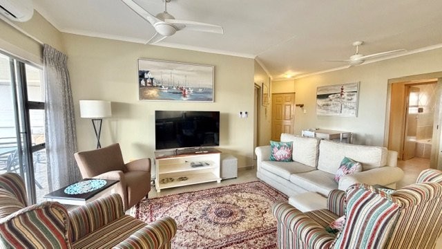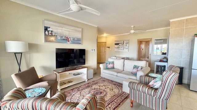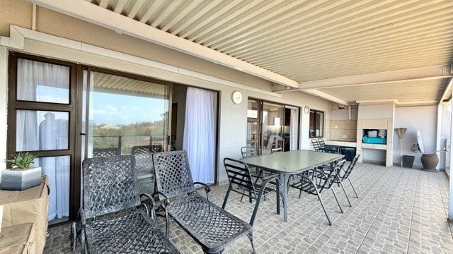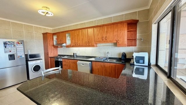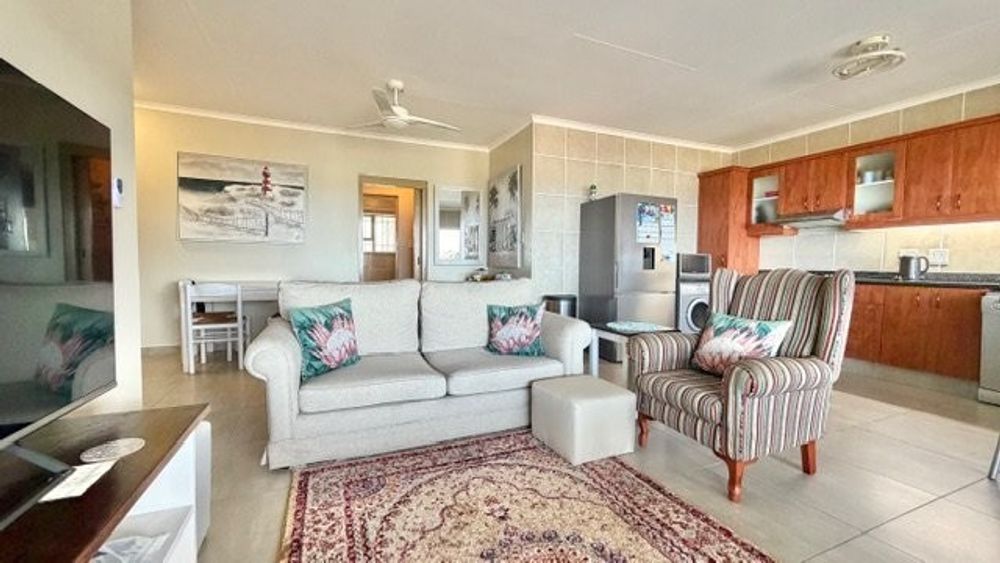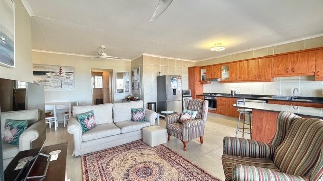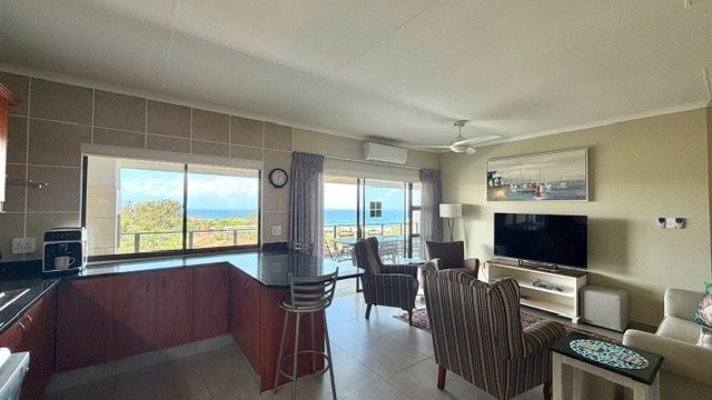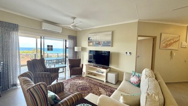 Step inside and be impressed by the spacious open-plan layout, featuring a newly refreshed kitchen with granite countertops, a breakfast counter, ample cupboard space, and convenient fittings for your dishwasher and tumble dryer. A clever service hatch opens directly to the balcony, making entertaining a breeze, while the built-in braai area sets the scene for laid-back coastal evenings.