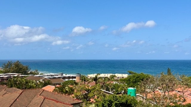 There are three generous bedrooms and two bathrooms, including a main en-suite. The main bedroom features air conditioning, new ceiling fans, and sliding doors leading directly out to the balcony, where you can enjoy tranquil sea views and your morning coffee in the fresh coastal air. The second bathroom includes a washing machine connection for added convenience.