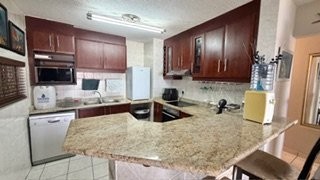 The open-plan kitchen is practical and inviting, offering granite tops, a breakfast nook, and everything you need for easy, everyday living. The dining and lounge areas lead out onto the large patio—an ideal spot for entertaining or simply relaxing while enjoying the sound of the waves.