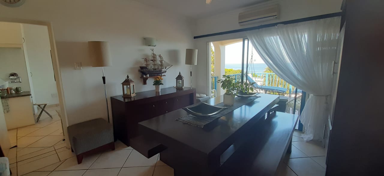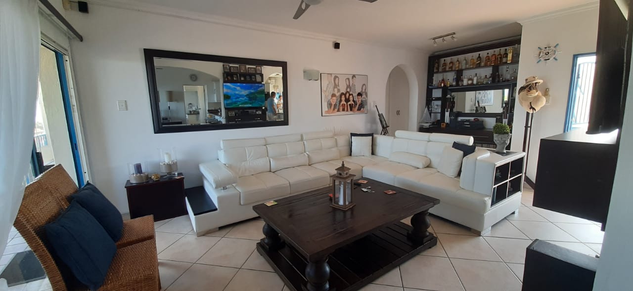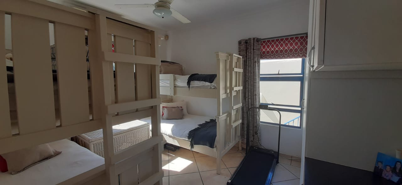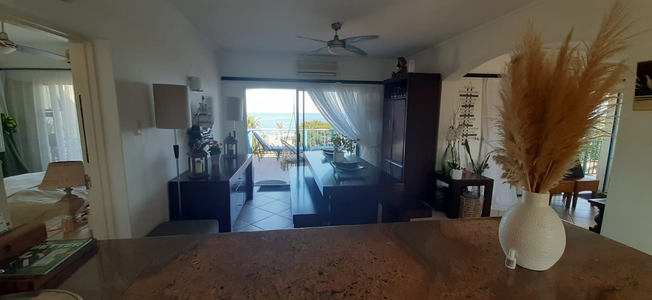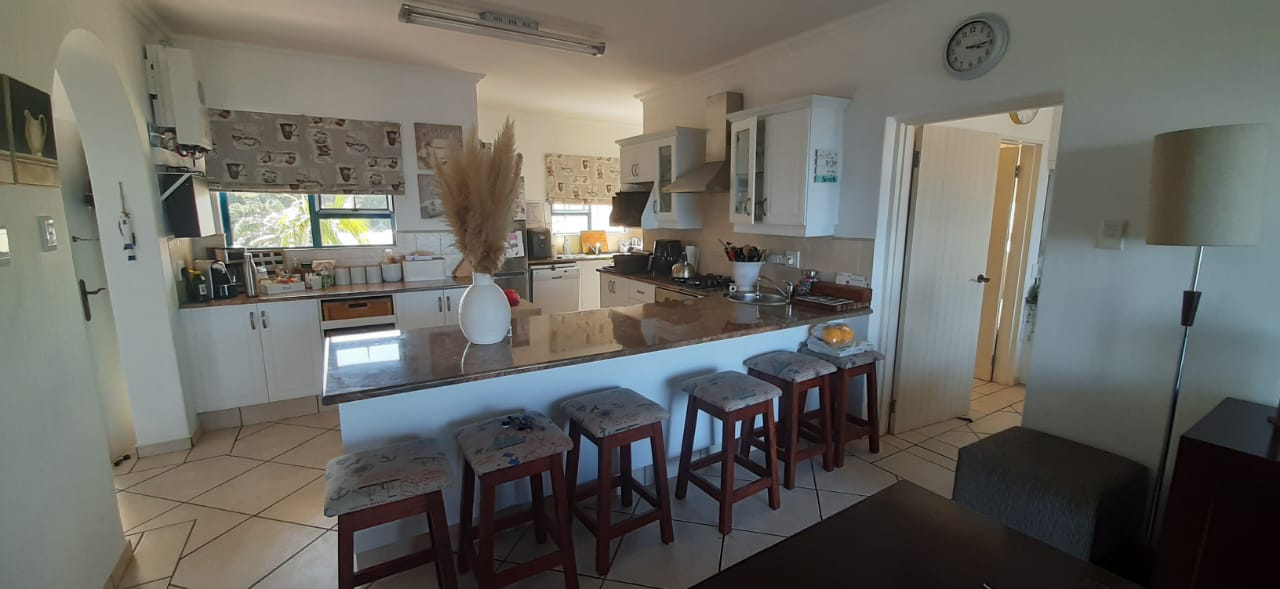 This exceptional penthouse is ideally located in a popular, well-maintained complex in Uvongo and offers outstanding space, style, and value. The modern open-plan kitchen features granite countertops, ample cupboard space, room for all appliances, and a large separate scullery. It flows seamlessly into the spacious lounge and dining areas, perfect for comfortable living and entertaining. The lounge, dining room, and two of the four bedrooms open onto a large patio with built-in braai and pizza oven, offering beautiful sea views. A section of the patio is fitted with PVC sail covers for all-weather enjoyment. The unit offers four well-sized bedrooms, including two en-suite, plus an additional bathroom. One bedroom enjoys its own private patio. A built-in inverter provides essential backup power, while the double lock-up garage with cupboards ensures secure parking and extra storage. The complex features a communal pool, kiddies’ pool, clubhouse, children’s play area, and braai facilities set among large trees. A well-priced, standout penthouse in a sought-after coastal location—don’t miss this opportunity.