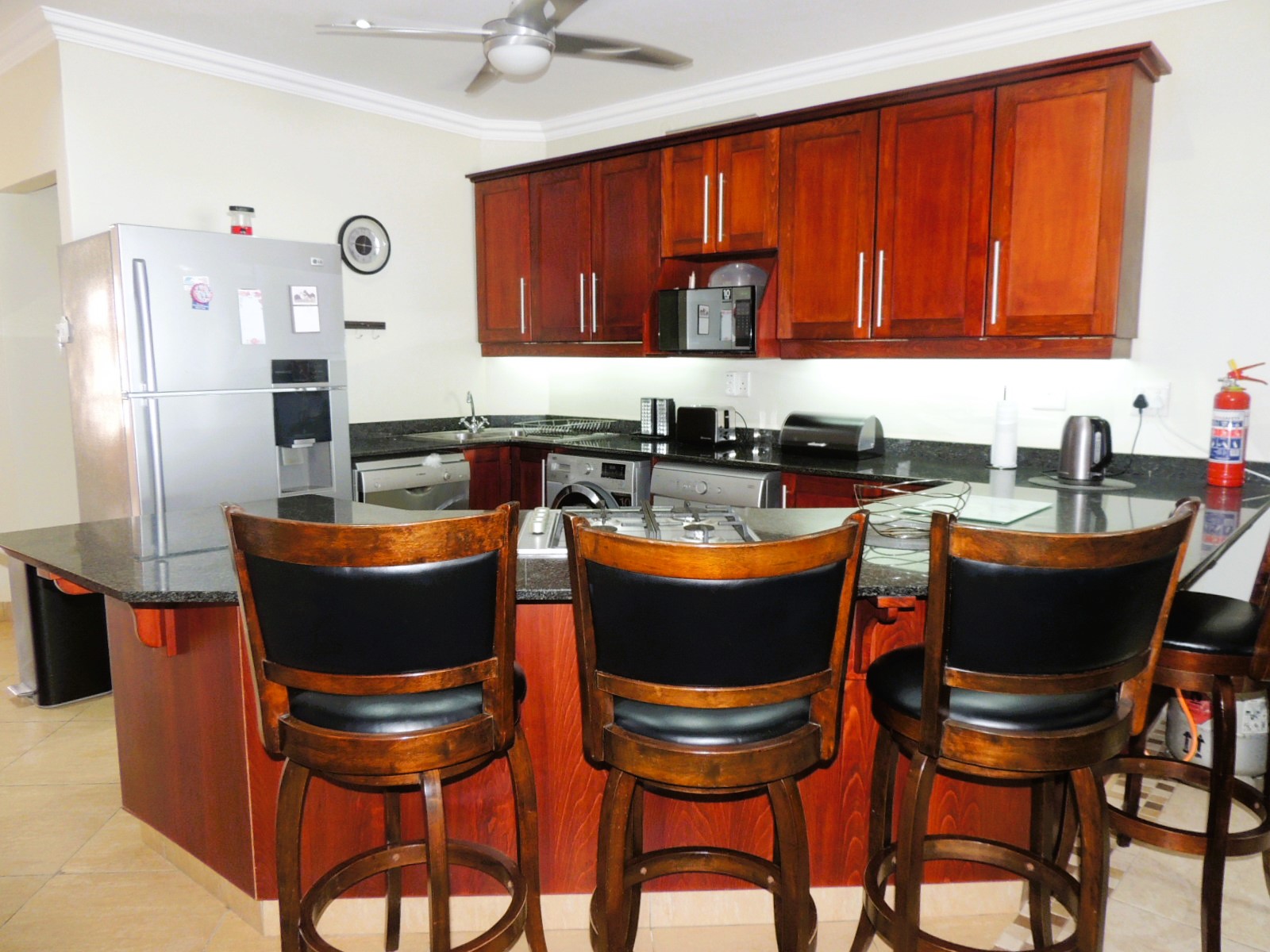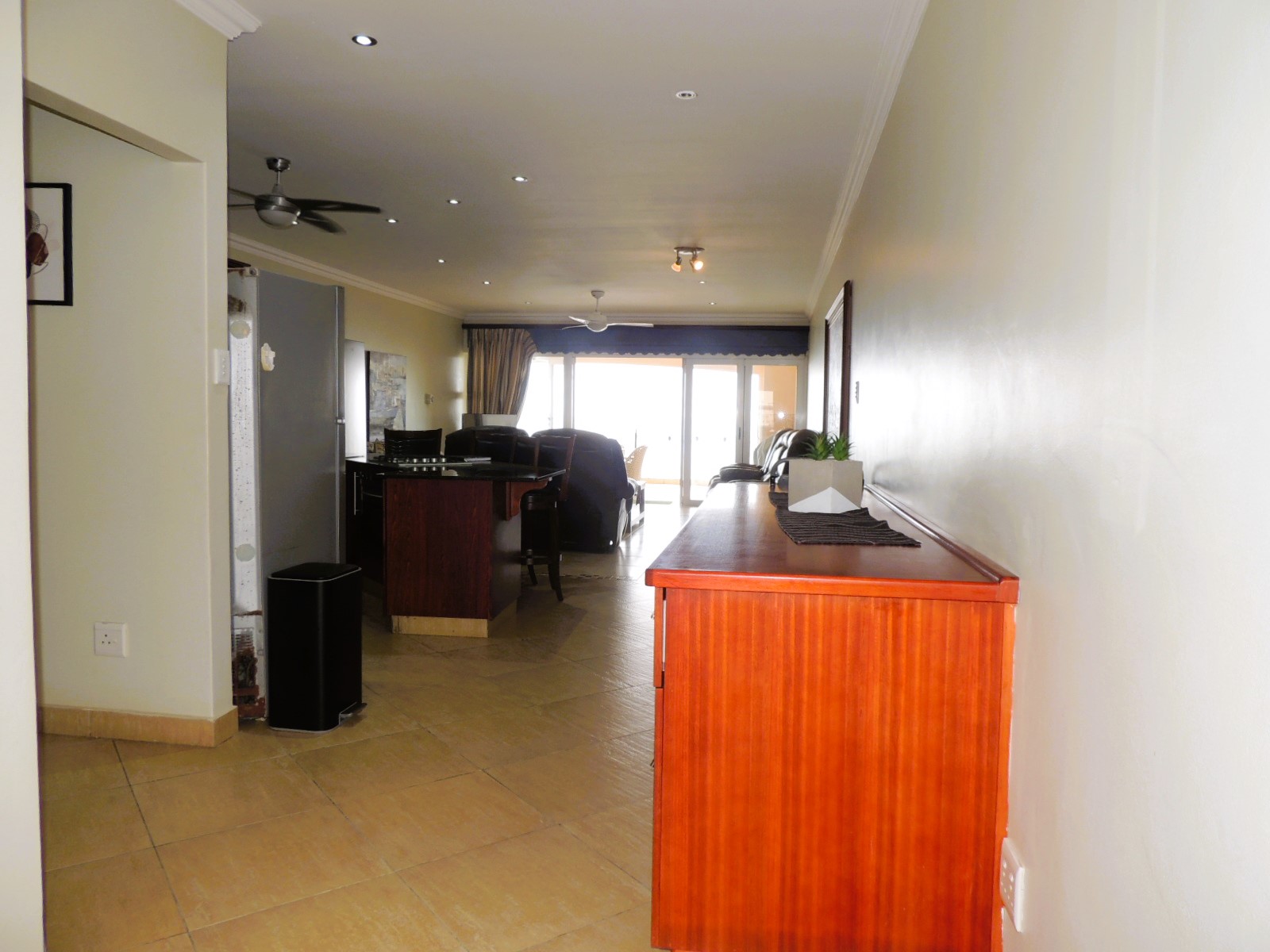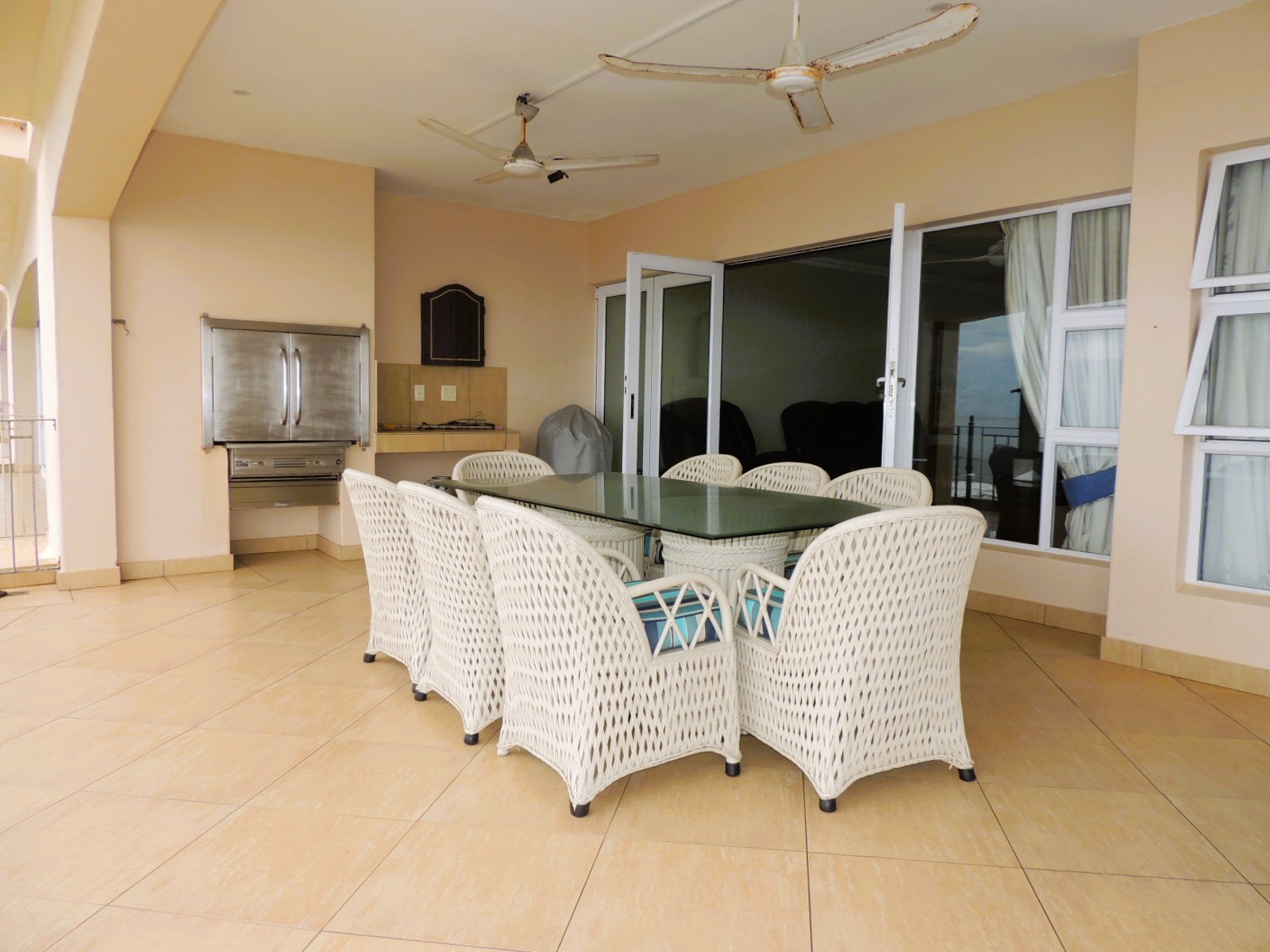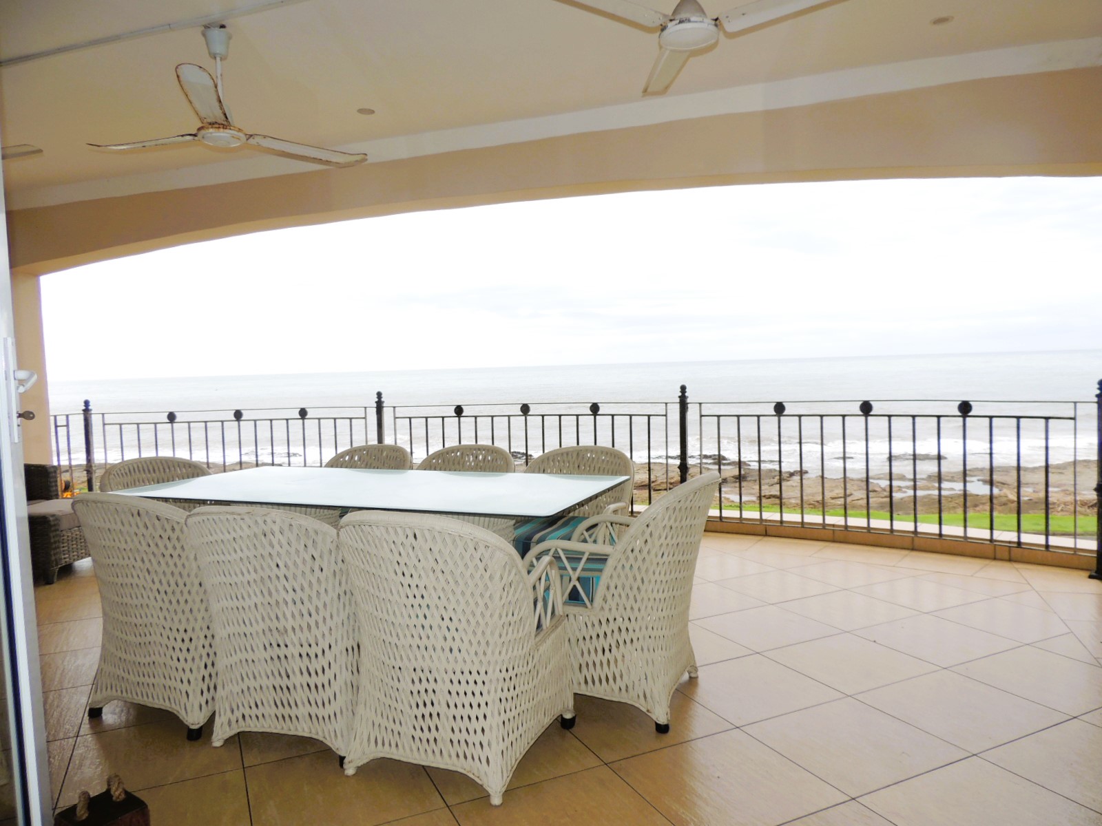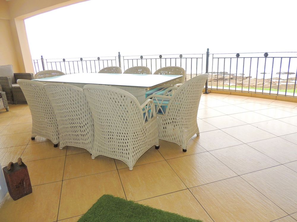This stunning beachfront apartment, just a short walk from the renowned Uvongo Beach and conveniently close to essential amenities, presents an exceptional opportunity for buyers seeking luxury and comfort away from home. Designed with elegance and functionality in mind, the apartment features a spacious open-plan kitchen, crafted from solid wood with granite countertops and a generous breakfast nook. The adjoining lounge seamlessly extends through large stacker doors onto a vast undercover balcony, equipped with both a built-in gas braai and a fire braai—perfect for outdoor entertaining. The breathtaking sea views from the balcony are truly unparalleled. The apartment boasts three generously sized bedrooms, each fitted with air conditioning, ceiling fans, and built-in cupboards. Both the guest bathroom and the main en-suite bathroom include a shower and a bath, ensuring convenience and comfort. The main bedroom also opens onto the expansive patio through stacker doors, offering spectacular ocean views right from your bed. Additional features include a 5kVA backup power system, aluminum windows throughout, and a secure lock-up garage. The complex further enhances your coastal lifestyle with a large communal swimming pool, ideal for cooling off on warm days when you prefer not to head to the beach. This exquisite apartment is being sold fully furnished, making it a turnkey investment opportunity for discerning buyers. Don't miss out on this exceptional property—contact me today for an exclusive viewing!