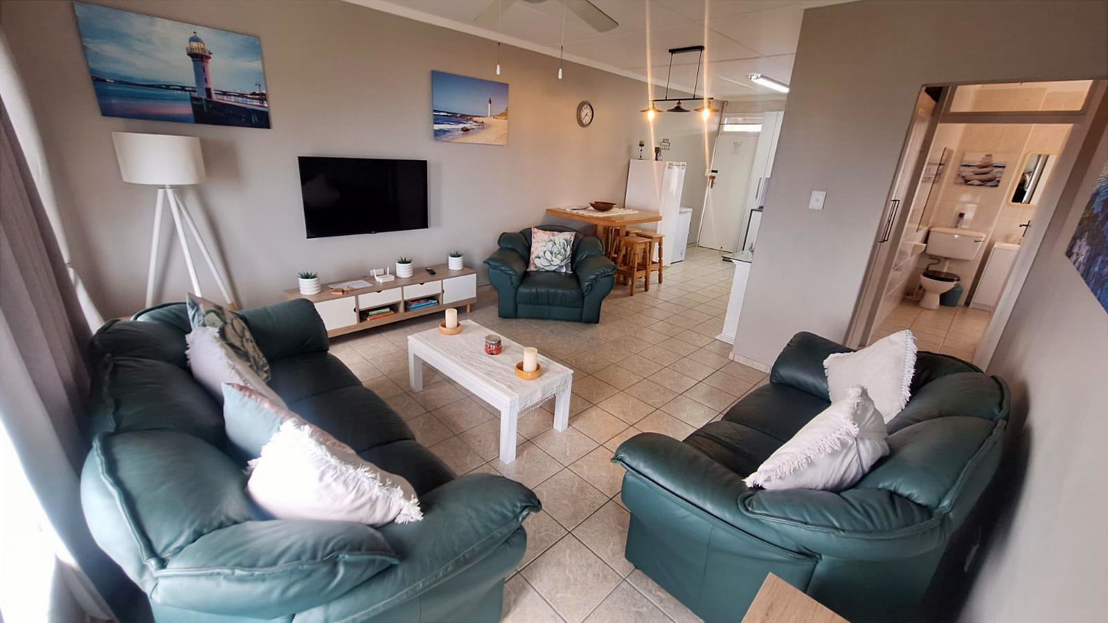 A Modern 2-Bedroom Apartment with Stunning Sea Views and Walking Distance to Uvongo Pier & Beach Situated just a short stroll from the ever-popular Uvongo Pier and beach, this well-maintained apartment block offers the ideal investment opportunity for holiday letting or coastal living. This beautifully presented unit features a spacious, modern open-plan layout. The kitchen boasts quarts countertops, dining area which flows seamlessly into the inviting lounge area. The apartment offers 2 well-sized bedrooms and 1 full bathrooms. The family bathroom includes a bath and a shower for added convenience. Relax and unwind while enjoying breathtaking sea views from the main bedroom and the lounge, or step out onto the private balcony – perfect for sundowners and soaking in the coastal atmosphere. The Apartment is sold fully furnished. Additional features include: Undercover parking Backup water supply Communal braai facilities Secure, well-kept complex This is a must-see property in one of Uvongo’ s most sought-after locations. Don’t delay – contact me today to arrange a viewing.