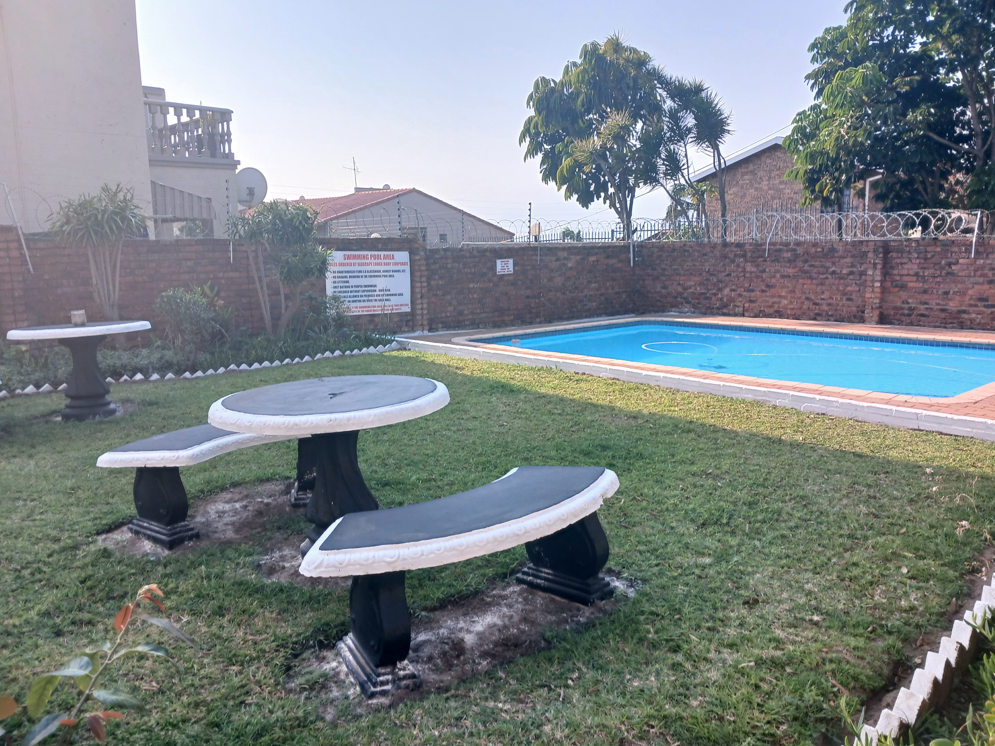 Step into the perfect holiday investment with this charming ground floor apartment, ideally situated just a leisurely stroll from the iconic Uvongo Main Beach and all the vibrant local amenities. Whether you are seeking a personal retreat or a high-yield rental opportunity, this semi-furnished unit offers both comfort and convenience. Enjoy a well-appointed kitchen featuring a cozy breakfast nook and laundry setup, while the modern bathroom includes a shower, basin, and toilet. The adaptable lounge area currently serves as a second bedroom with bunk beds, offering flexible living arrangements. The spacious main bedroom easily accommodates a queen-size bed and includes built-in cupboards, plus direct access to a private back patio. This outdoor space leads to communal braai areas—perfect for unwinding with friends and family. The complex boasts practical features like water tanks, a sparkling swimming pool, and generous parking options, including undercover bays and extra space for visitors and trailers. With its unbeatable location and income-generating potential through holiday letting, this apartment is a standout investment. Call today to view