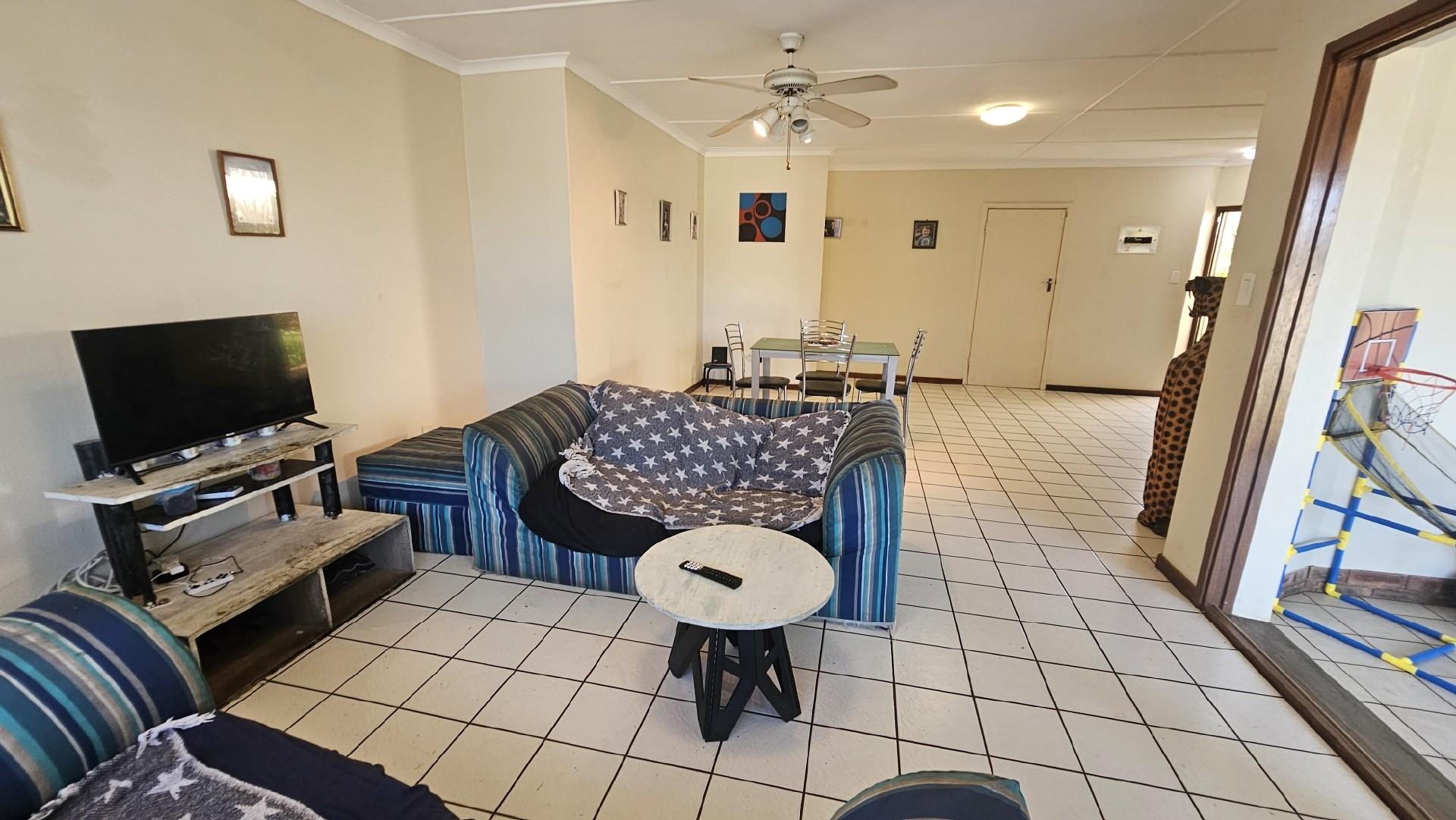 Tucked away at one end of the complex this private haven offers tranquillity and a true sense of escape. As you step inside you are greeted by a spacious open plan design that seamlessly blends comfort and functionality. To your left a well appointed kitchen boasts generous storage and counter space along with a convenient serving hatch that opens onto the patio making it ideal for effortless entertaining. On your right a thoughtfully designed dining area provides the perfect backdrop for intimate family dinners or lively gatherings with friends. This space flows naturally into the open plan lounge where large sliding doors open out onto a covered patio area with built in braai which creates an inviting setting for year round entertainment.