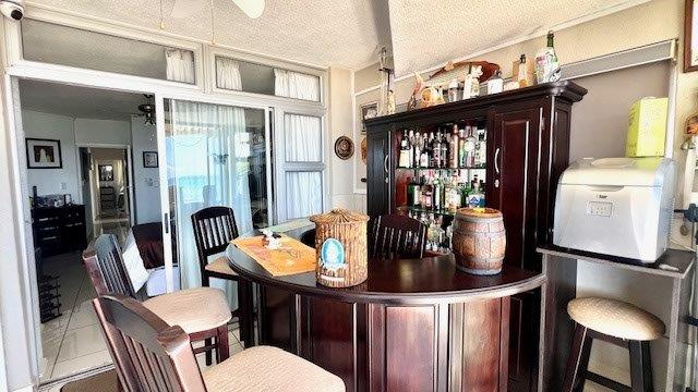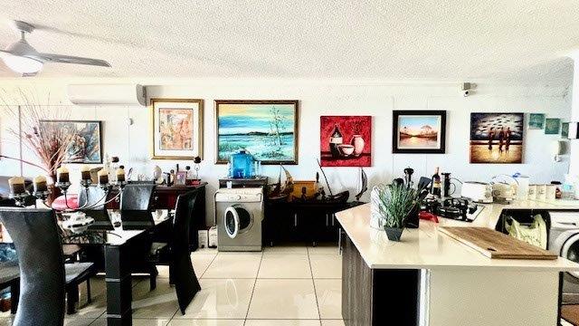 This stylish apartment boasts beautiful porcelain tiles throughout the unit, when you walk through the door there is a well designed kitchen equipped for any chef, ample cupboard space, gas hob, granite tops with a breakfast counter, this leads into the spacious dining and lounge area, equipped with ceiling fans and air-conditioner. From this area there is sliding doors leading out onto a spacious covered balcony with the most breathtaking sea-views, the balcony has a built-in braai.