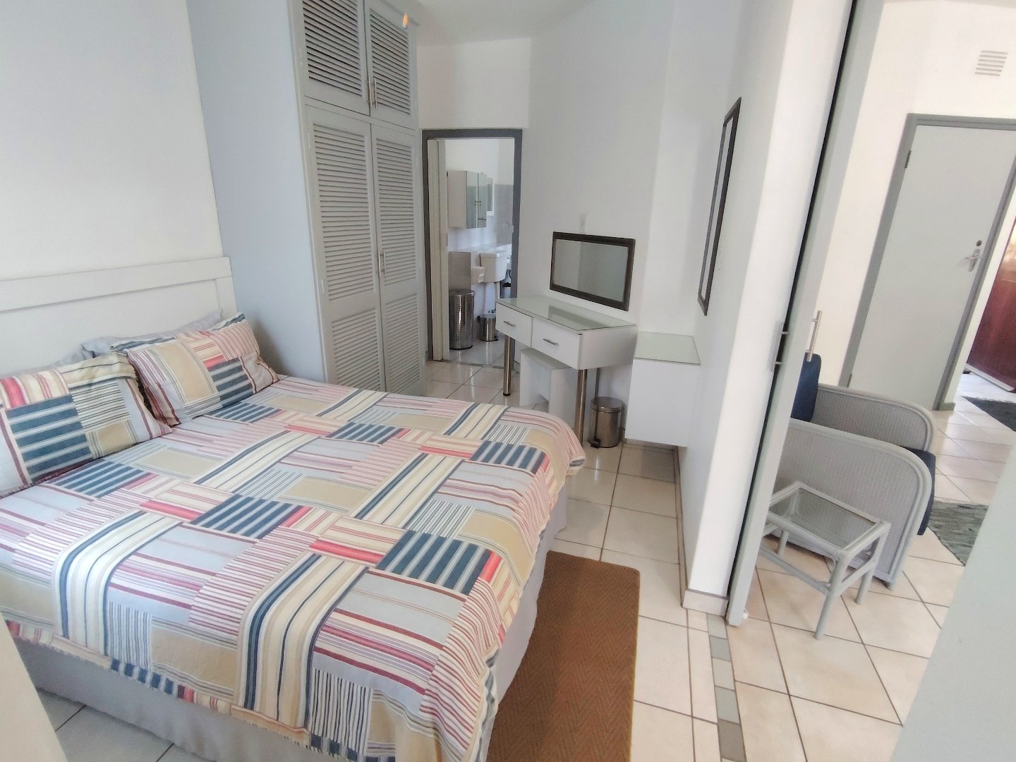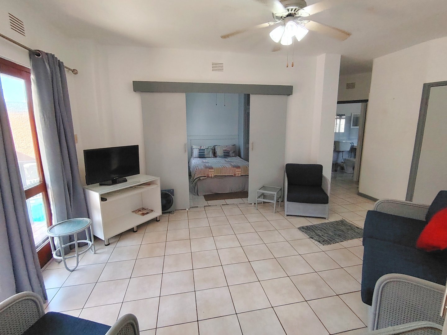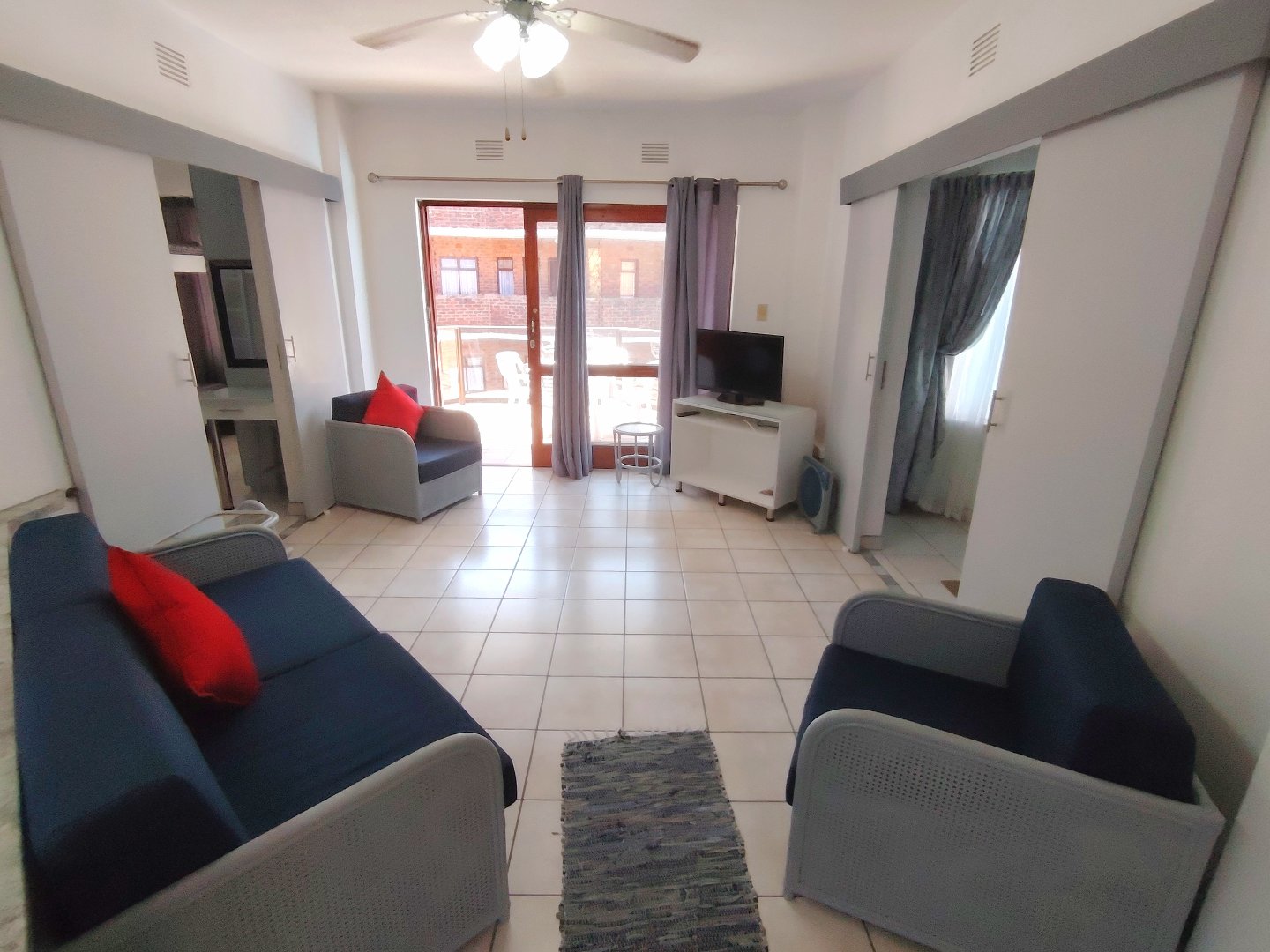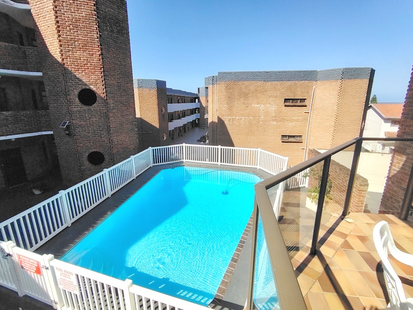 Take a walk through this fully furnished property. The complex is situated in a cul-de-sac and is walking distance to Uvongo Beach. Two parking bays underneath the property, security gate to the entrance of each staircase - walk up to the first floor. When entering the unit, the kitchen with granite tops is to the left and to the right the spacious lounge - flows out onto the balcony with a braai - overlooking the common property swimming pool. Moving back to the lounge, the main bedroom is to the right - with a double bed and built in cupboards, the interleading bathroom (bath) is directly next to the main bedroom and another bathroom (shower and toilet) is situated conveniently closer to the lounge. The second bedroom consists of two bunker single beds and the room is spacious, should you want to remove that and place another double bed in the room. This unit is ideal for holiday letting and or permanent living.
