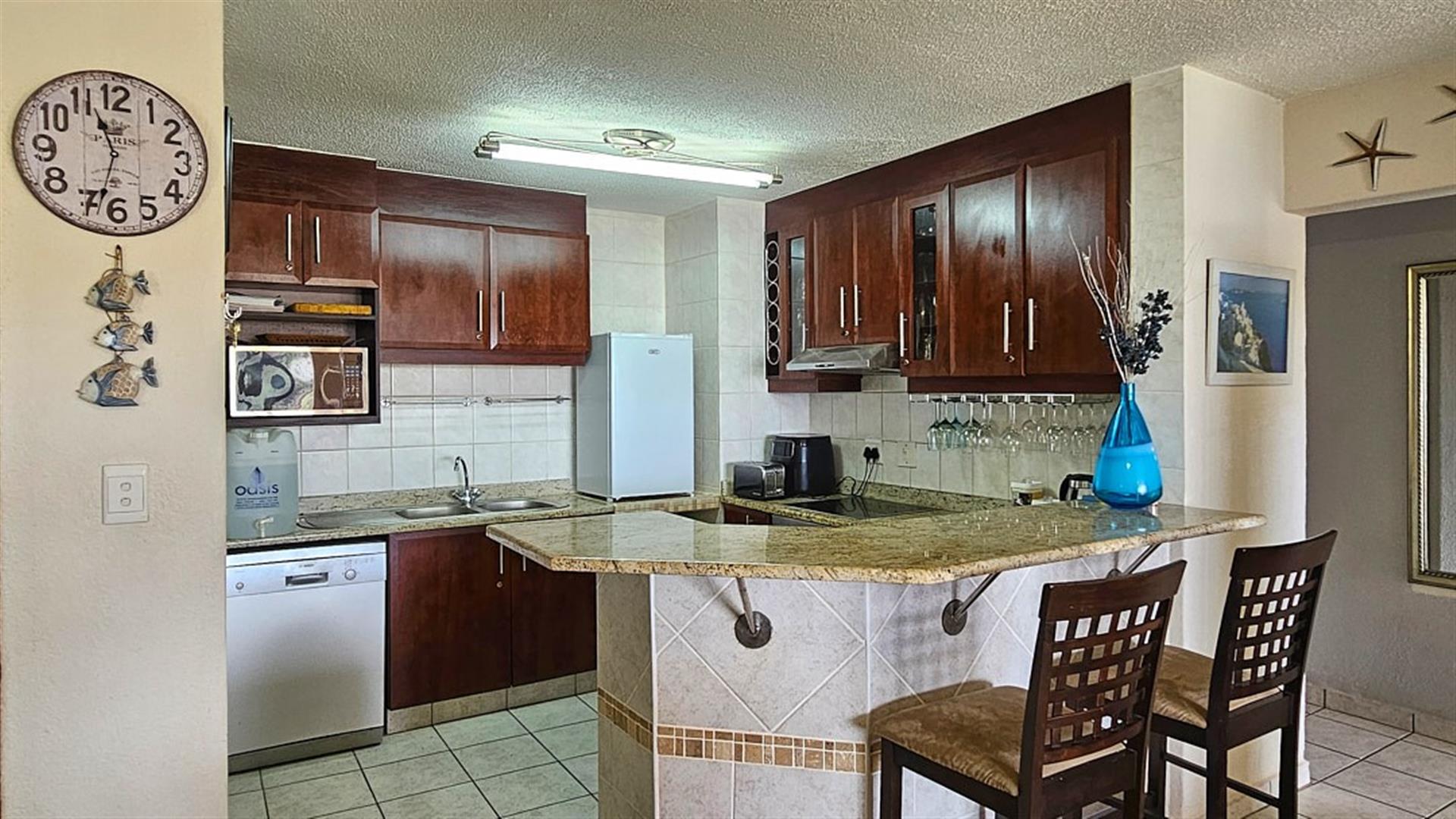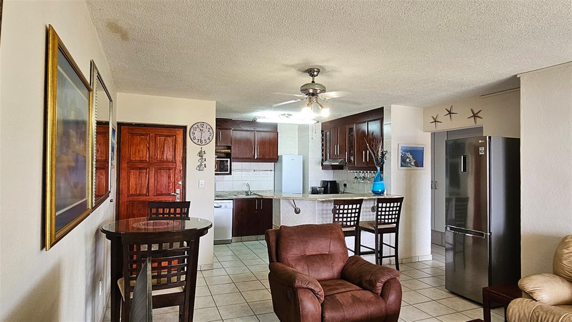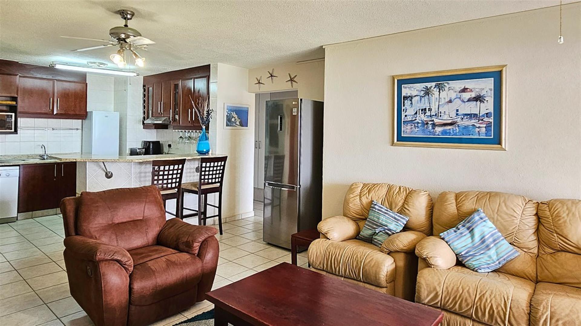 The JACKPOT!! INVESSTMENT GALORE! This apartment is pristine and in tip-top BEACH FRONT, SUPREME condition. From the moment you enter the apartment, one is aware of the luxury, light and THE BEACH. The kitchen is modern with lots of cupboard space and lovely, granite counter tops with an elevated, granite dining nook. The easy flow leads you through the open plan lounge area o the double patio with exquisite sea views. Beach...Ocean...RIGHT ON YOUR DOORSTEP!! Once you open the sliding doors to the patio, you invite the whole of the ocean right into your home. The whole of the Uvongo beach lies there for you to admire and enjoy. The furniture is elegant, luxurious AND INCLUDED in the sale. Quality furniture both inside and on the patio. Light and airy the open plan dining room/ lounge is spacious and tranquil, welcoming you to have the most wonderous time here.