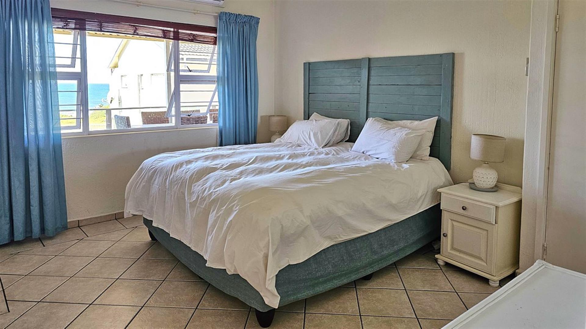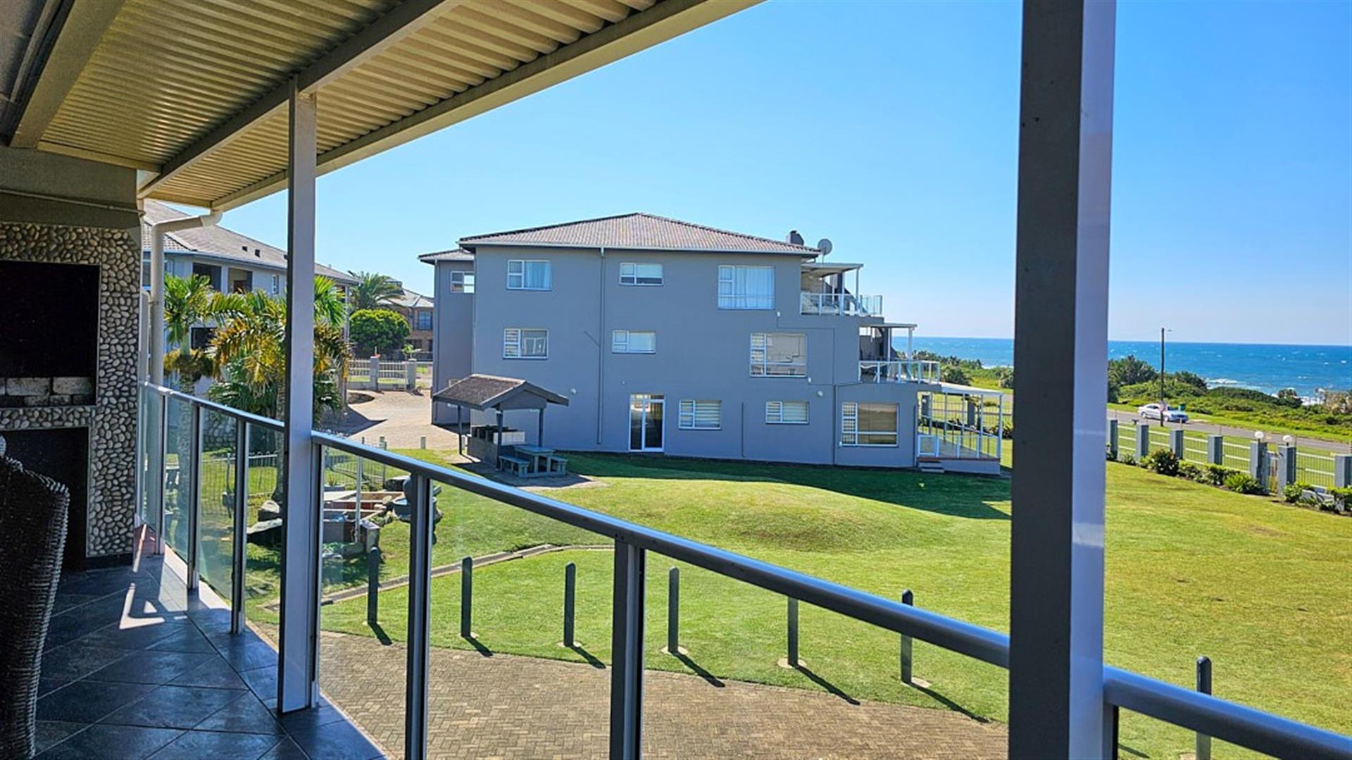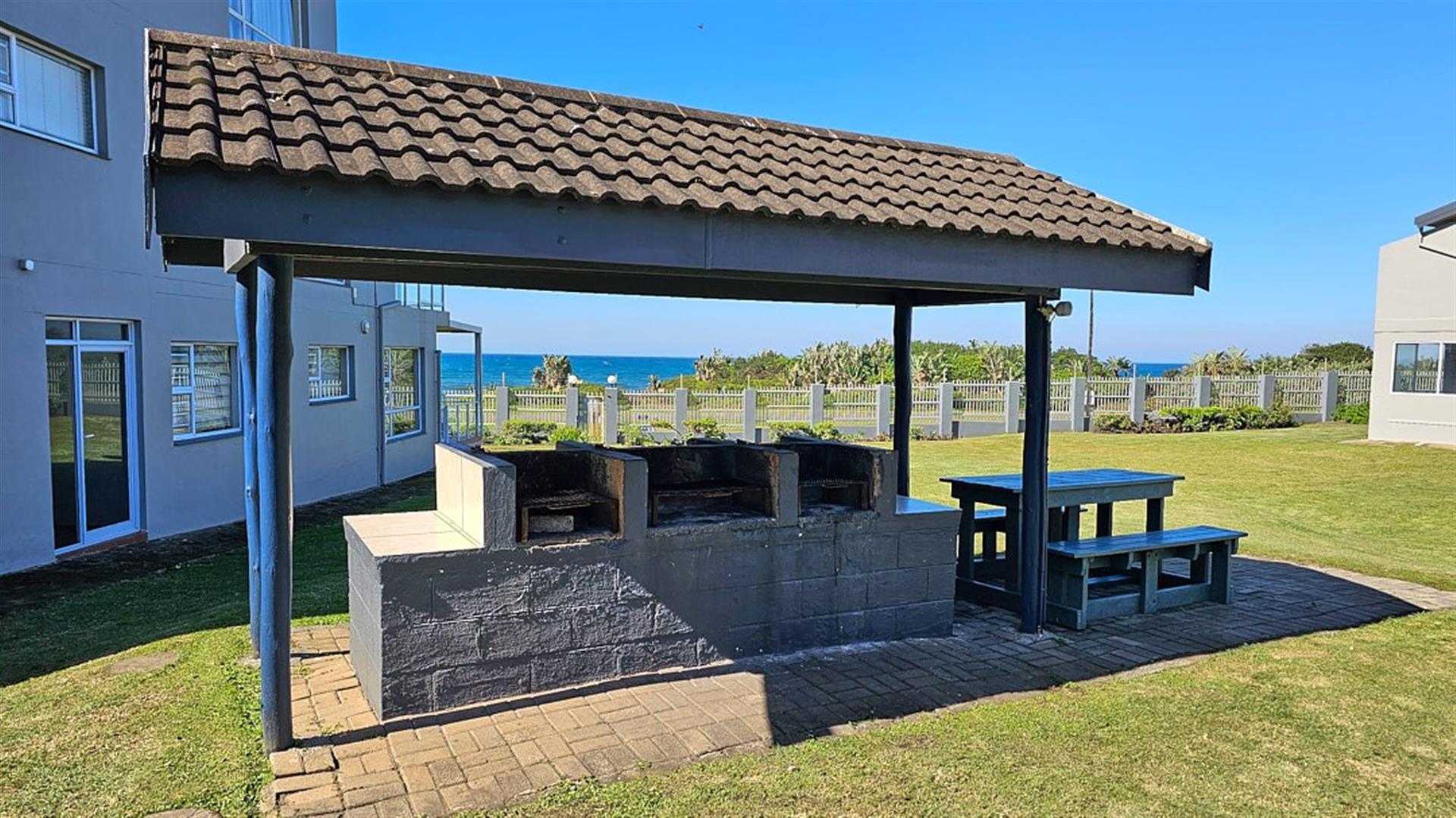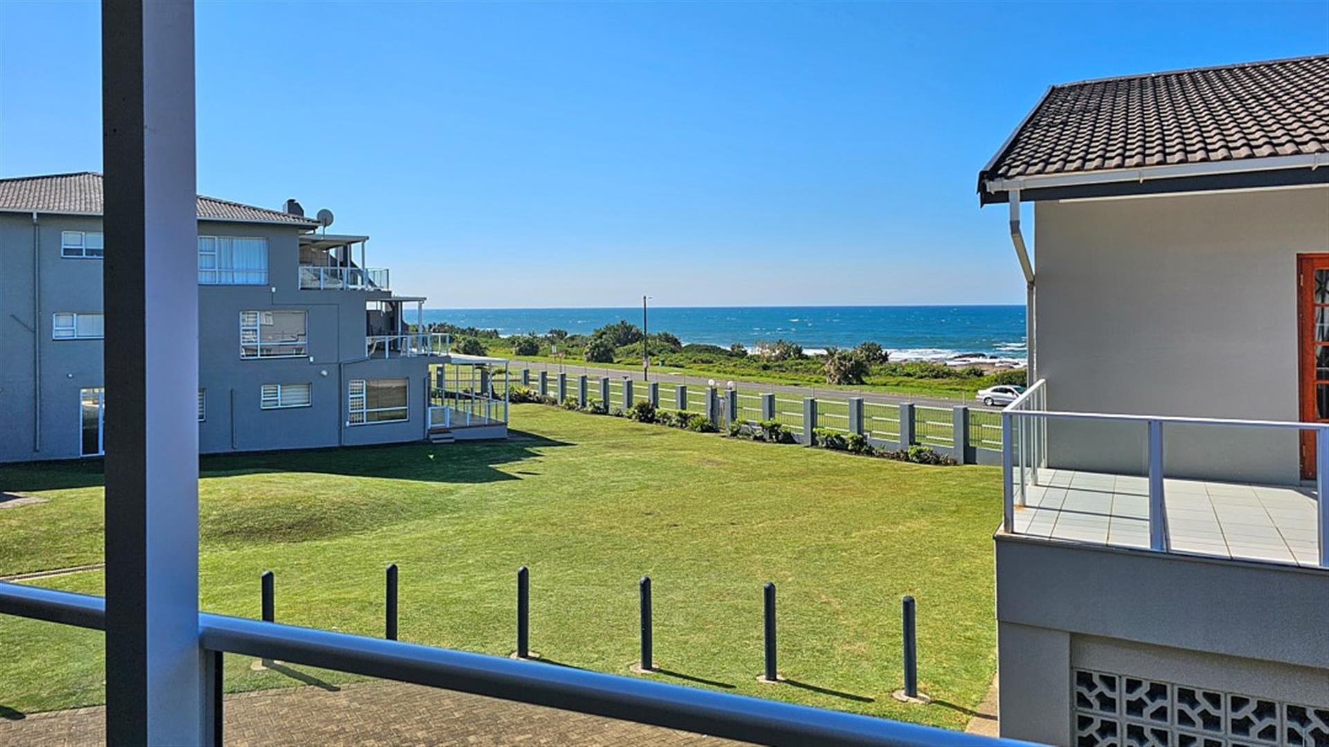 INVESTMENT BEACH Apartment JACKPOT!! AND PET FRIENDLY TOO! As you enter the PRISTINE, LIGHT open plan living/ dining/ kitchen area the intensity of the ocean takes your breath away. SEA VIEWS TO DIE FOR.....AND MORE SEA VIEWS TO LIVE FOR!!! Absolute BEACH BLISS! The apartment oozes a holiday vibe that is hard to find. Professionally decorated with quality furniture, the blue and white theme accentuates the closeness of the ocean. Filled with natural ight, the lounge area opens to an absolutely HUGE balcony, from where you can admire the ocean all day and night long. The florescent white of the waves will keep you enthralled as you relax before bedtime on the balcony. This balcony is a perfect entertainment area when you have friends over, with a built in REAL braai... what a bonus indeed!! The kitchen is spacious and light, shimmering white with same said, stunning sea views. It has all the appliances that you could possibly need. Beautiful!
