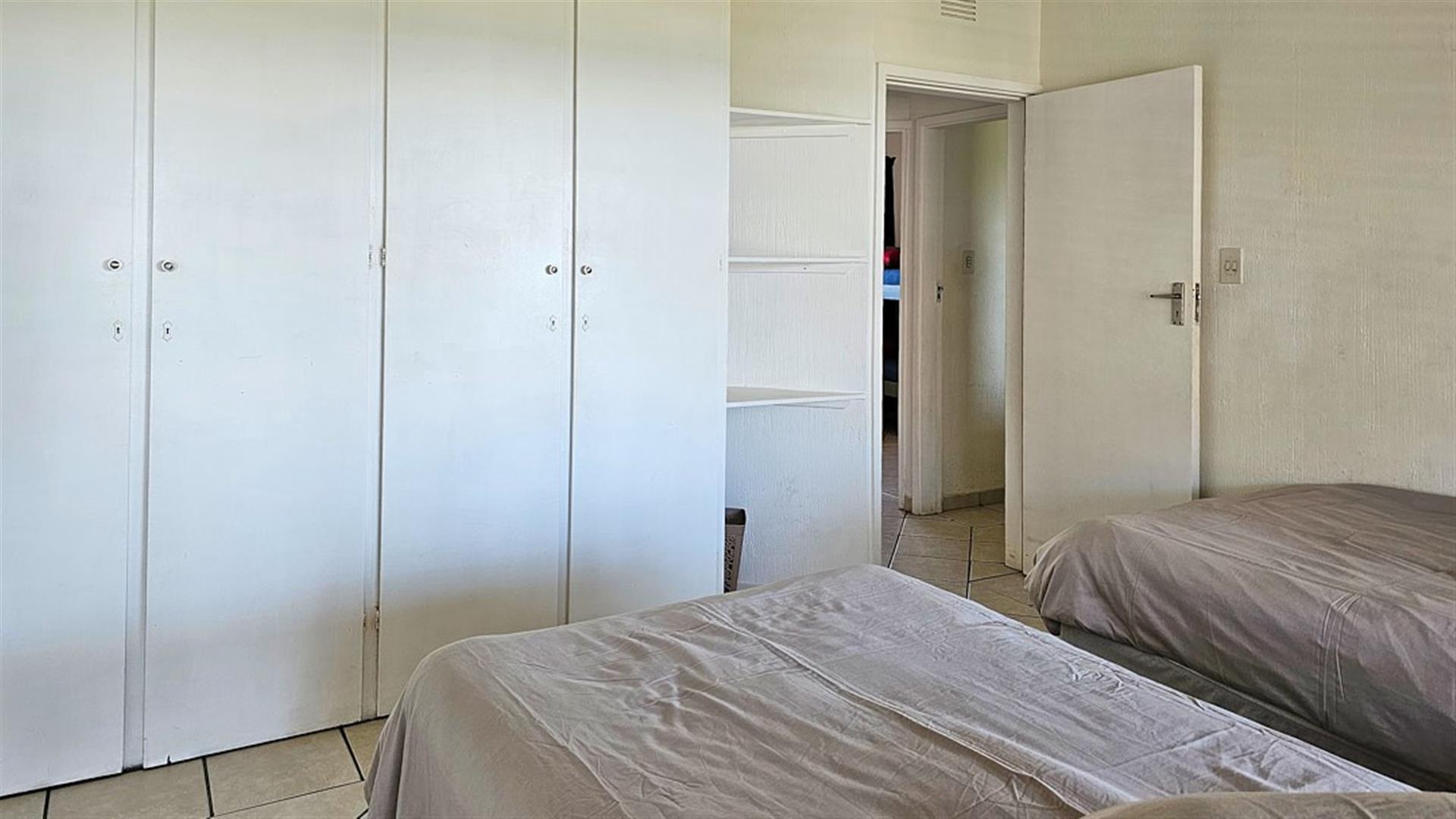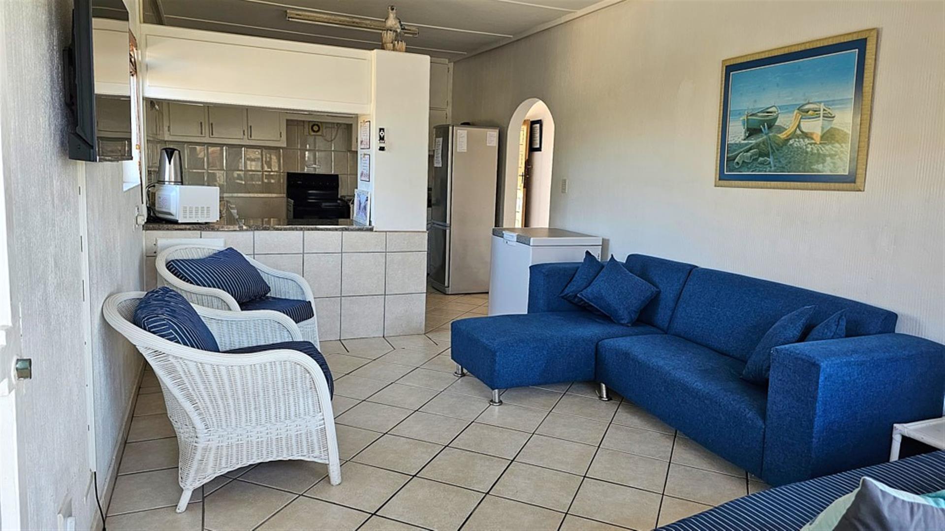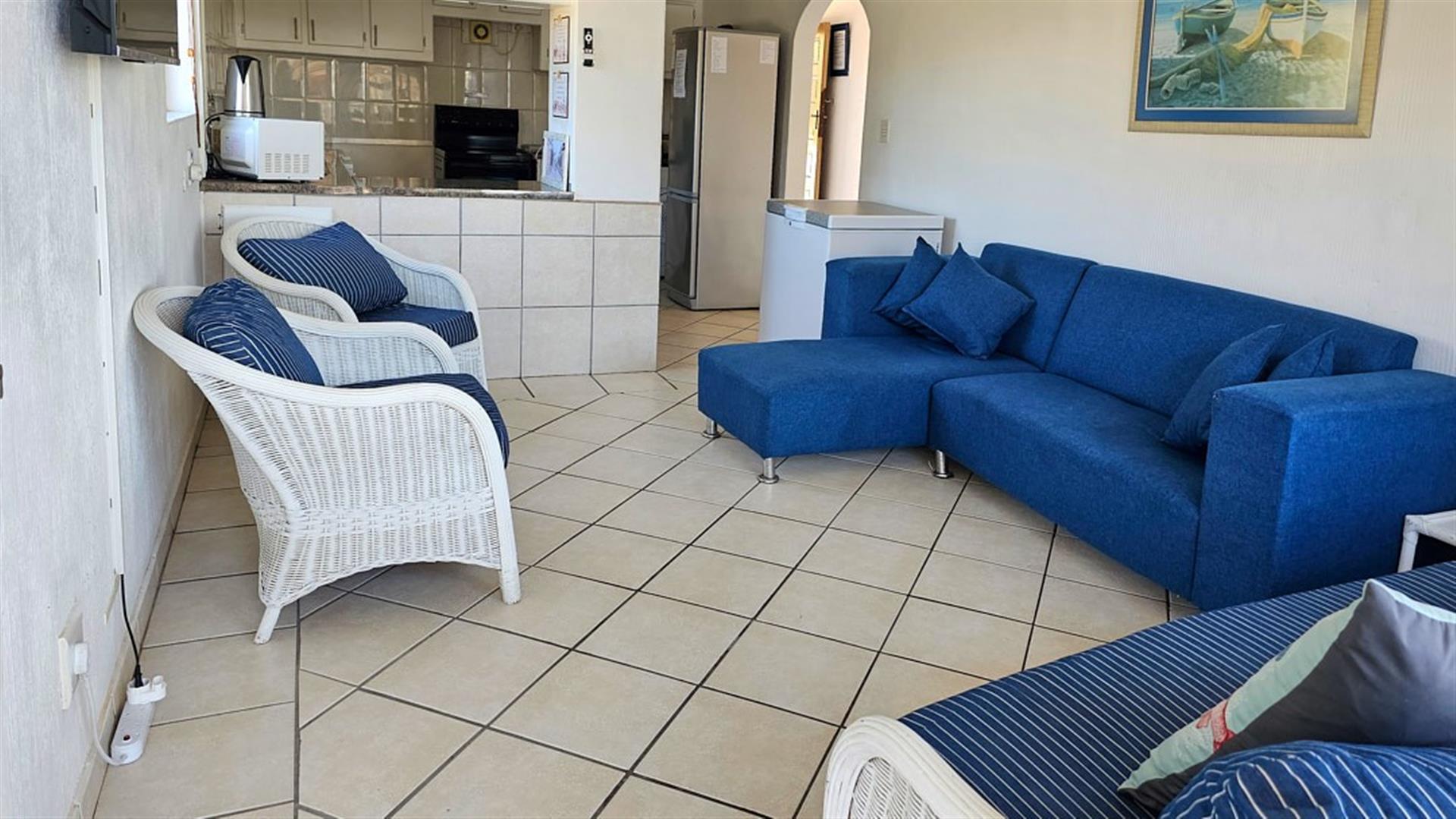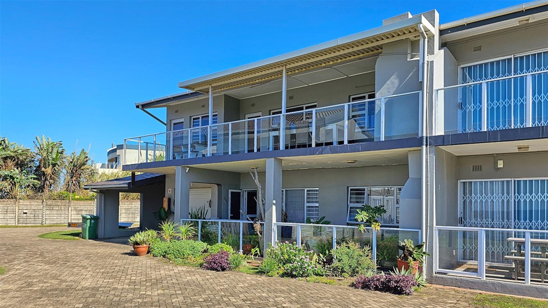 INVESTMENT BEACH Apartment JACKPOT!! AND PET FRIENDLY TOO! As you enter the PRISTINE, LIGHT open plan living/ dining/ kitchen area the intensity of the ocean takes your breath away. SEA VIEWS TO DIE FOR.....AND MORE SEA VIEWS TO LIVE FOR!!! Absolute BEACH BLISS! The apartment oozes a holiday vibe that is hard to find. Professionally decorated with quality furniture, the blue and white theme accentuates the closeness of the ocean. Filled with natural ight, the lounge area opens to an absolutely HUGE balcony, from where you can admire the ocean all day and night long. The florescent white of the waves will keep you enthralled as you relax before bedtime on the balcony. This balcony is a perfect entertainment area when you have friends over, with a built in REAL braai... what a bonus indeed!! The kitchen is spacious and light, shimmering white with same said, stunning sea views. It has all the appliances that you could possibly need. Beautiful!