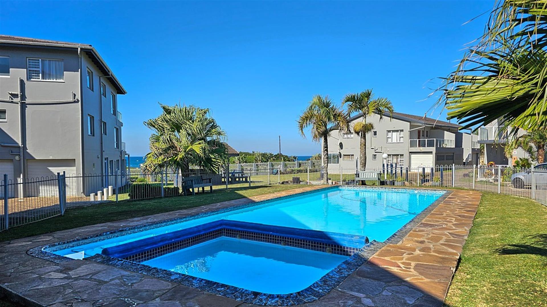 The apartment is private and in a much sought after complex on the famous Lilliecrona Boulevard, well maintained. The PERFECT LOCATION.... "ON" the ocean, yet close to all amenities. This makes it an incredibly good investment for holiday rentals. It is on the 1st floor with a wide, "friendly" staircase. There is a shimmering , blue, communal pool and braai area. The apartment comes with a parking space with plenty of parking for visitors. This apartment will bring you great joy as a holiday home, and even greater joy as a permanent home. MAKE IT HAPPEN!! Give me a call...