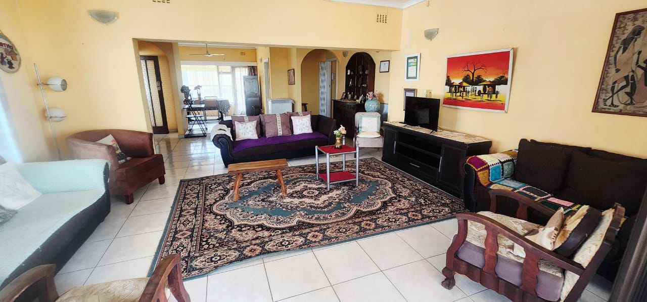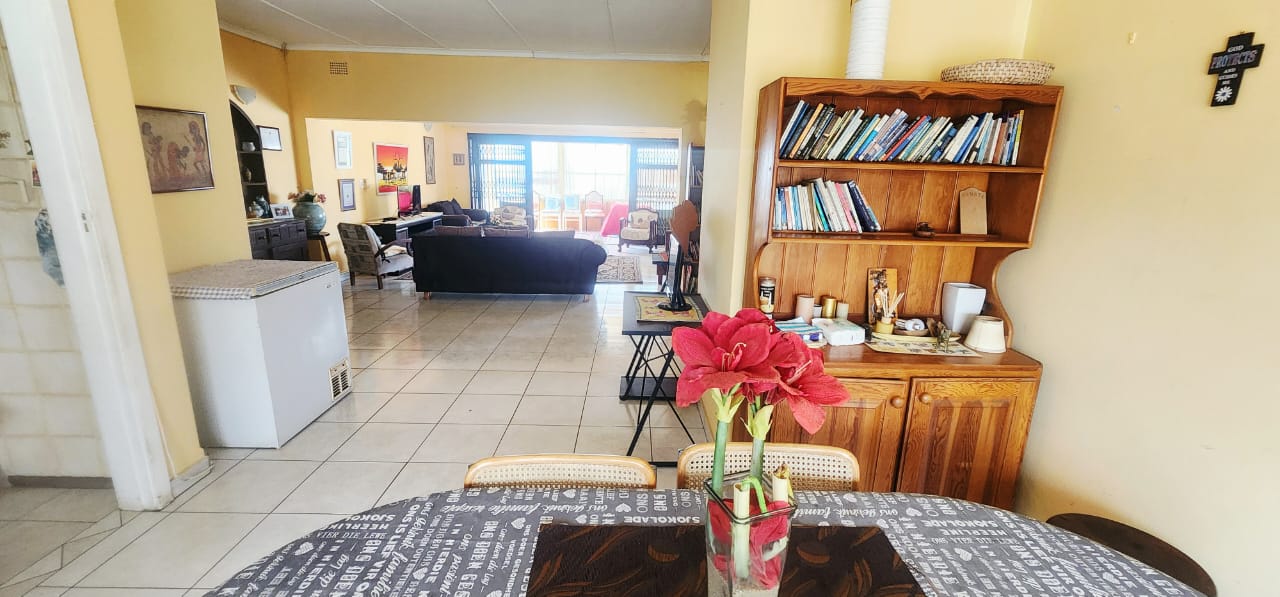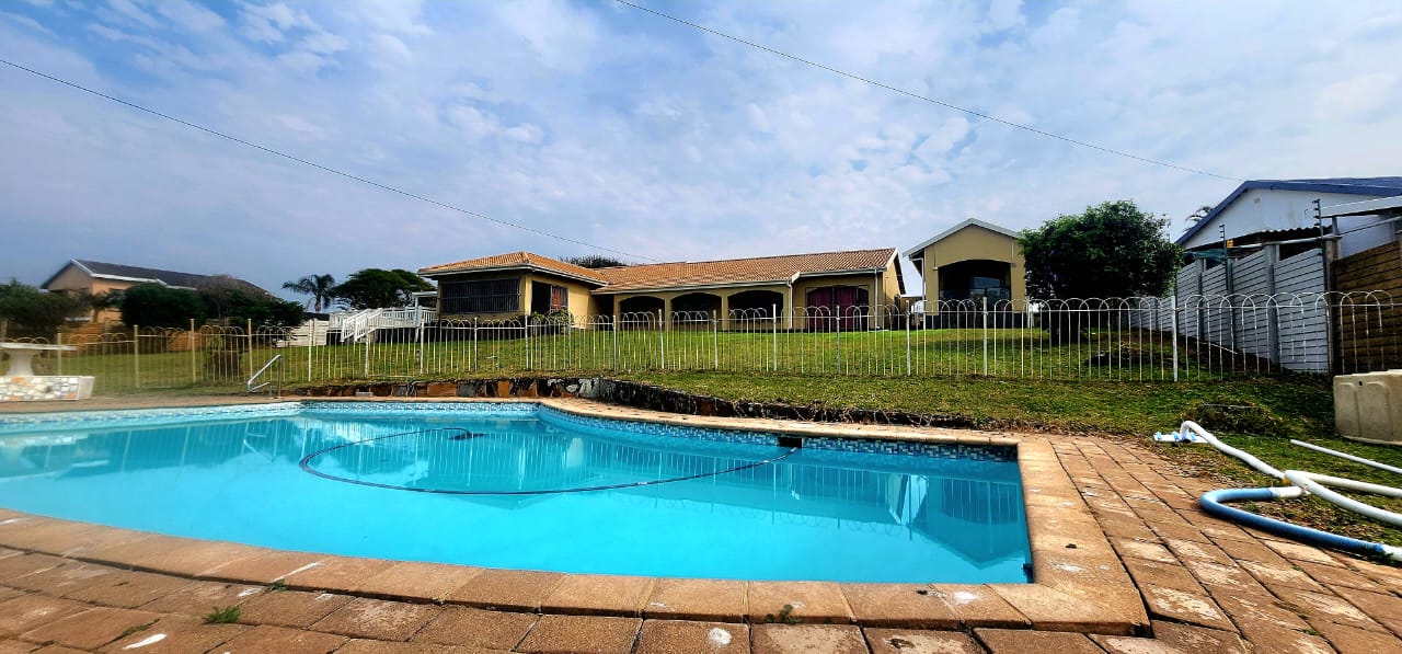 Boasting a lovely ocean view and set in a serene area of Uvongo, a short drive to Shelly Beach Malls, the local supermarket just down the road and the magical Uvongo Beach. The home is on a large portion of land with plenty of lawned areas flowing down to the large fenced swimming pool. The main home consists of 4 bedrooms (2 ensuite bathrooms) plus a family bathroom. The one ensuite bedroom has a separate entrance off the large covered entertainment patio with a built-in braai and lovely ocean view. The living area is open plan and consists of a large lounge and dining area (plenty of space for a home office) and these flow to the enclosed patio (sunroom) The kitchen is separate and has plenty of cupboard and counter space. Completely separate from the main home is a cottage with a covered patio (ocean view), open plan lounge and kitchenette, leading to the bedroom with an ensuite bathroom. There is a double garage and an additional bachelors flat attached to the main house (also perfect for a maids quarters) The property is fully walled, has electric fencing, alarm and a camera surveillance system ensuring your safety. Please contact us ANYTIME to chat further! Matriarch Real Estate powered by Mandated Property Group (Pty)Ltd