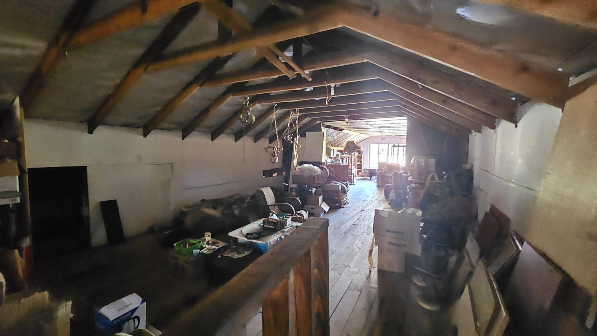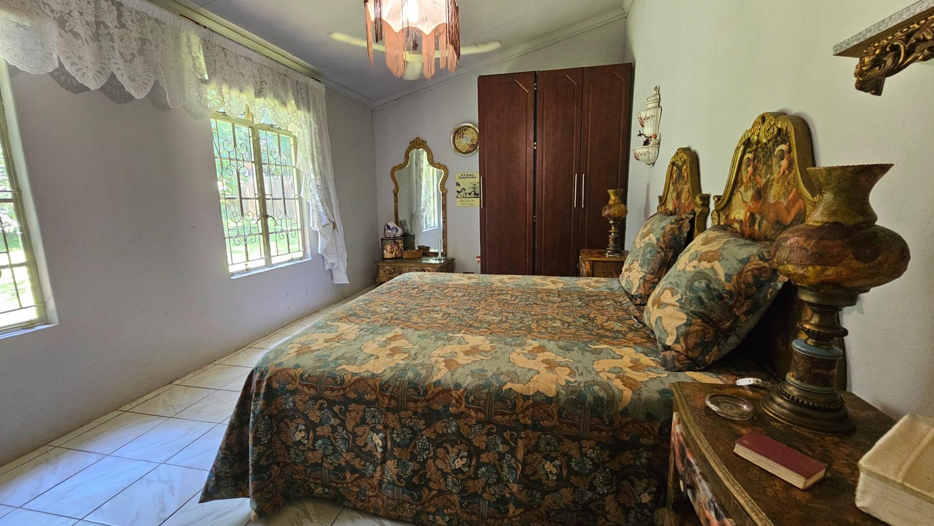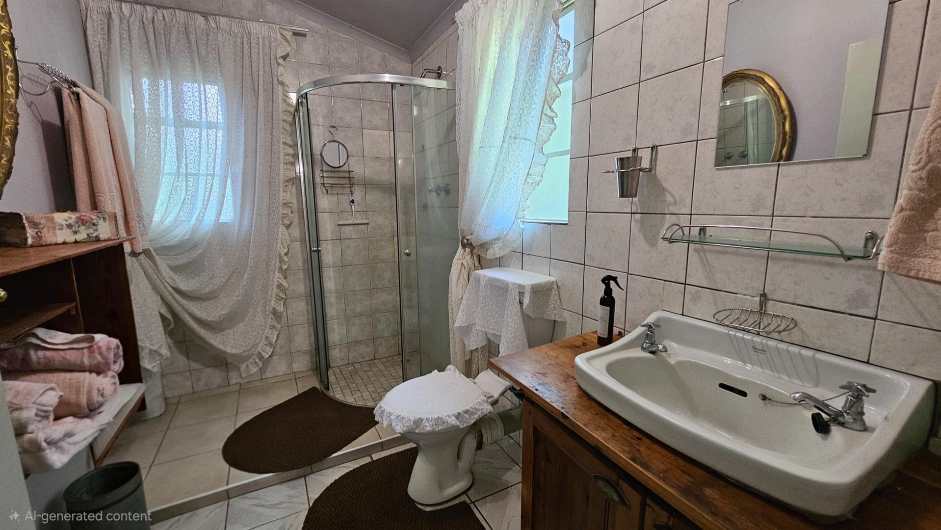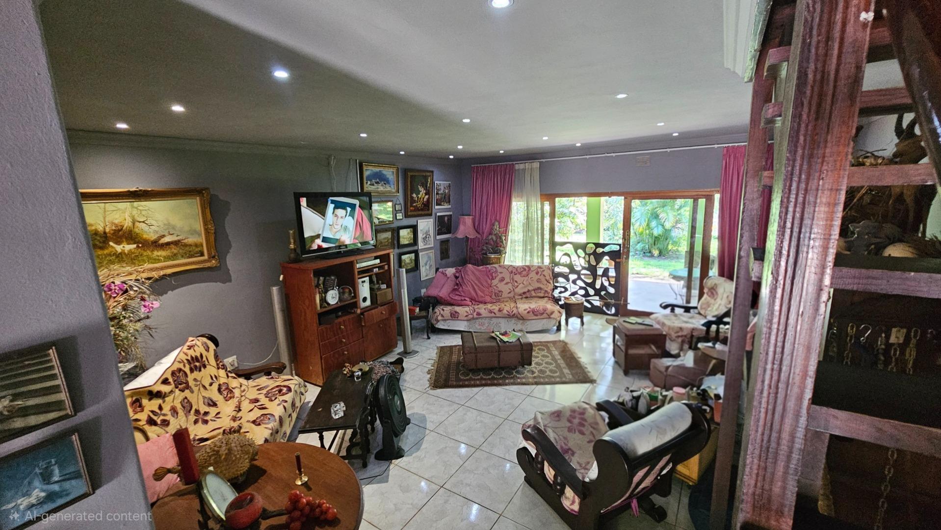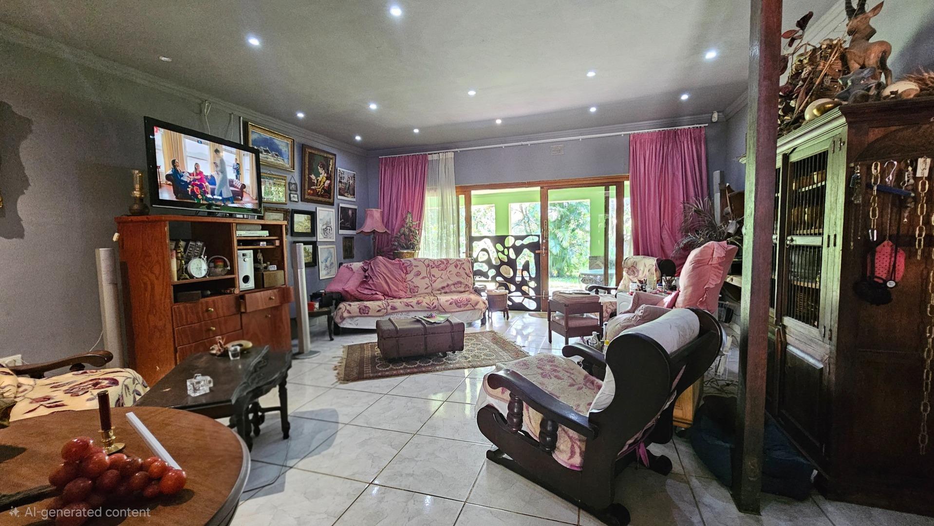 Set on a generous 8 921 m2 stand, this impressive farm-style property is surrounded by well-established gardens filled with mature trees, fruit trees, vegetable beds, and abundant greenery. You enter the home through a welcoming farmhouse kitchen that immediately showcases the size and character of the residence. This central living space offers extensive cupboard storage, a pantry, granite worktops, a prep basin, two under-counter ovens, a glass hob, and a large breakfast counter with seating for eight or more. There are connections for both a washing machine and dishwasher, and the garages provide direct access into the kitchen for added ease. The kitchen flows into a spacious dining room, where stairs lead to a flexible loft area ideal for storage, a home office, or an additional room.