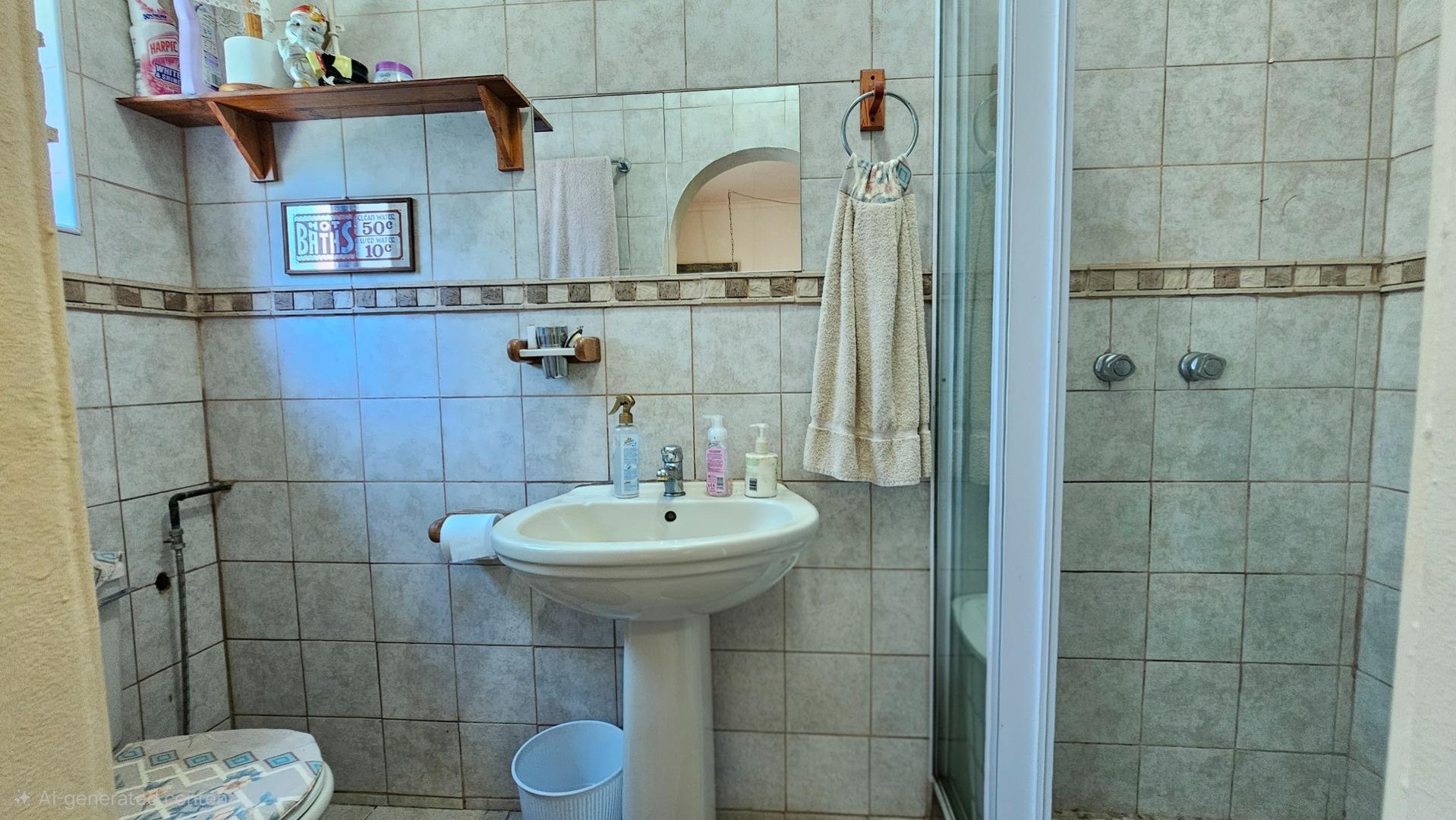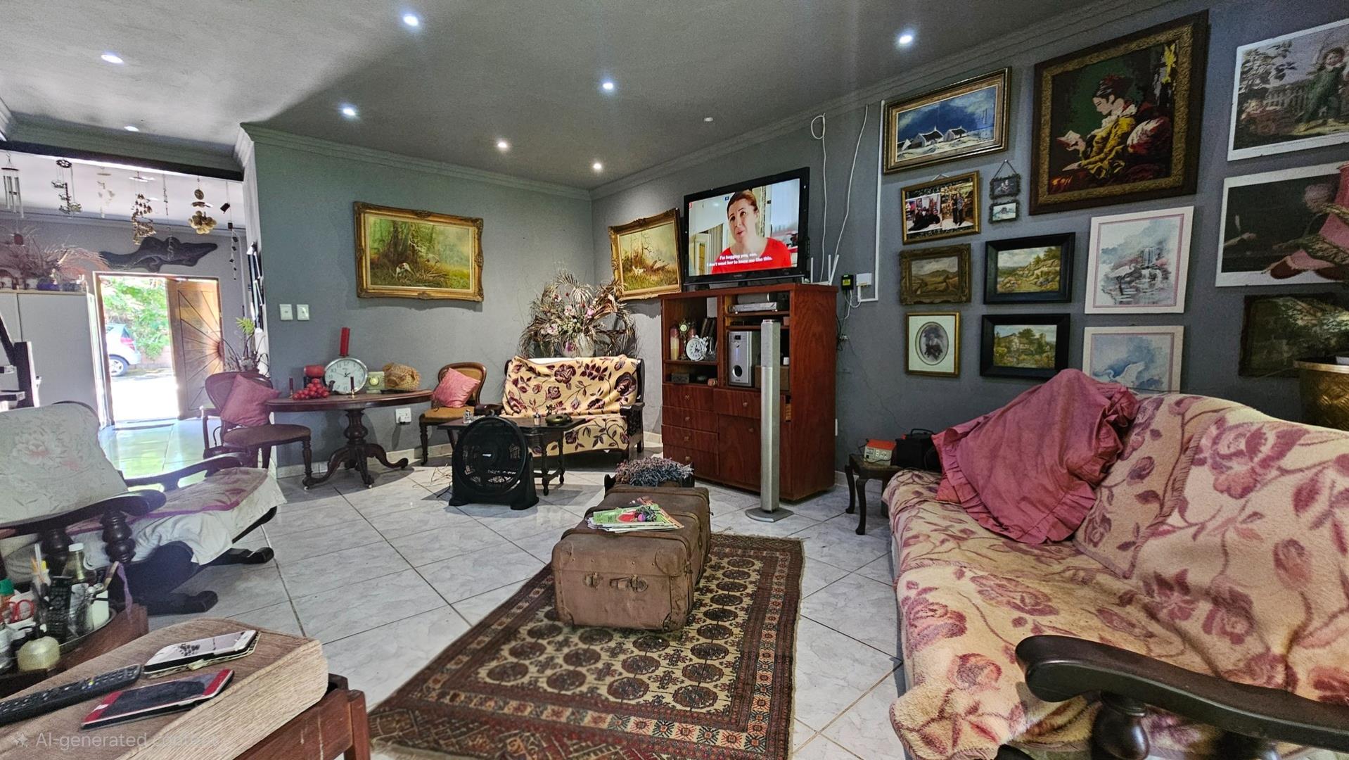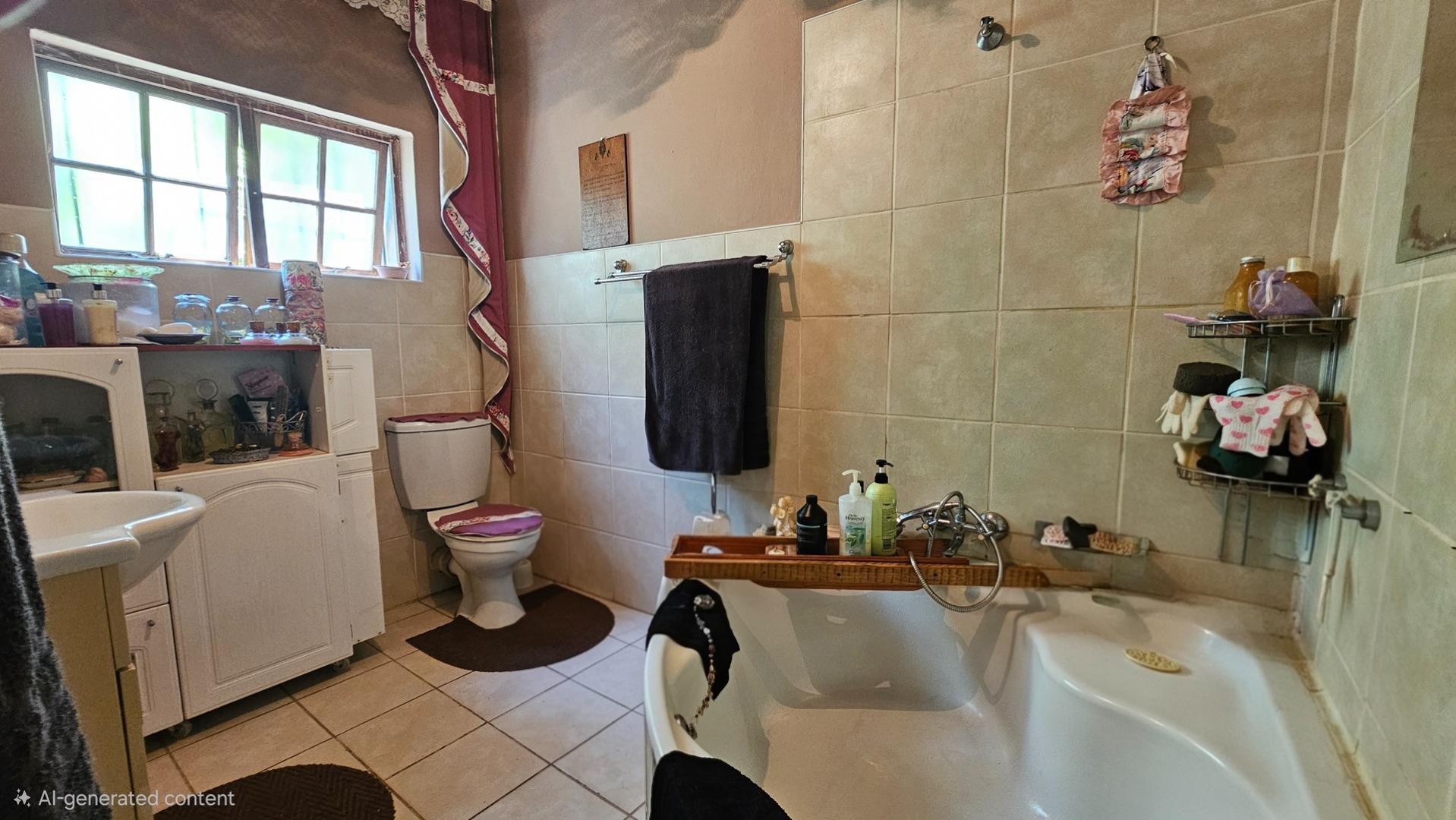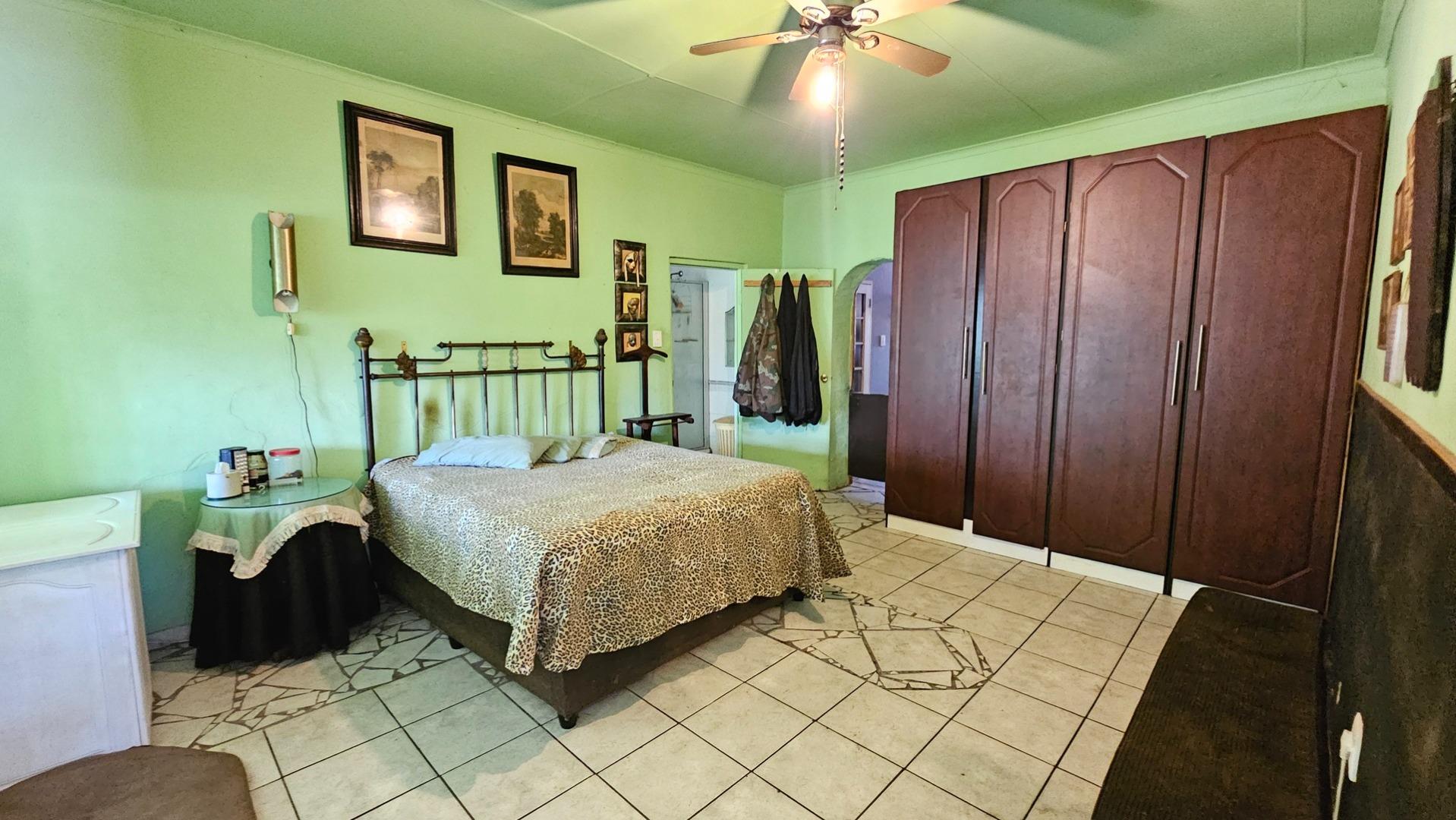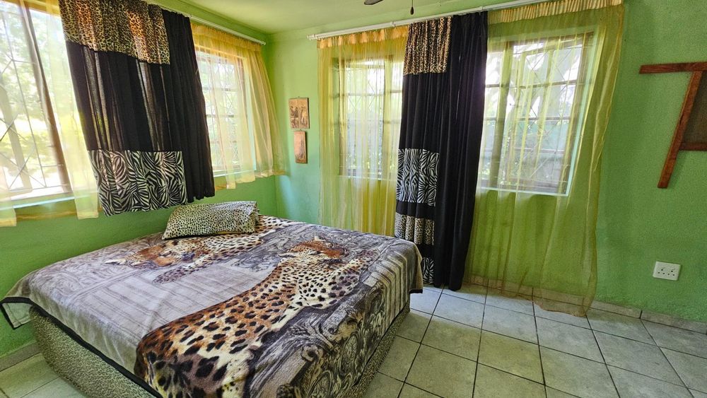 Set on a generous 8 921 m2 stand, this impressive farm-style property is surrounded by well-established gardens filled with mature trees, fruit trees, vegetable beds, and abundant greenery. You enter the home through a welcoming farmhouse kitchen that immediately showcases the size and character of the residence. This central living space offers extensive cupboard storage, a pantry, granite worktops, a prep basin, two under-counter ovens, a glass hob, and a large breakfast counter with seating for eight or more. There are connections for both a washing machine and dishwasher, and the garages provide direct access into the kitchen for added ease. The kitchen flows into a spacious dining room, where stairs lead to a flexible loft area ideal for storage, a home office, or an additional room.