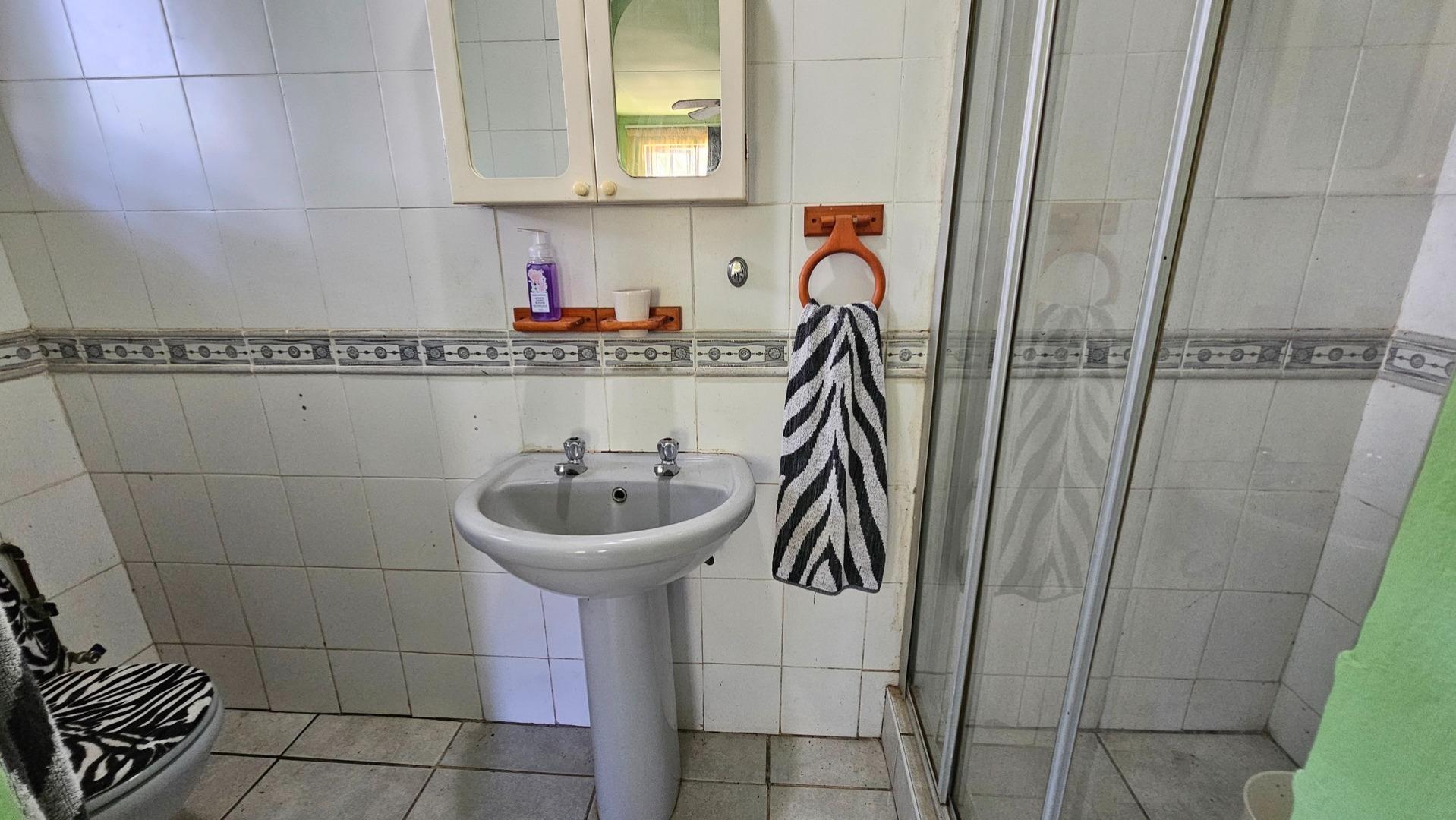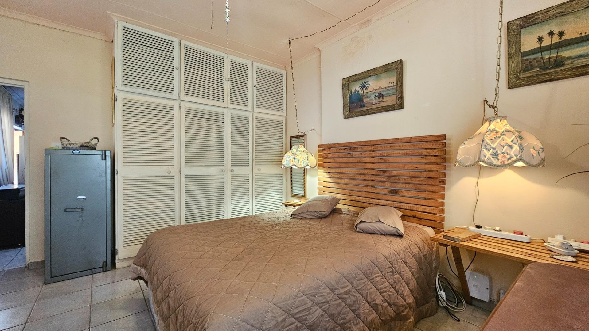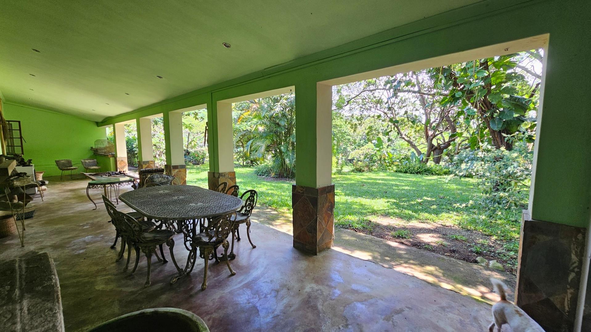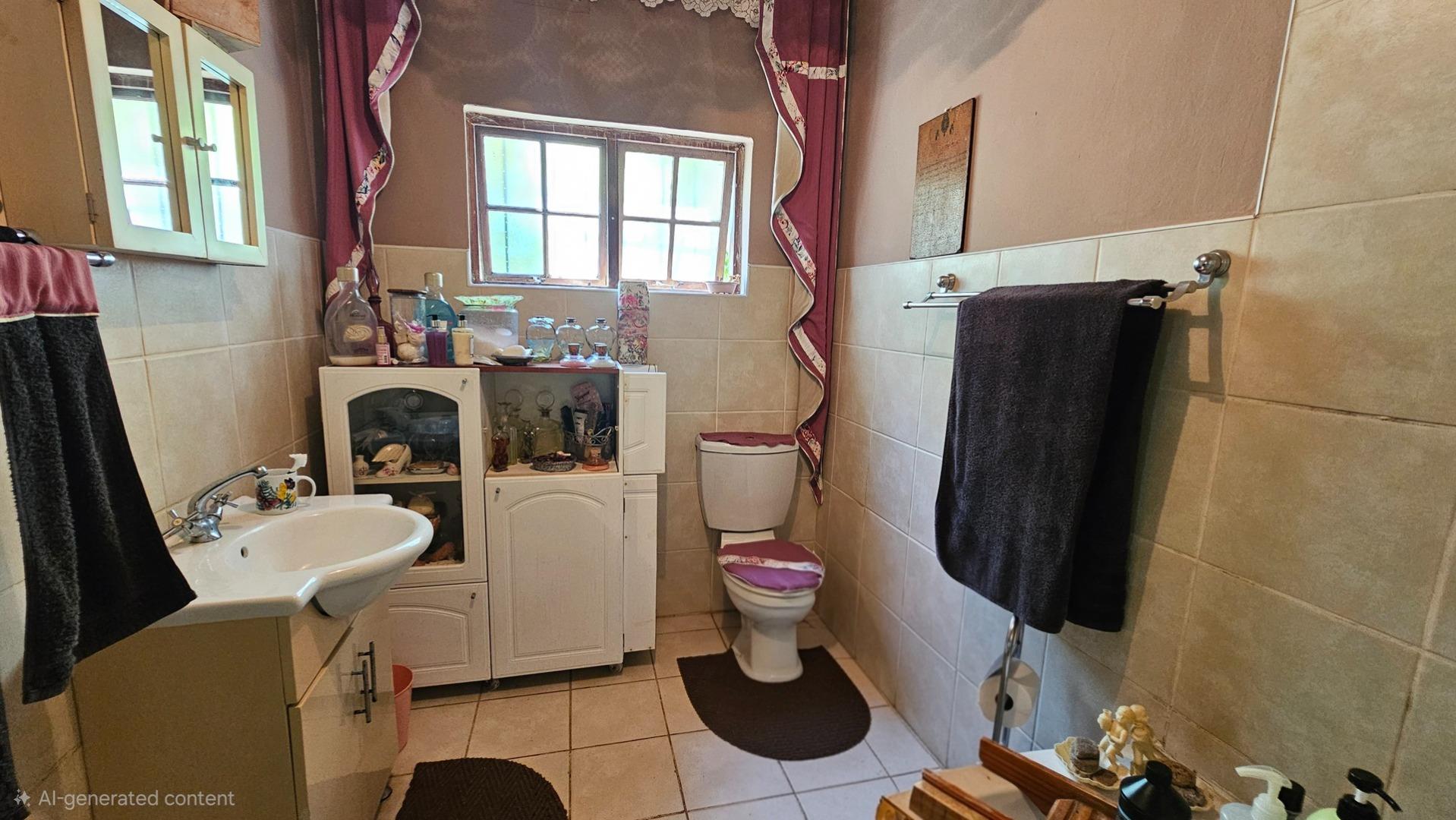 Set on a generous 8 921 m2 stand, this impressive farm-style property is surrounded by well-established gardens filled with mature trees, fruit trees, vegetable beds, and abundant greenery. You enter the home through a welcoming farmhouse kitchen that immediately showcases the size and character of the residence. This central living space offers extensive cupboard storage, a pantry, granite worktops, a prep basin, two under-counter ovens, a glass hob, and a large breakfast counter with seating for eight or more. There are connections for both a washing machine and dishwasher, and the garages provide direct access into the kitchen for added ease. The kitchen flows into a spacious dining room, where stairs lead to a flexible loft area ideal for storage, a home office, or an additional room.