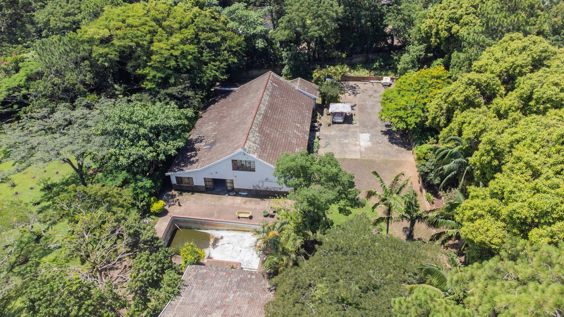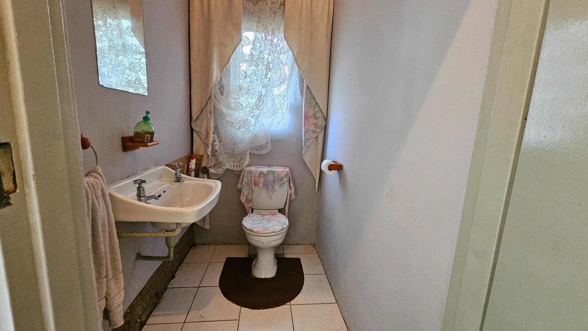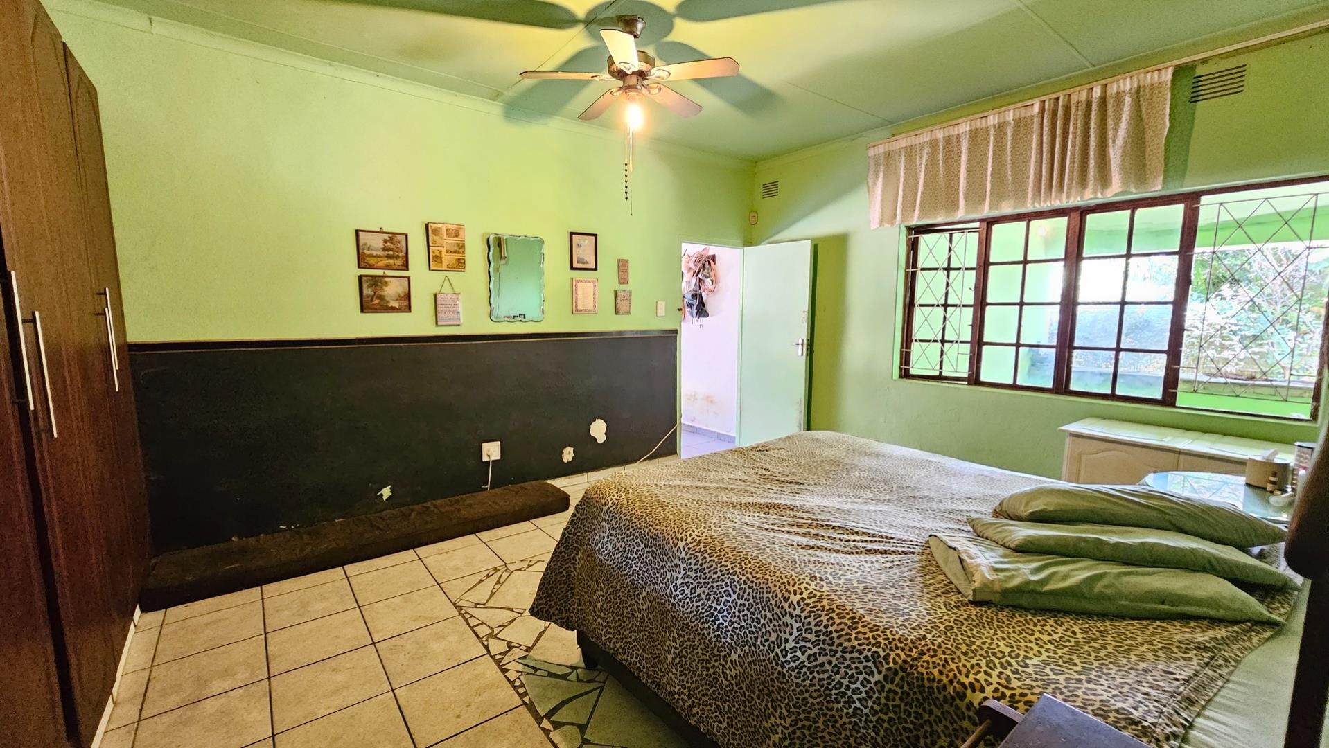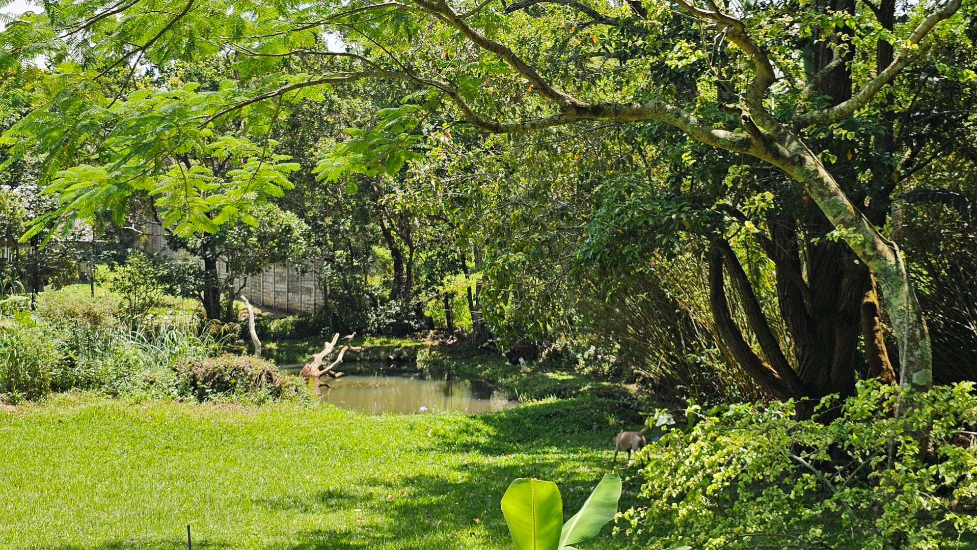 To the left of the patio, you will find the pool and entertainment area, which includes a sizeable swimming pool in need of attention and a generous enclosed entertainment room with excellent hosting potential. Ample parking makes accommodating guests easy. Water supply is a standout feature, with a borehole, three spring-fed dams, and four water tanks servicing the property. A large storeroom for garden equipment is located nearby, along with staff accommodation consisting of two bedrooms, a bathroom, and a small kitchen close to the vegetable garden.