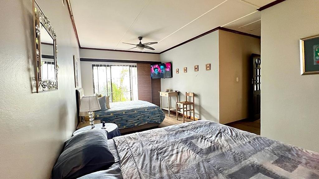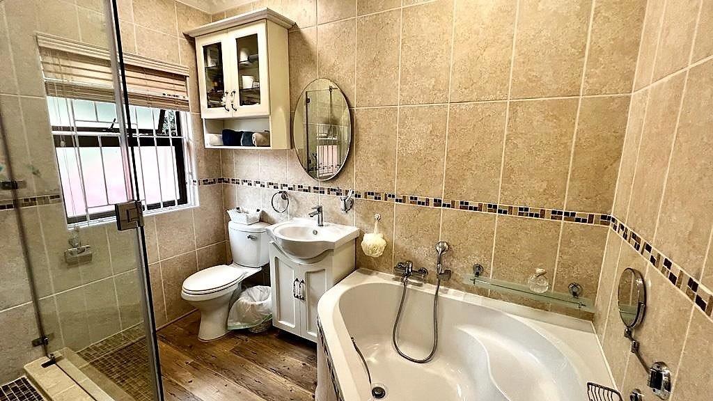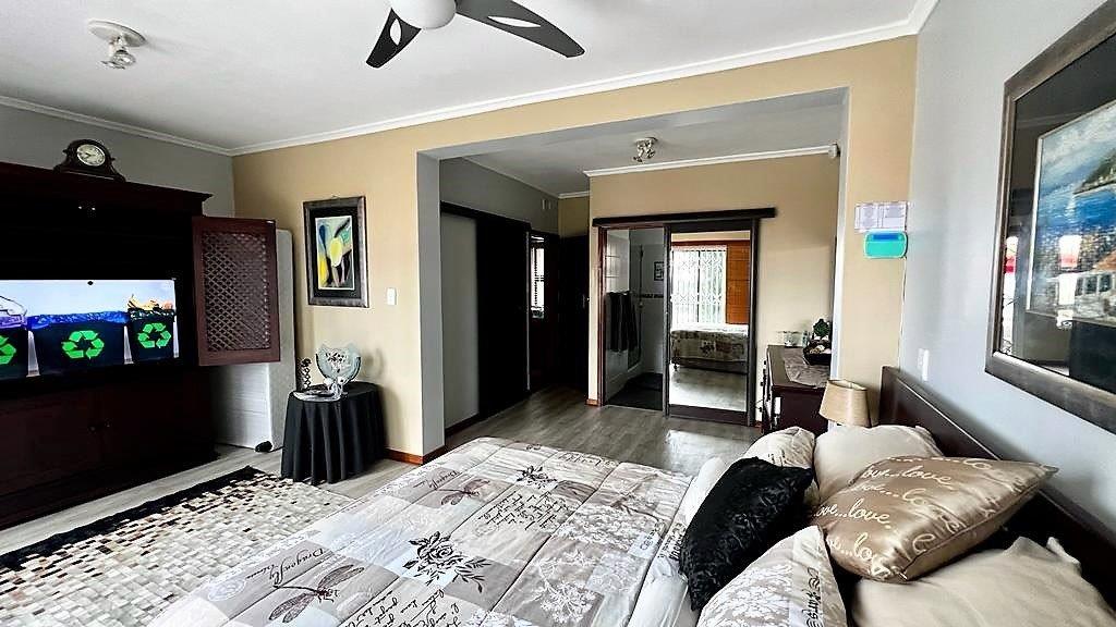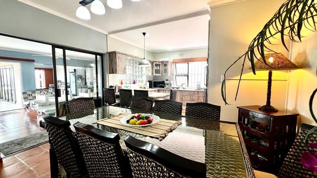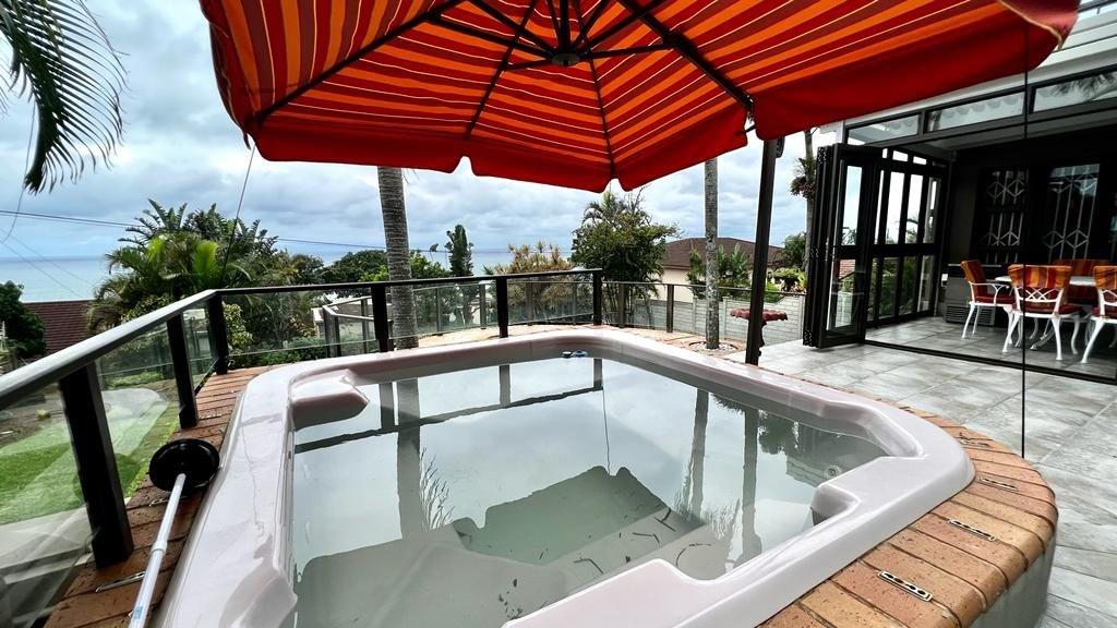 This home has 4 bedrooms and 5 bathrooms, 2 automated garages, 2 double carports and loads of extra parking, swimming pool, Jacuzzi, Aluminium windows and sliding doors, Trelidoors, so easy lock up and go, alarm system, beams, laminated floors, the property is well secured and is in walking distance to Uvongo Beach.