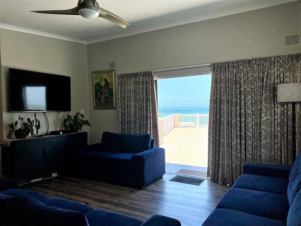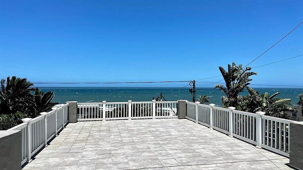 The lounge and dining area lead out onto a very large balcony overlooking the most amazing sea views. This area also leads out to the swimming pool area where you can enjoy your family time, there are 2 built in braai areas and an extra outside covered sitting area out the back of the dining door.