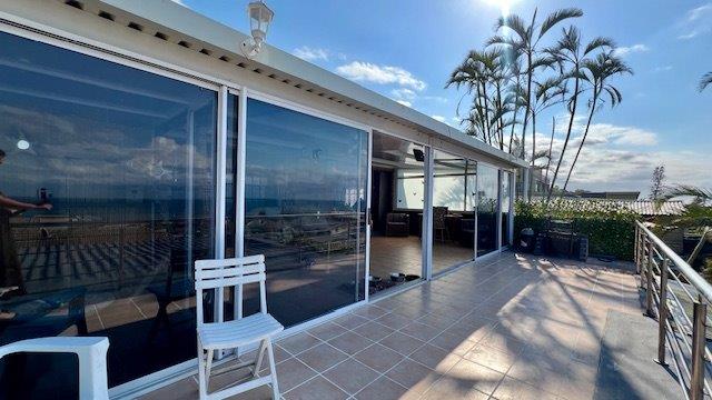 Located in the heart of Uvongo Beach and just a short walk from the shoreline, this beautifully maintained face brick home offers the perfect blend of comfort, space, and coastal living. The main house features three generously sized bedrooms and two bathrooms, along with a spacious open-plan kitchen, dining area, and lounge that flows effortlessly onto a large, enclosed patio—ideal for enjoying the breathtaking sea views.