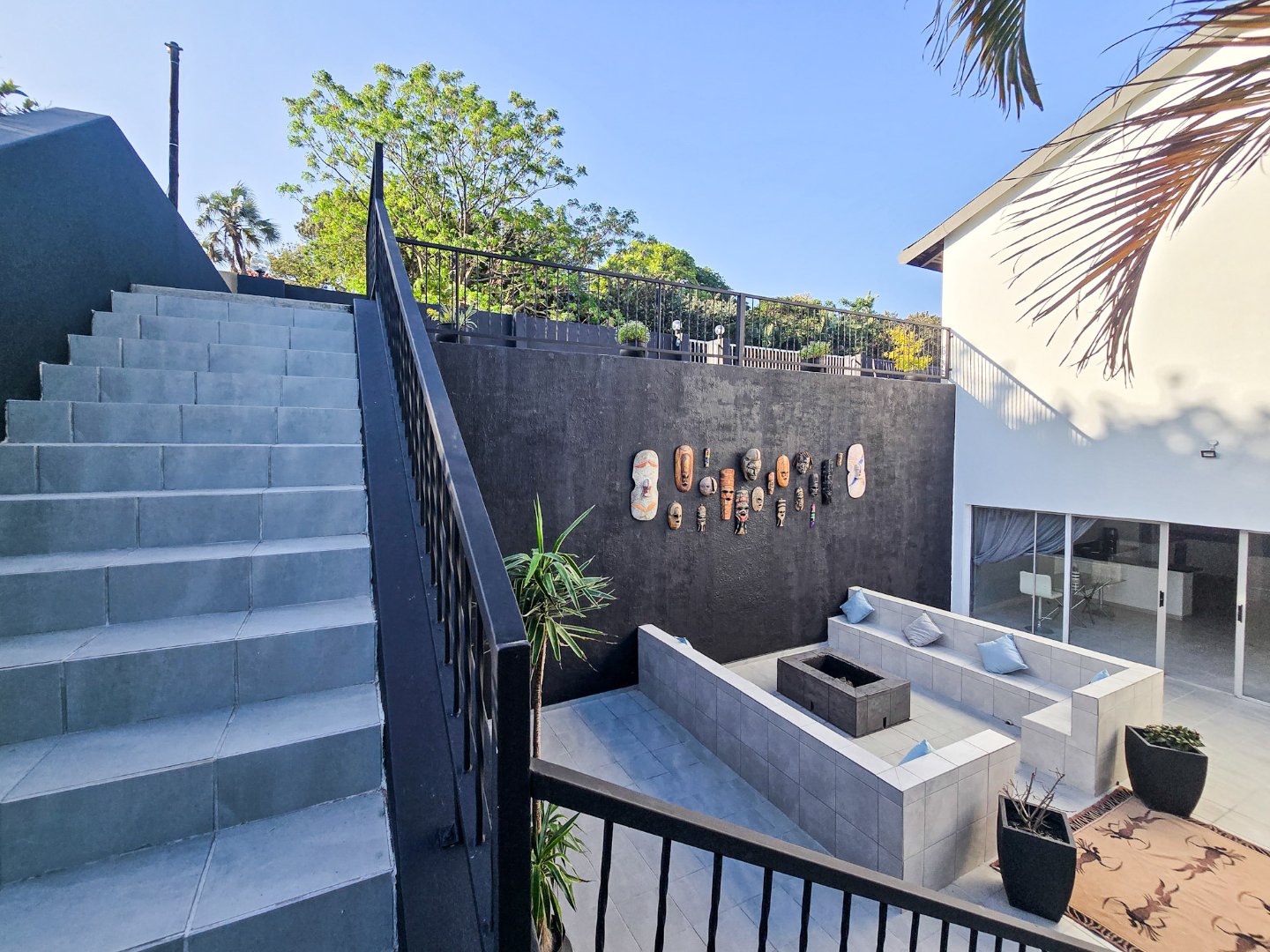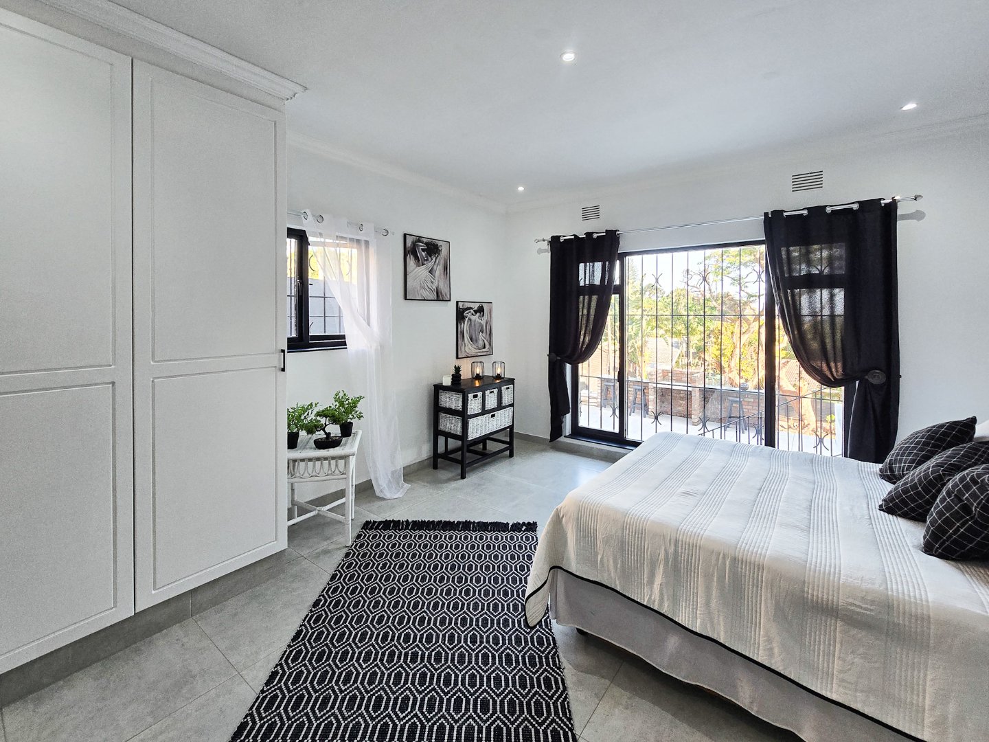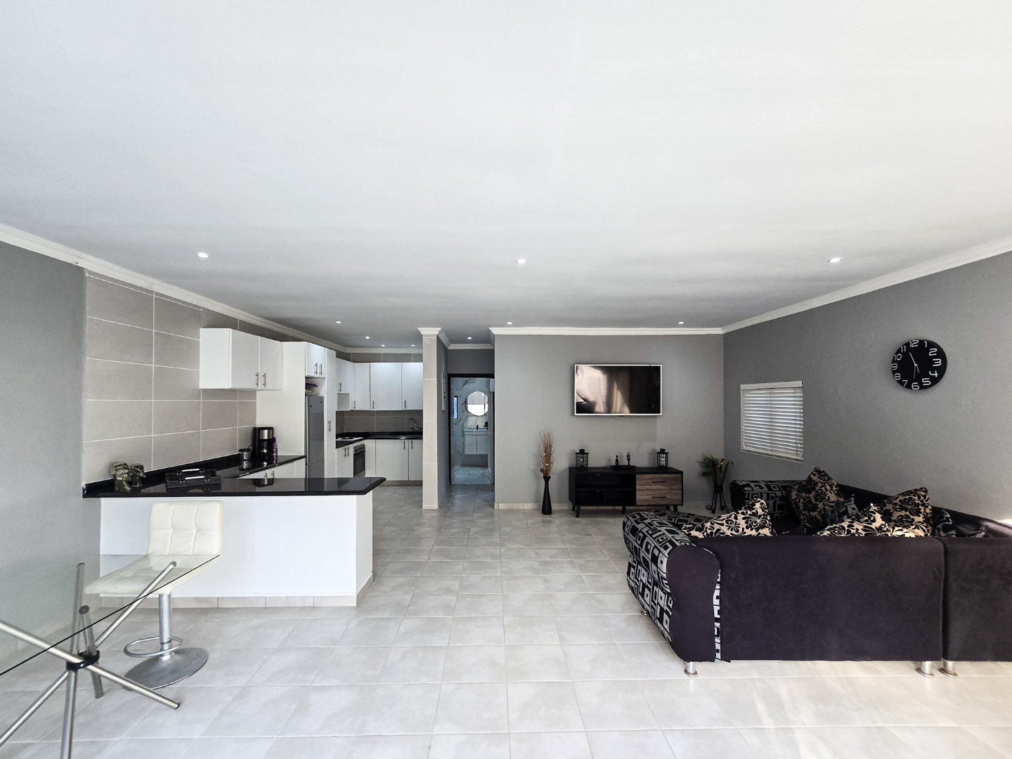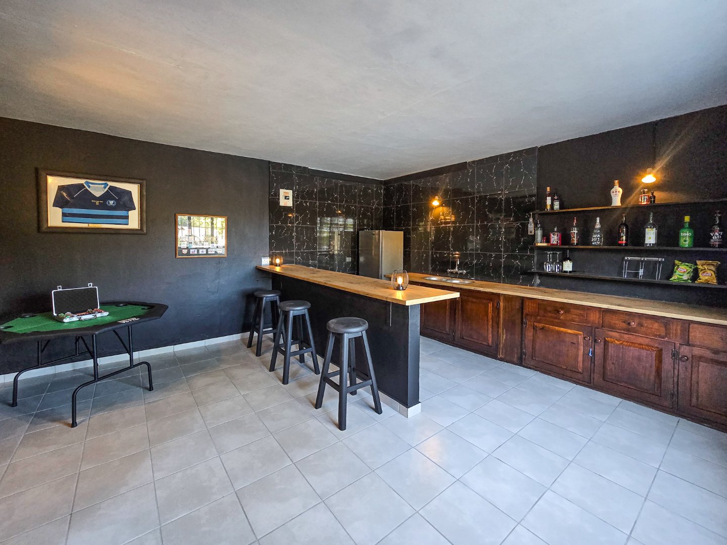 The two self-contained flats—each with one bedroom and are both large for flatlets—offer flexible possibilities, from guest accommodation to a home office or rental income. One of the flats has been smartly laid out as a bar and entertaining area, yet it can be easily converted back into a flat if desired.